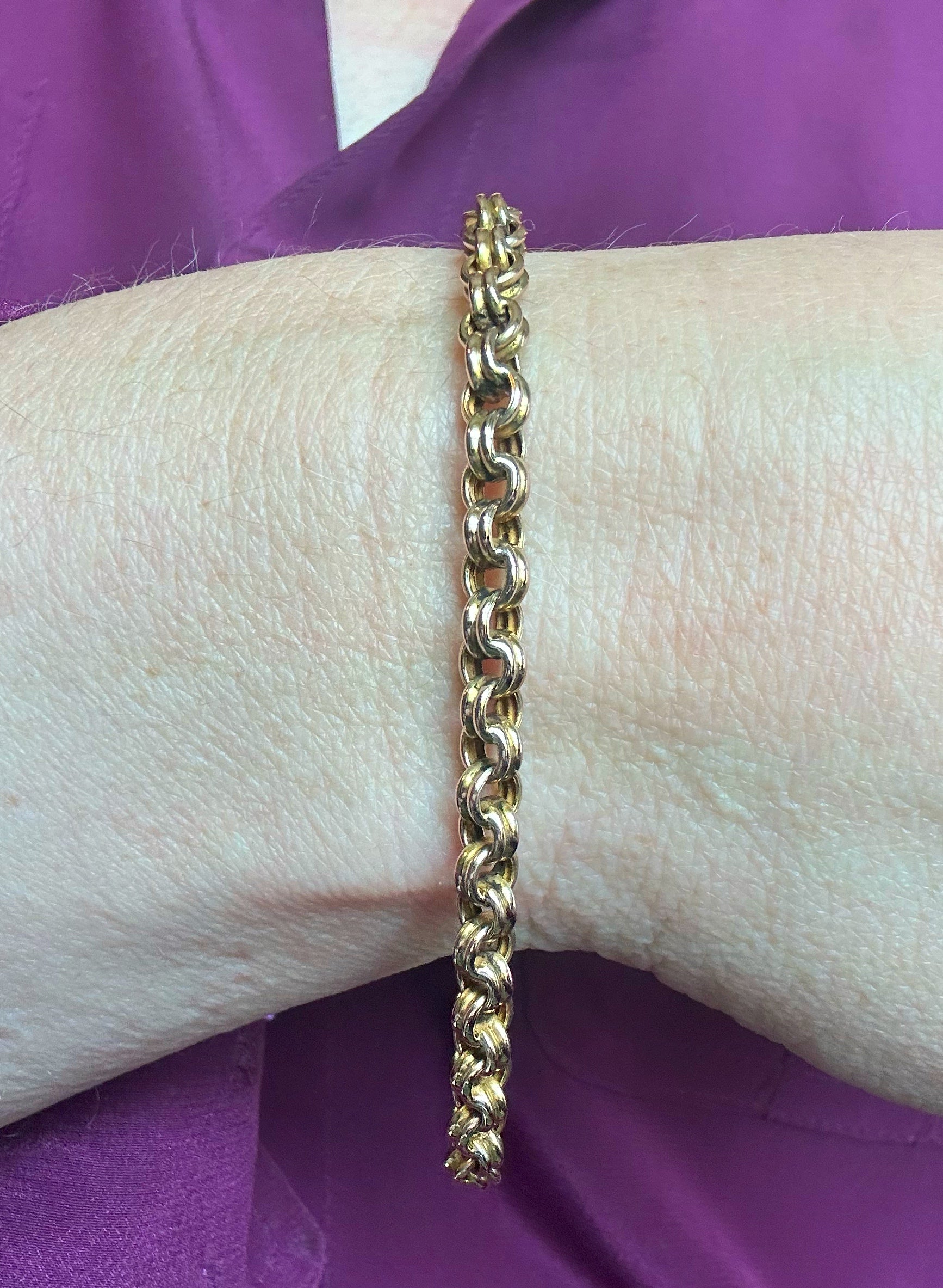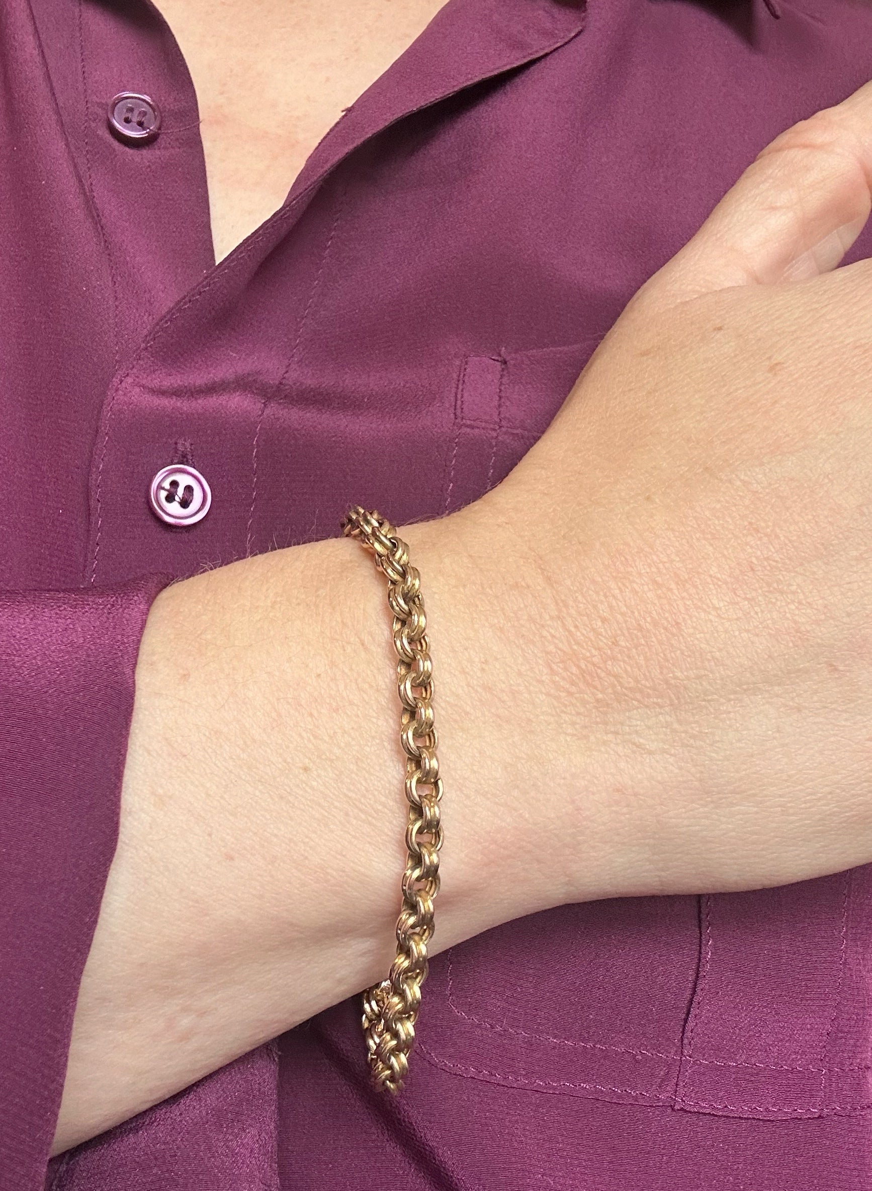 A very pleasing bracelet modelled in that antique je ne sais quois colour gold - a soft yellow with a healthy dash of warmth.