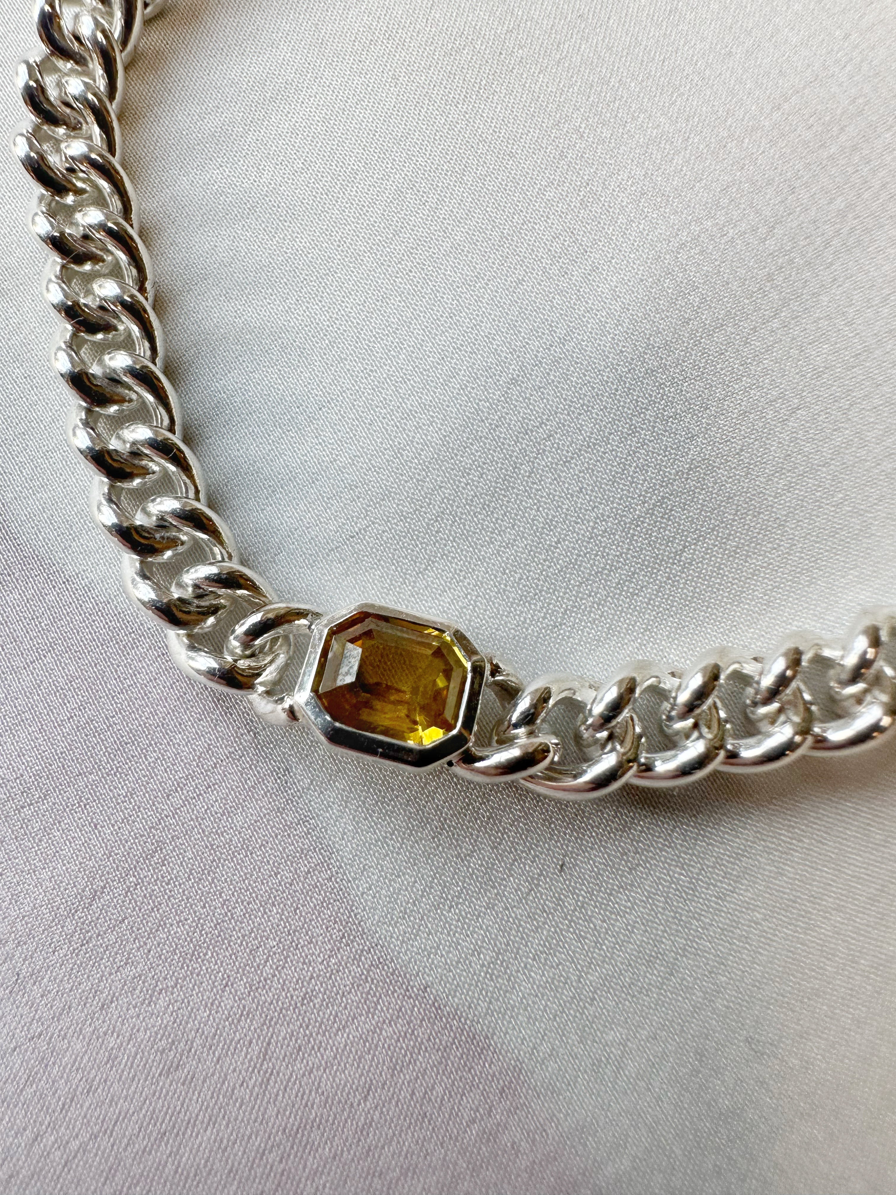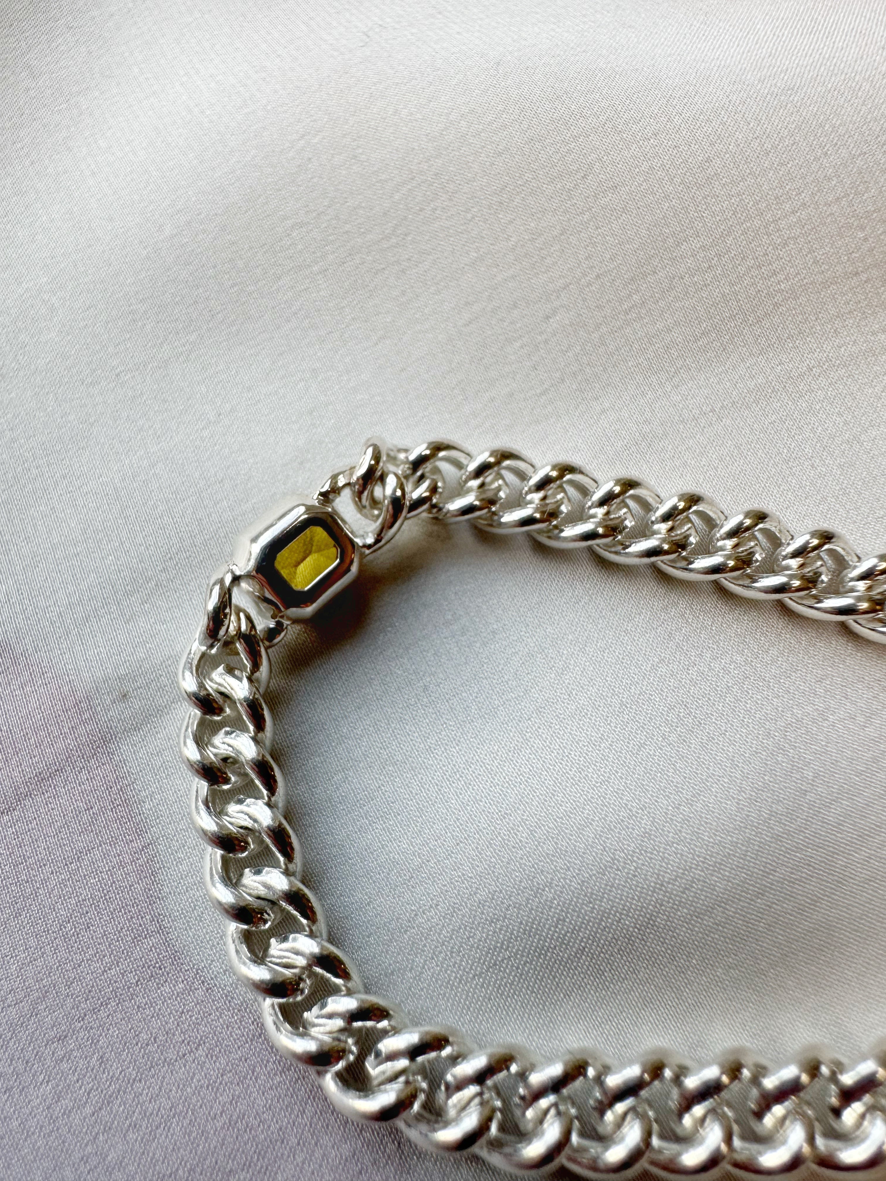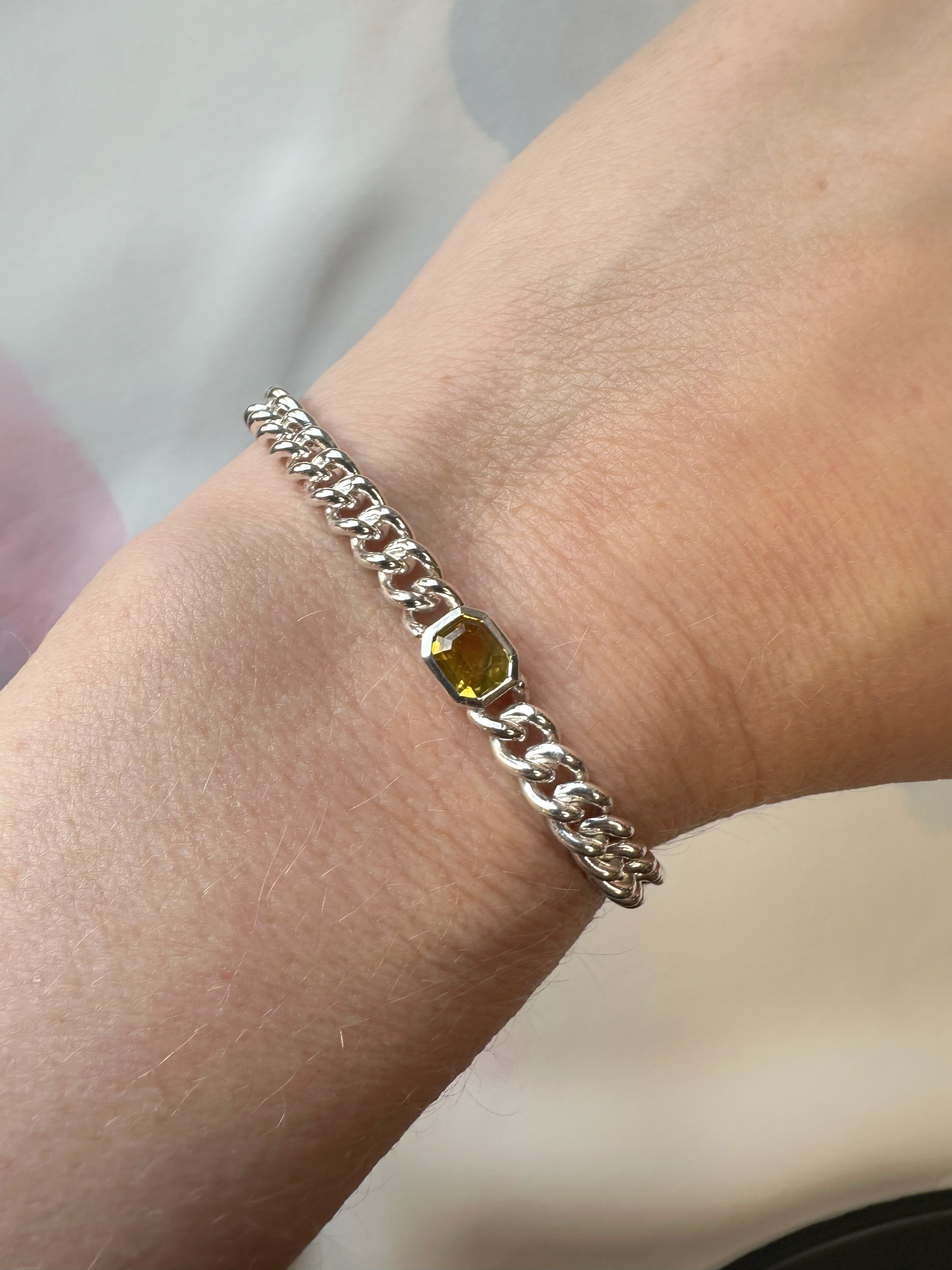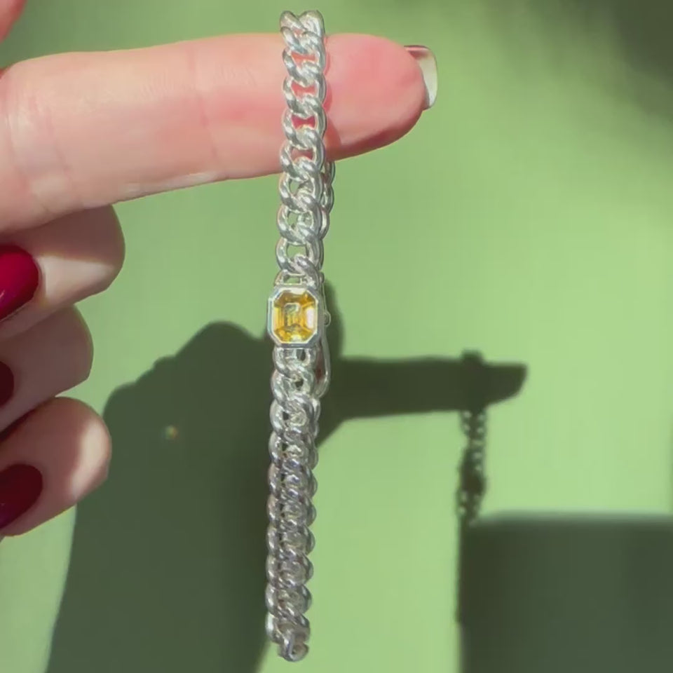 Yellow Sapphire Silver Curb Bracelet