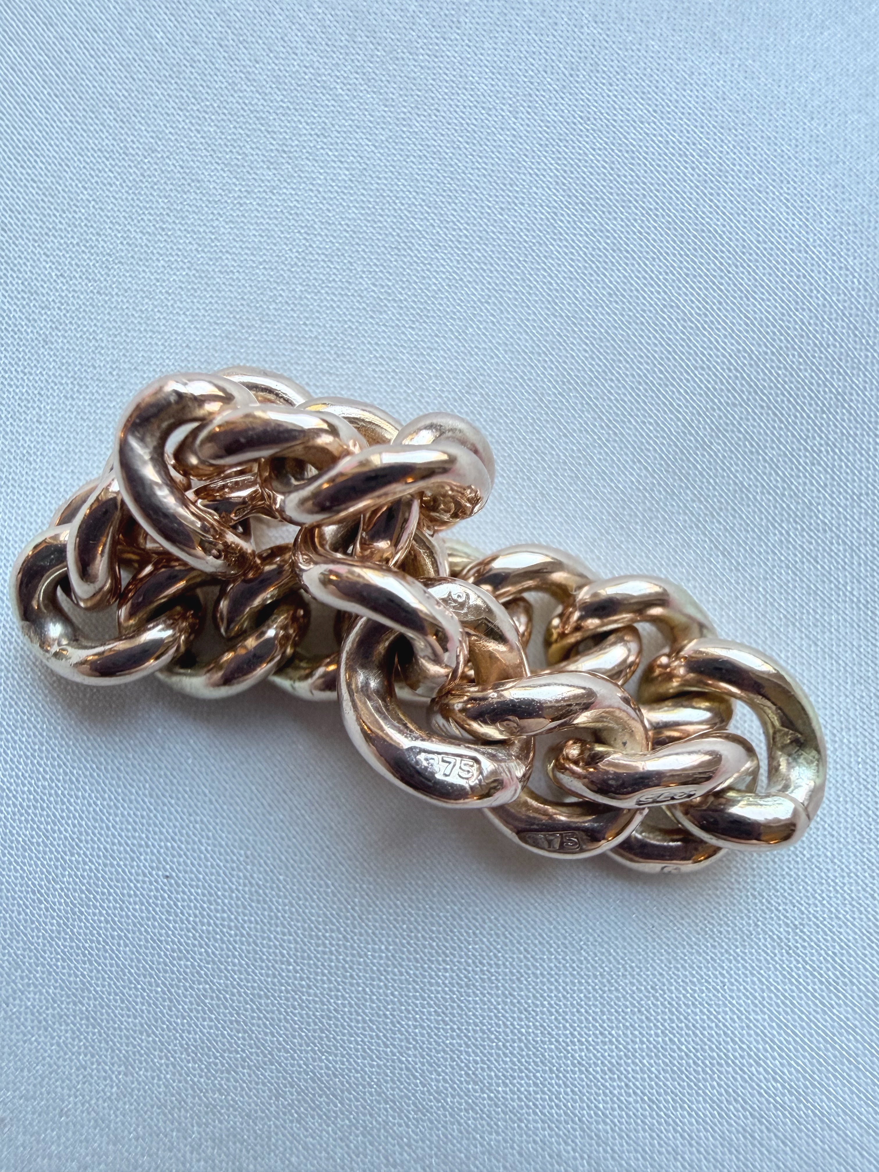 Formed from a graduated chain, the links range from 5.5 - 6.5mm wide. The links are fully solid.