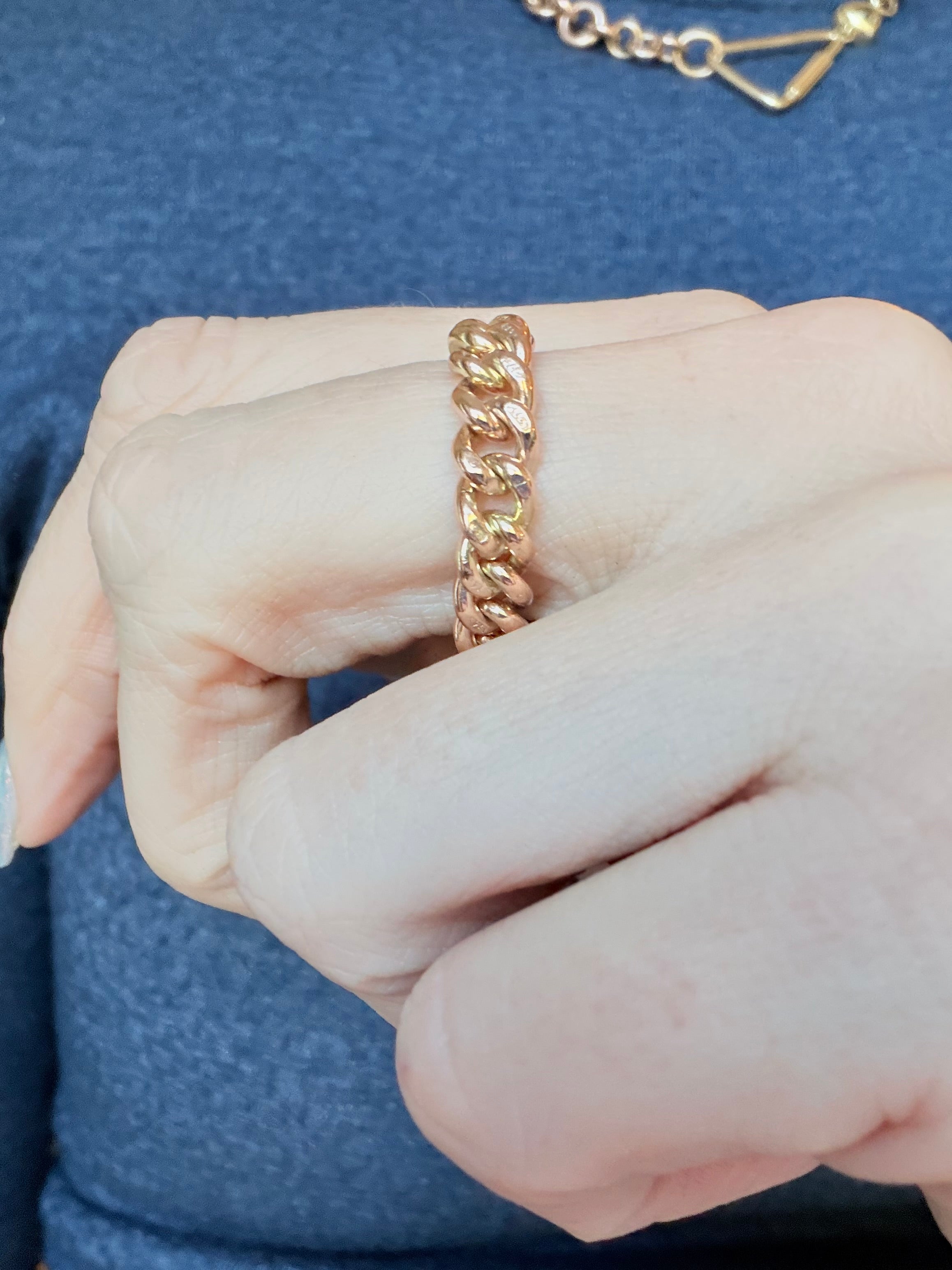 Antique 9ct Curb Chain Ring - size P.5-Q / 7.75-8