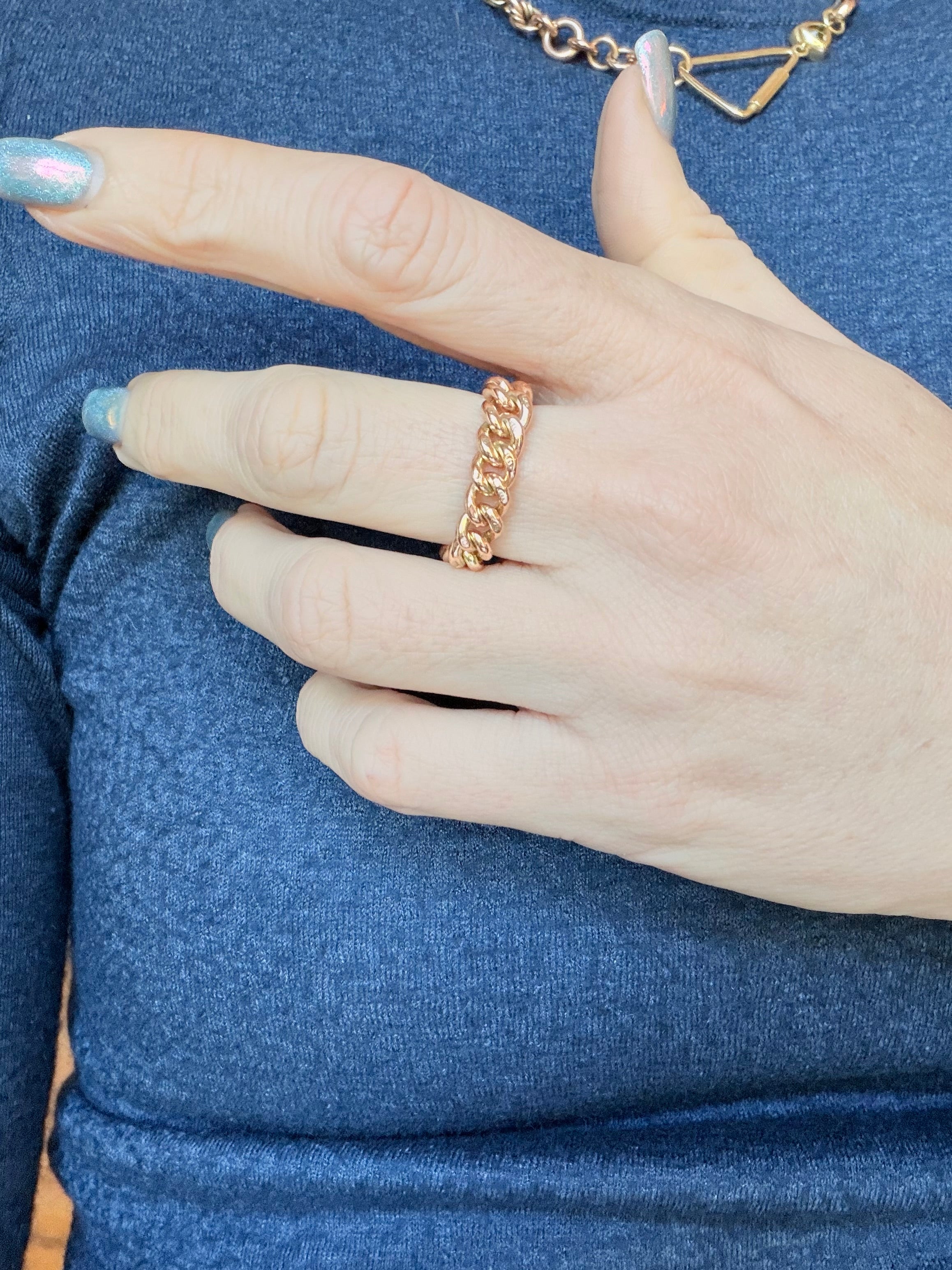 A beautiful, fully flexible, ring made from 9ct peachy rose gold.