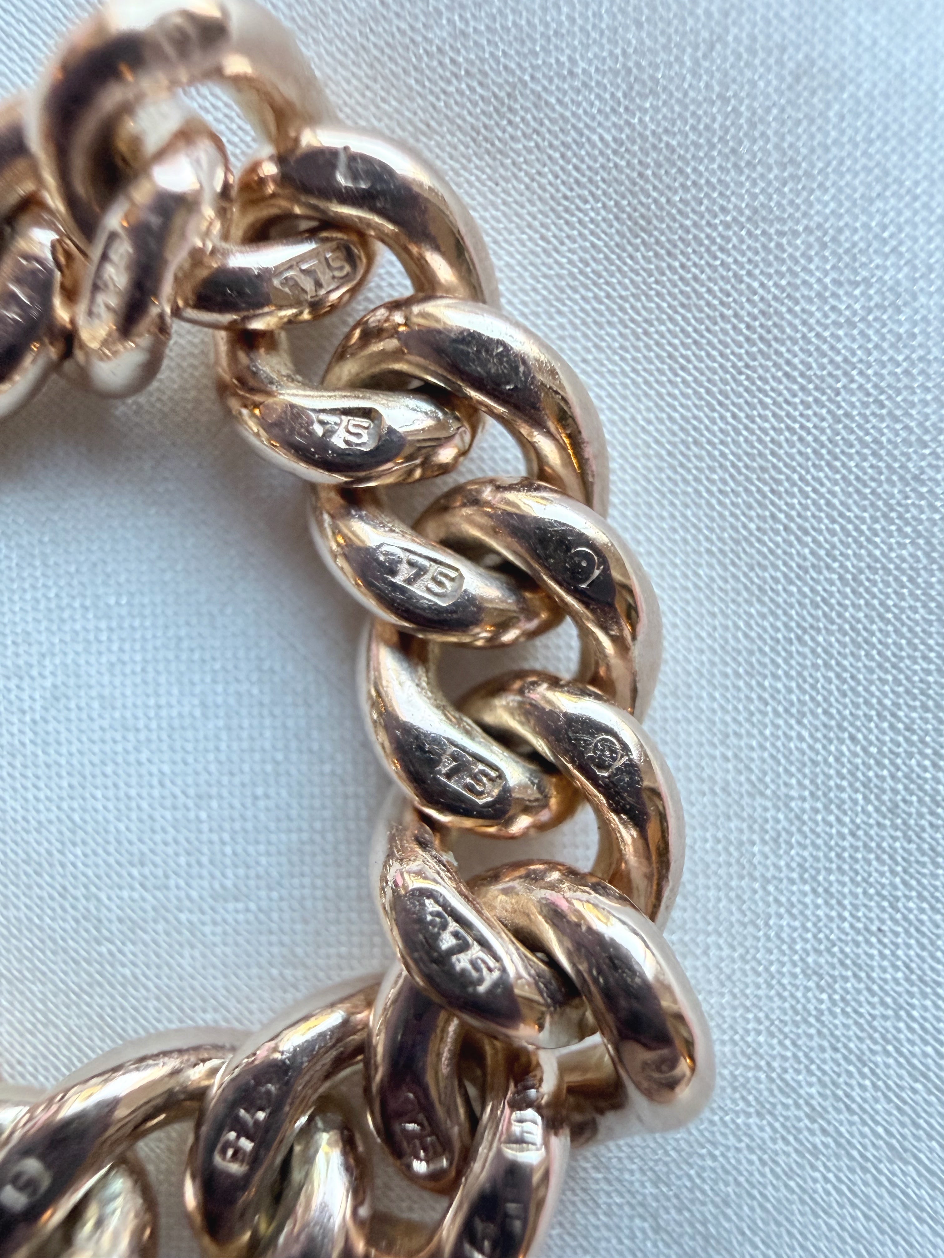 The chain dates to 1925 and has a stamp for 9ct gold "9 .375" to every link.