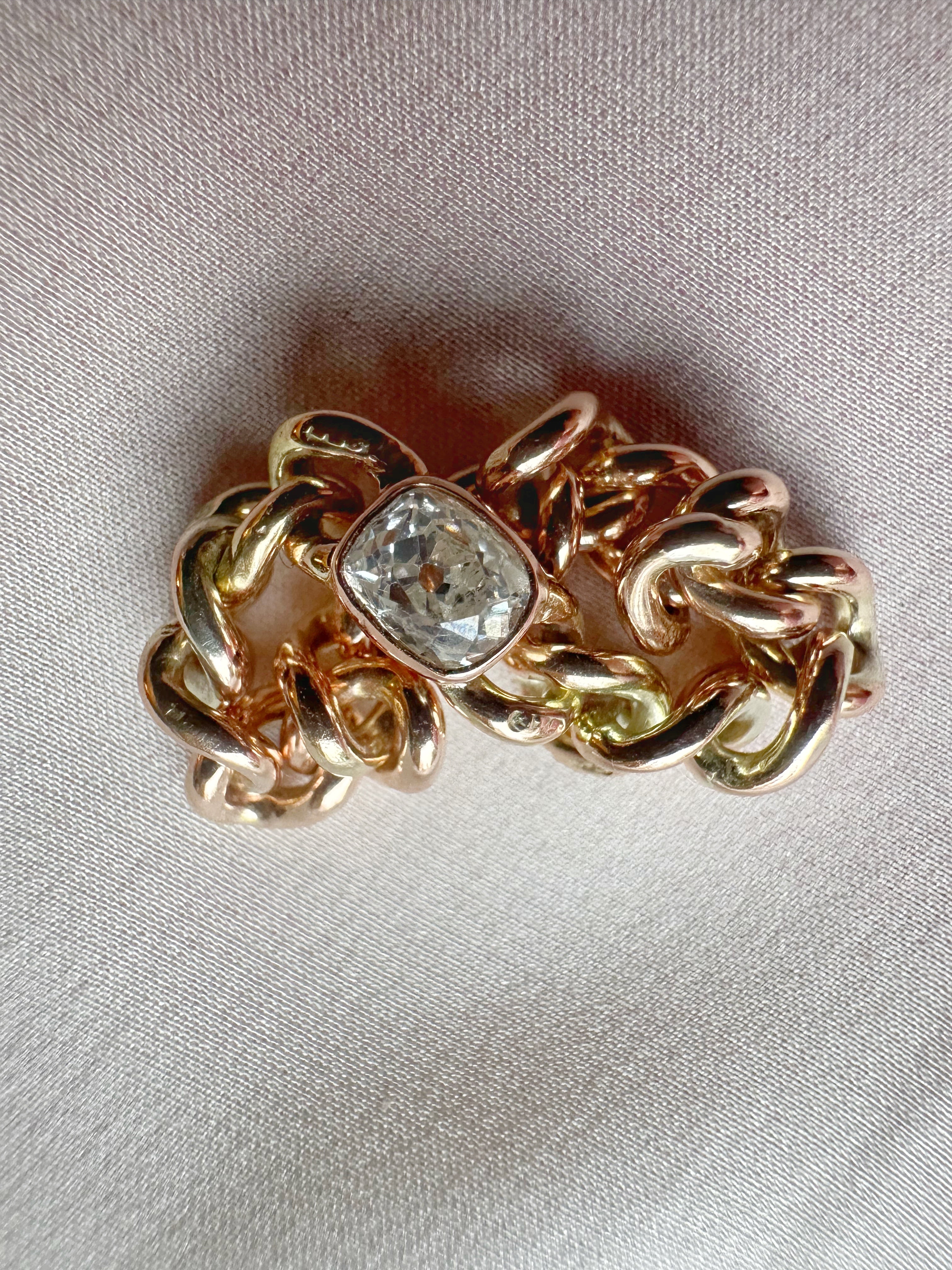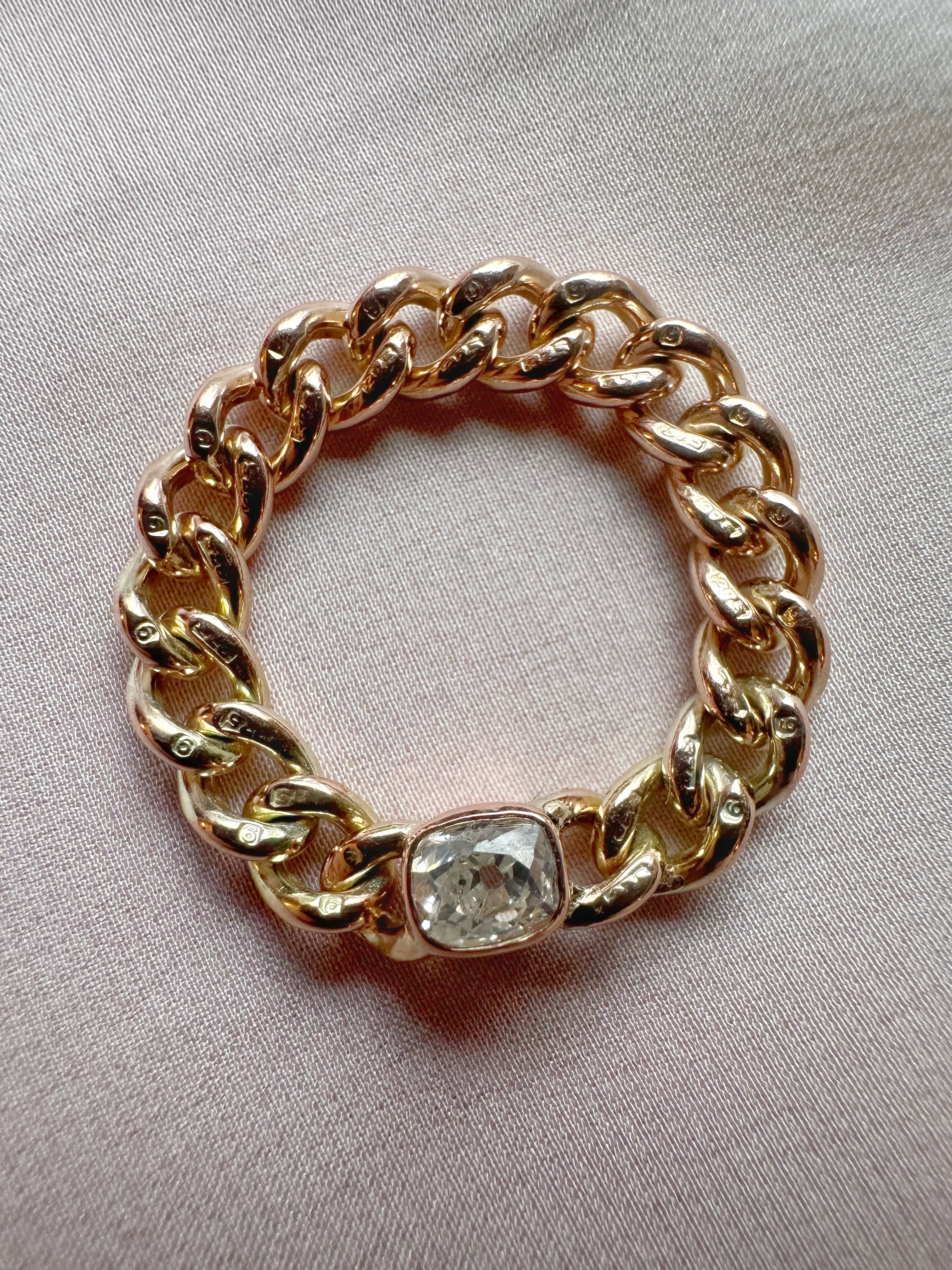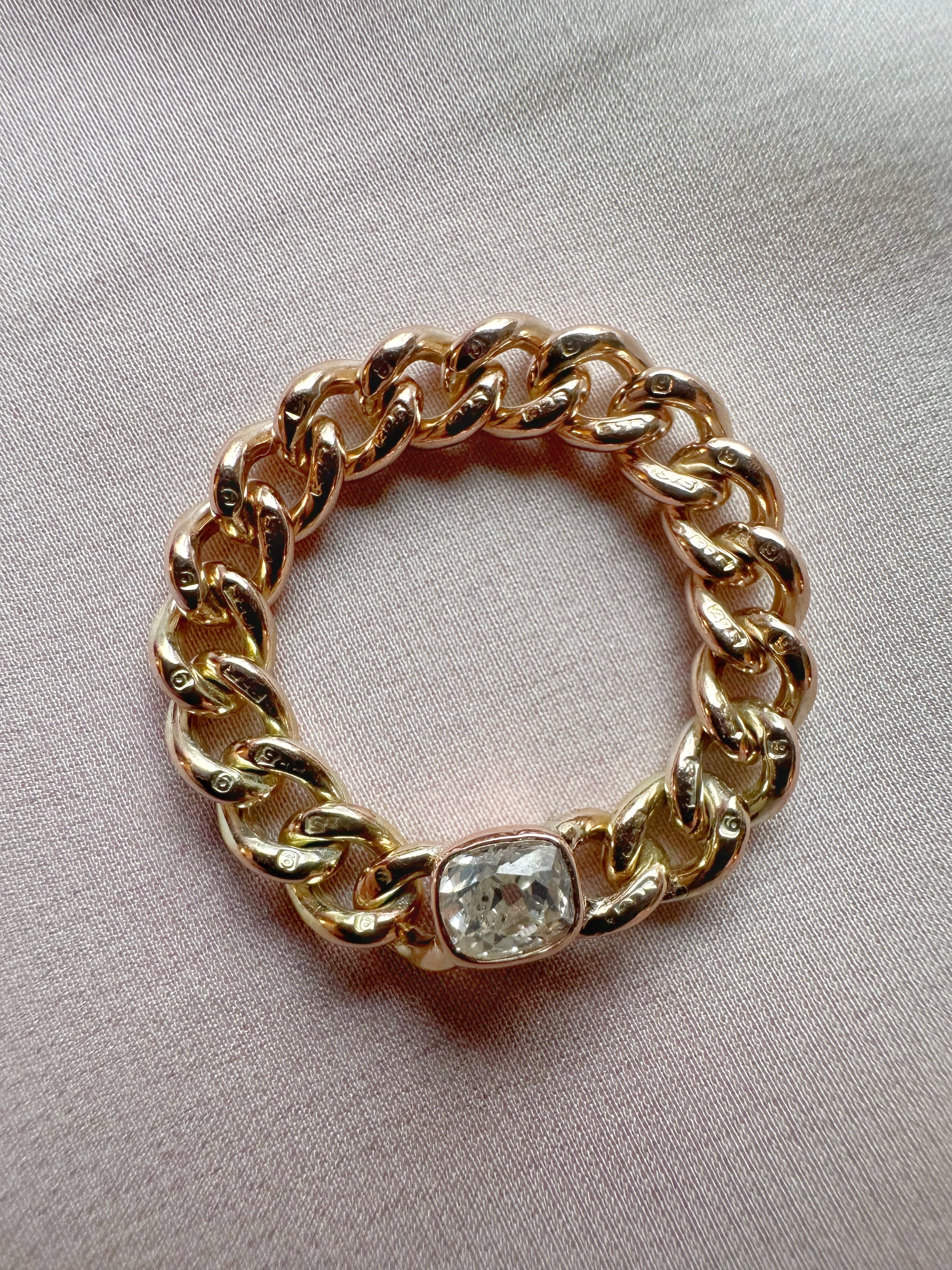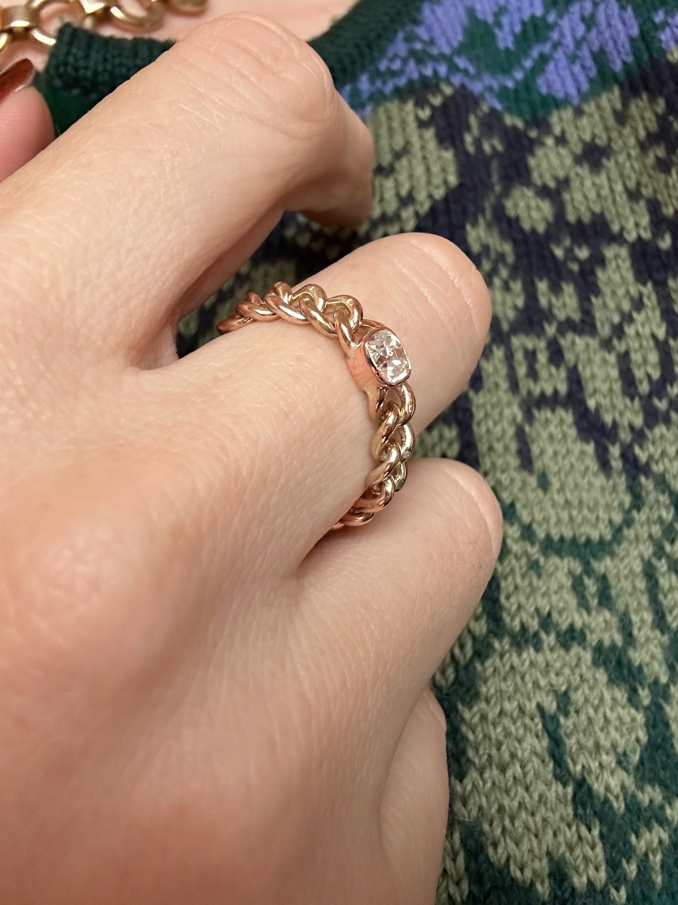 Oof! A double antique chain ring featuring antique chain and an antique old mine cut diamond.