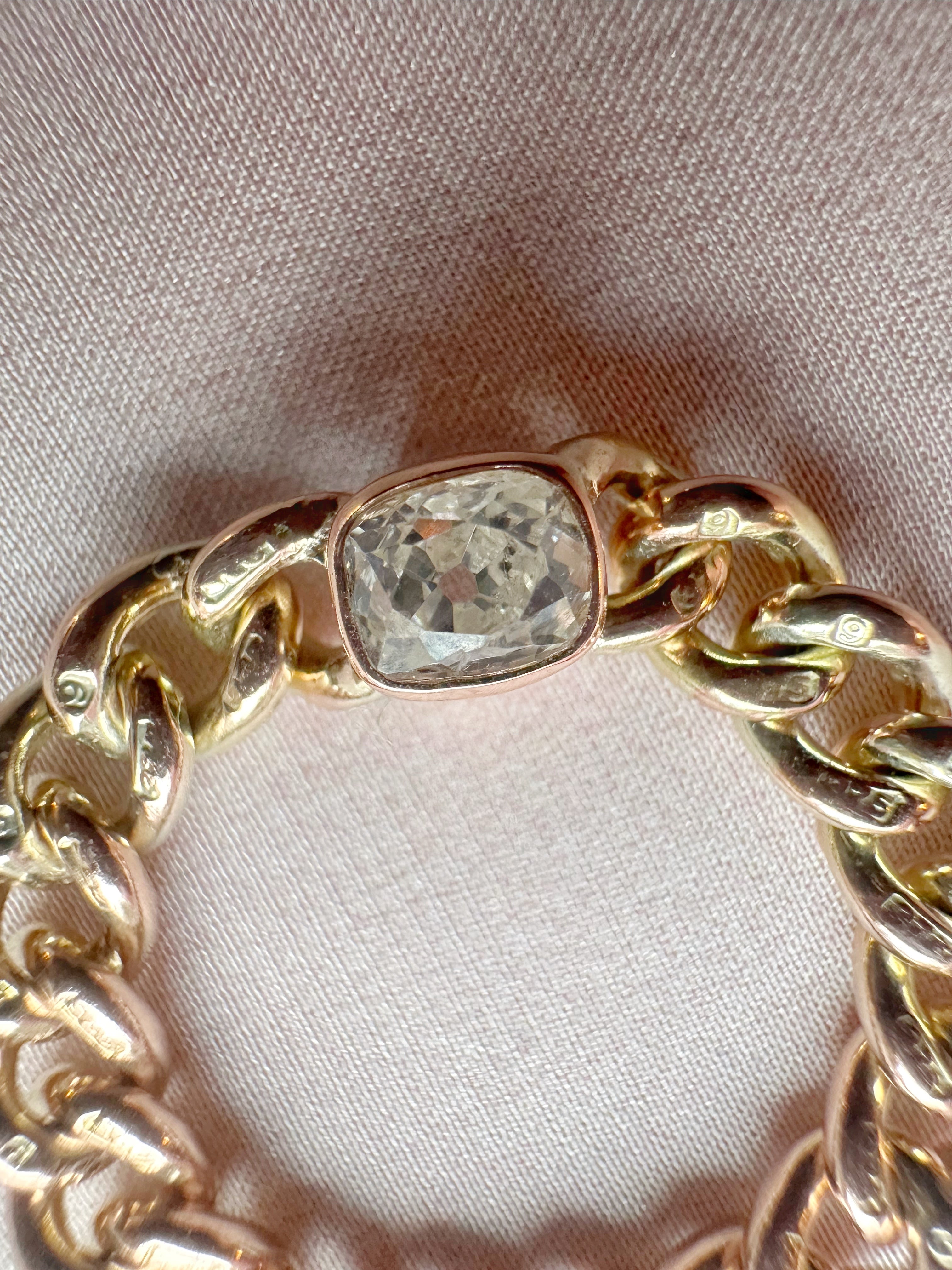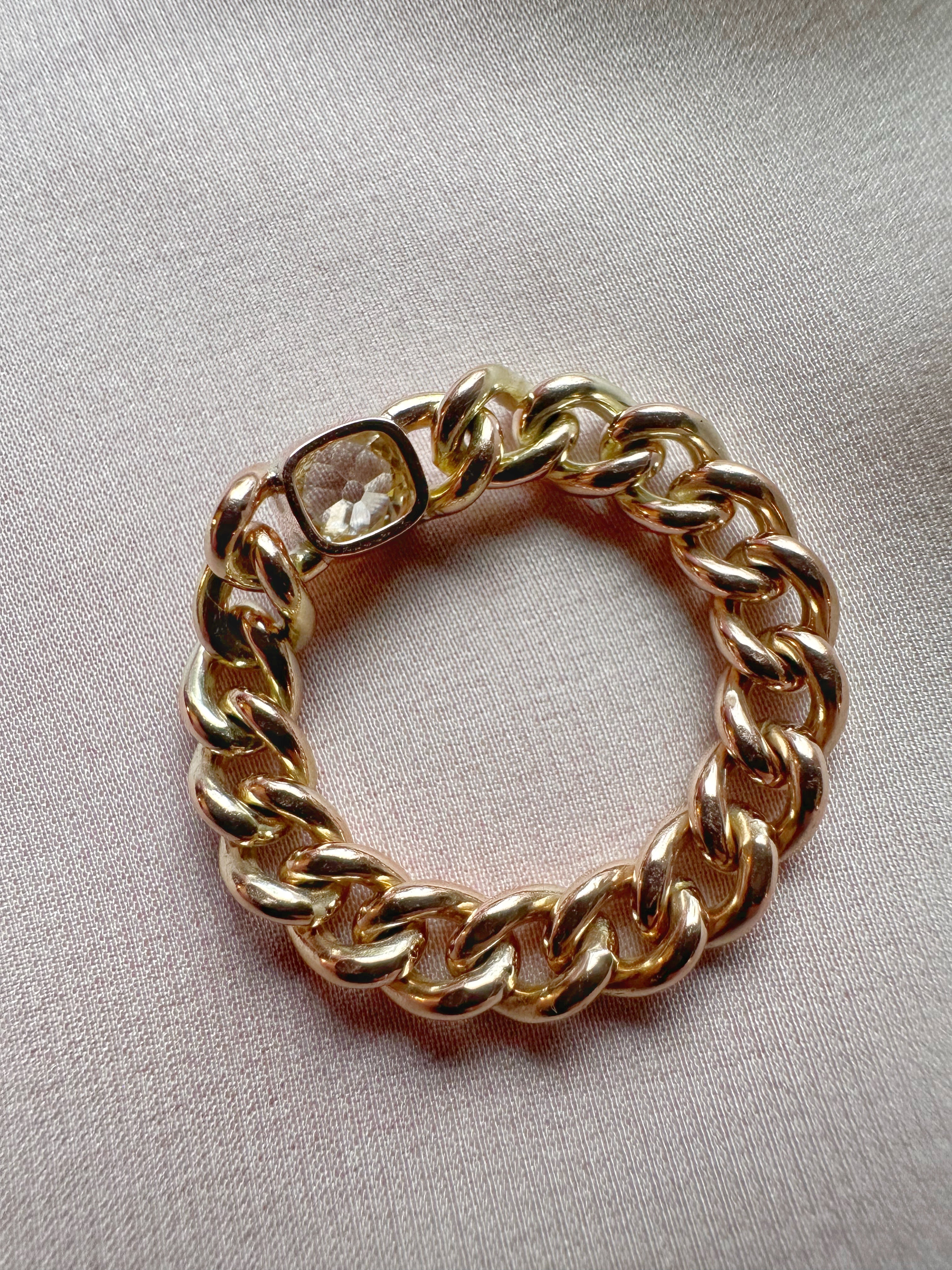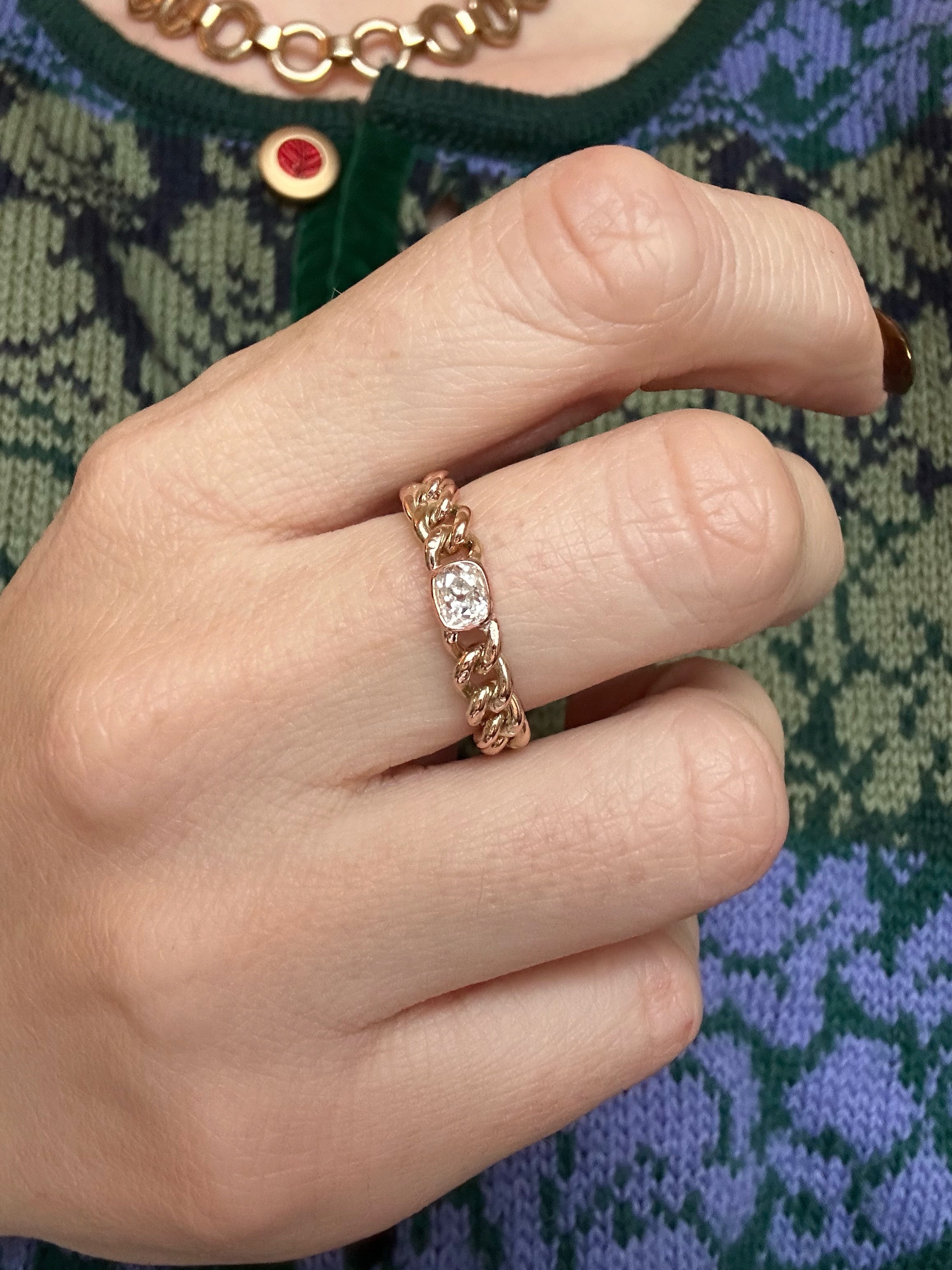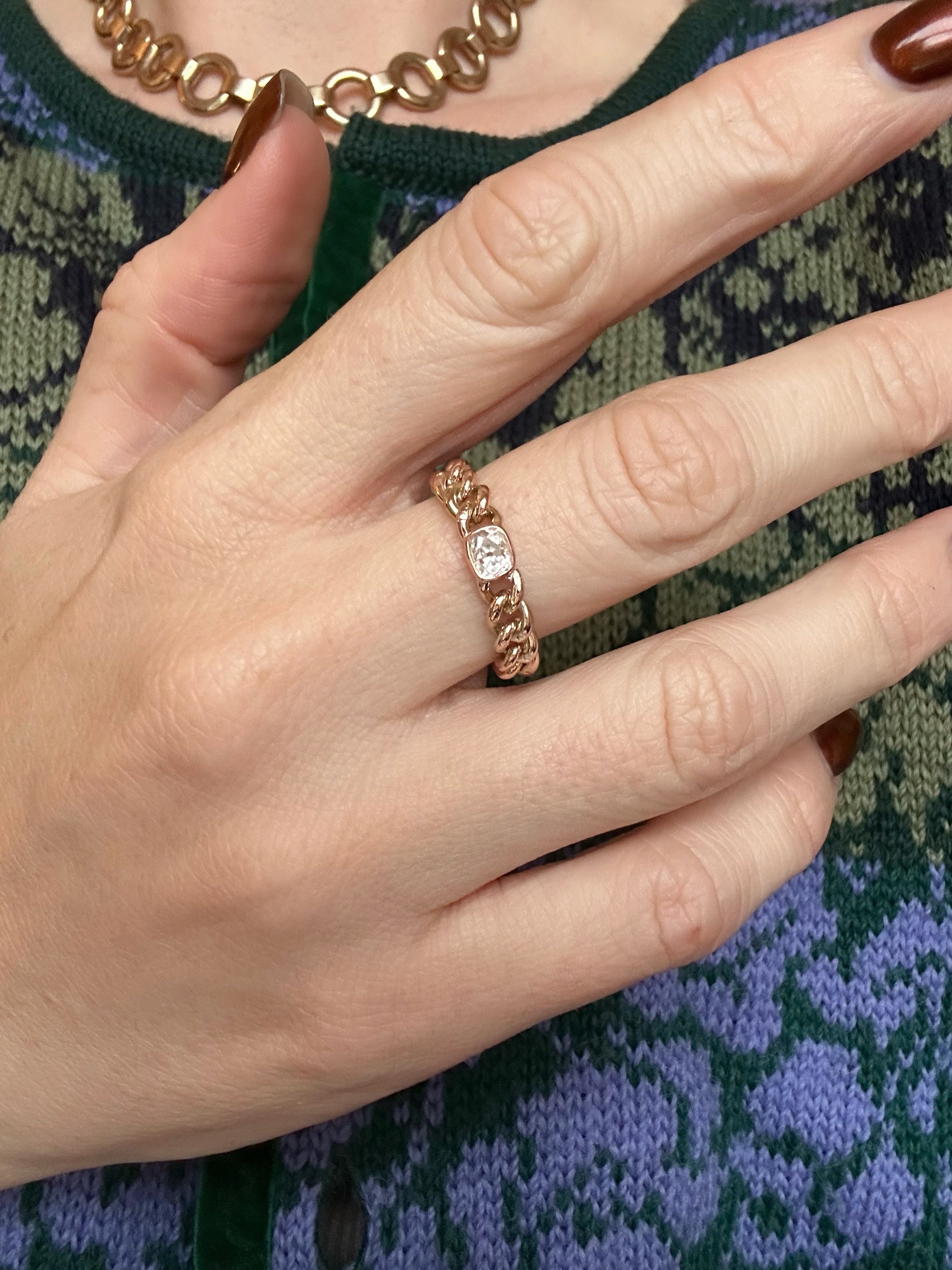 Oof! A double antique chain ring featuring antique chain and an antique old mine cut diamond.