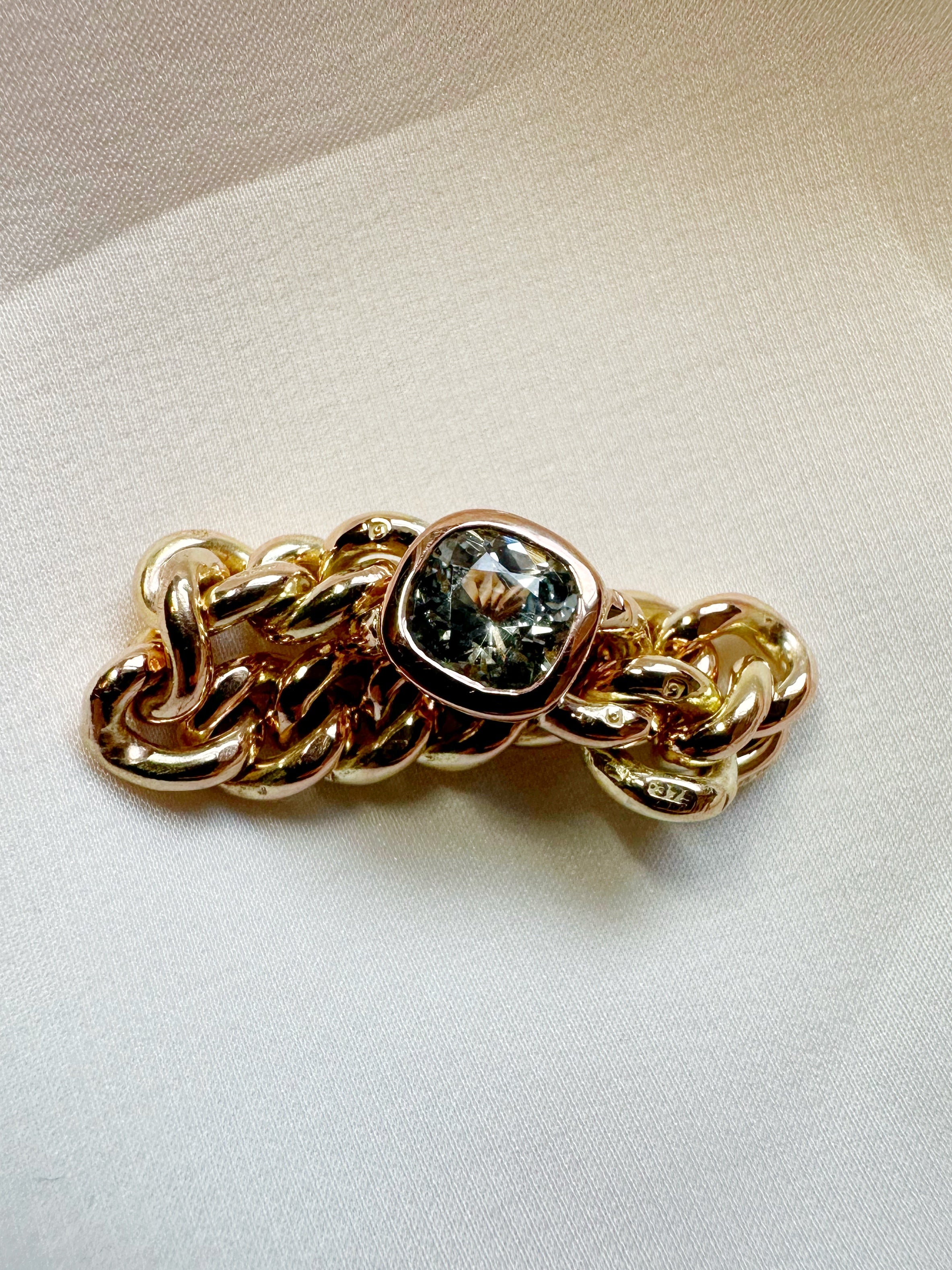 Antique Maxi Chain Ring with Gray Green Sapphire