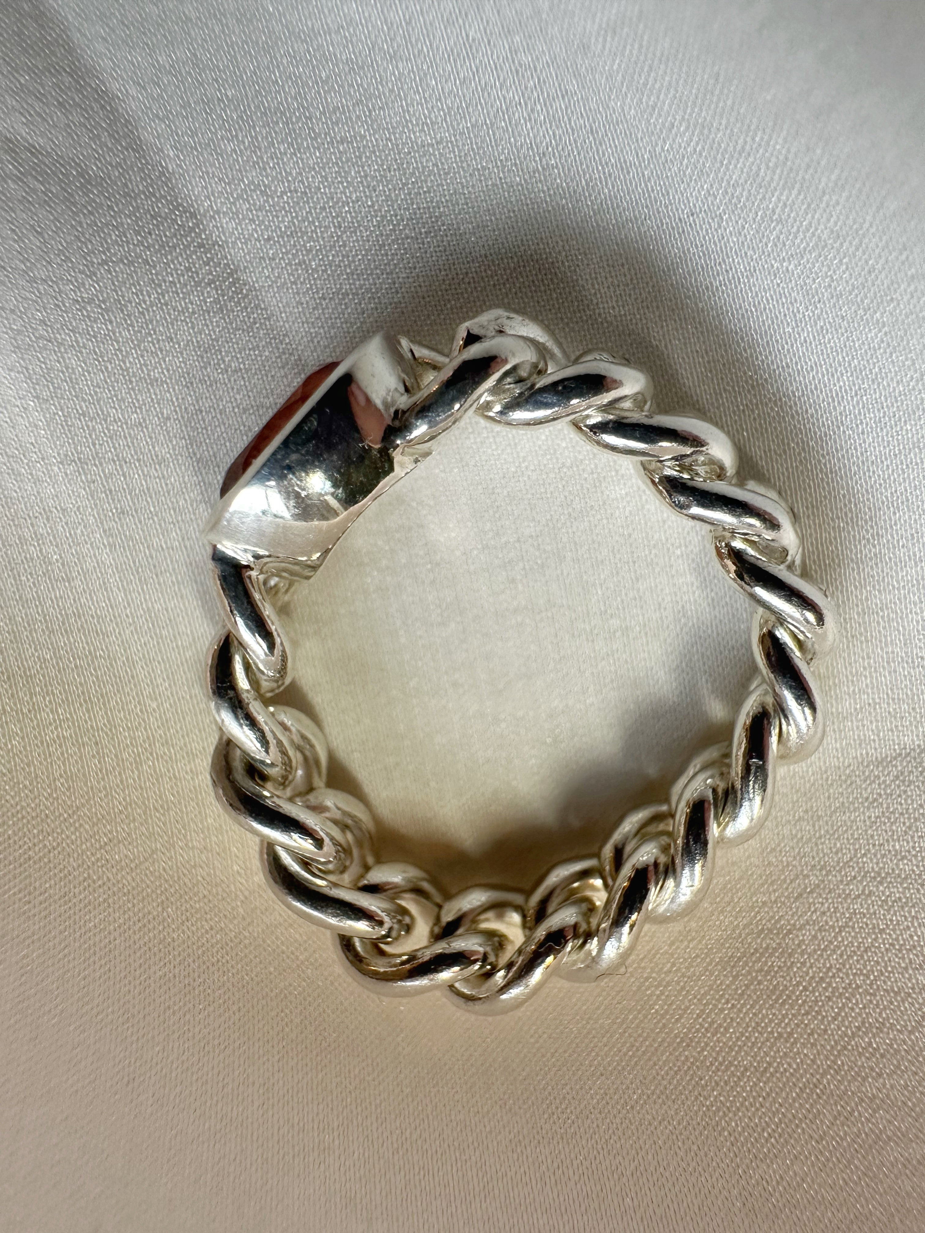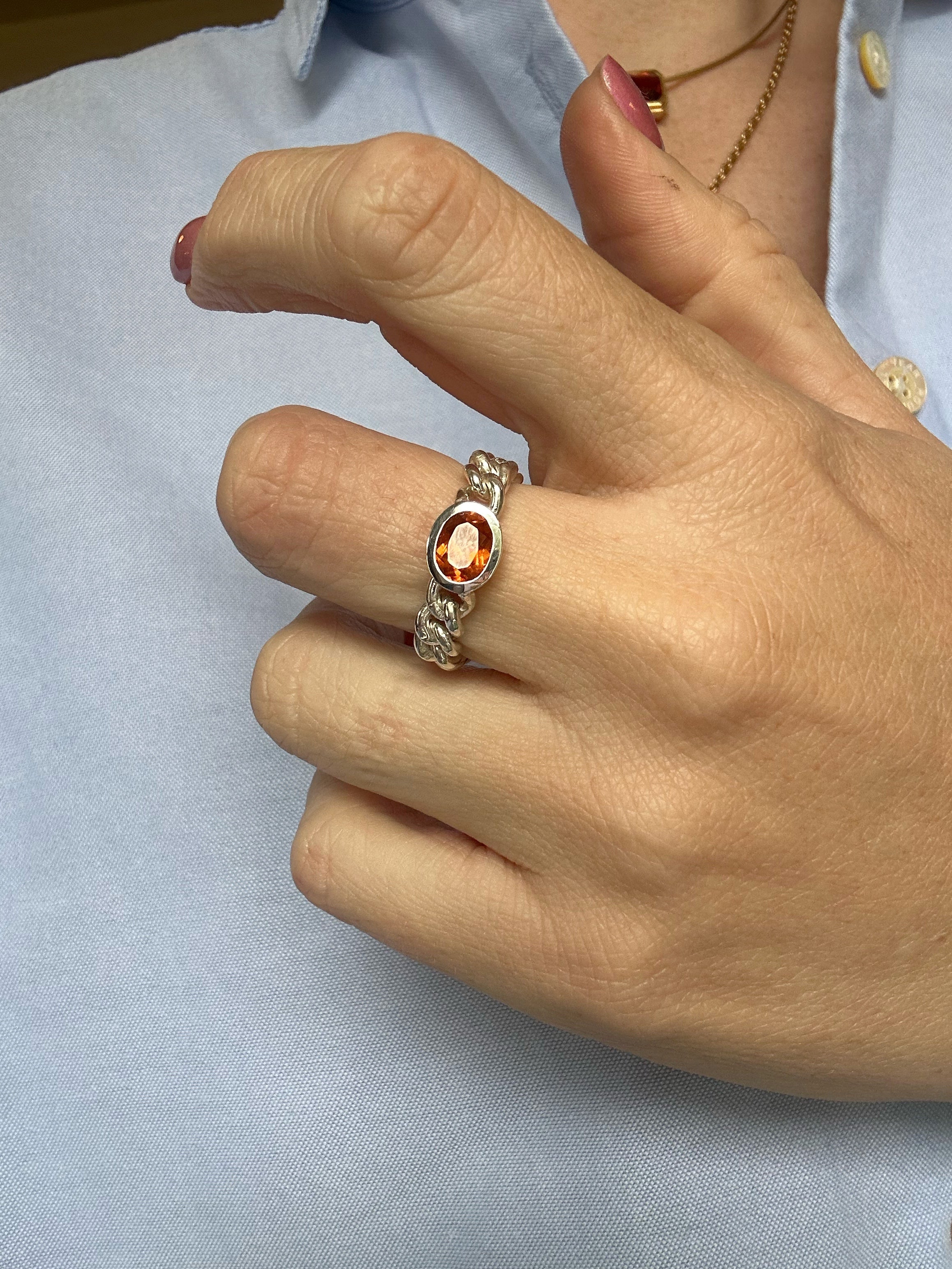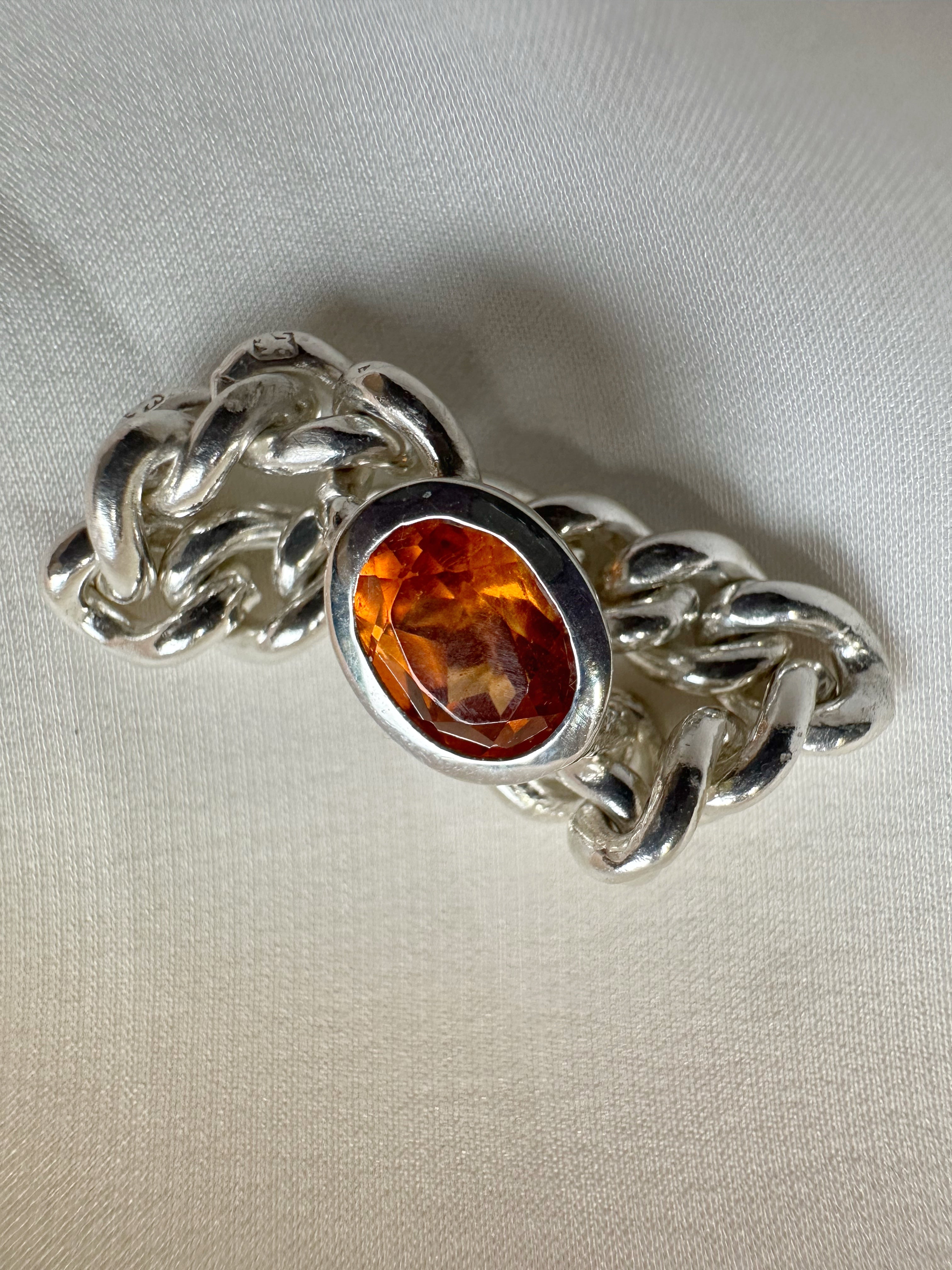 Antique Maxi Silver Chain Ring with Spessartine Garnet