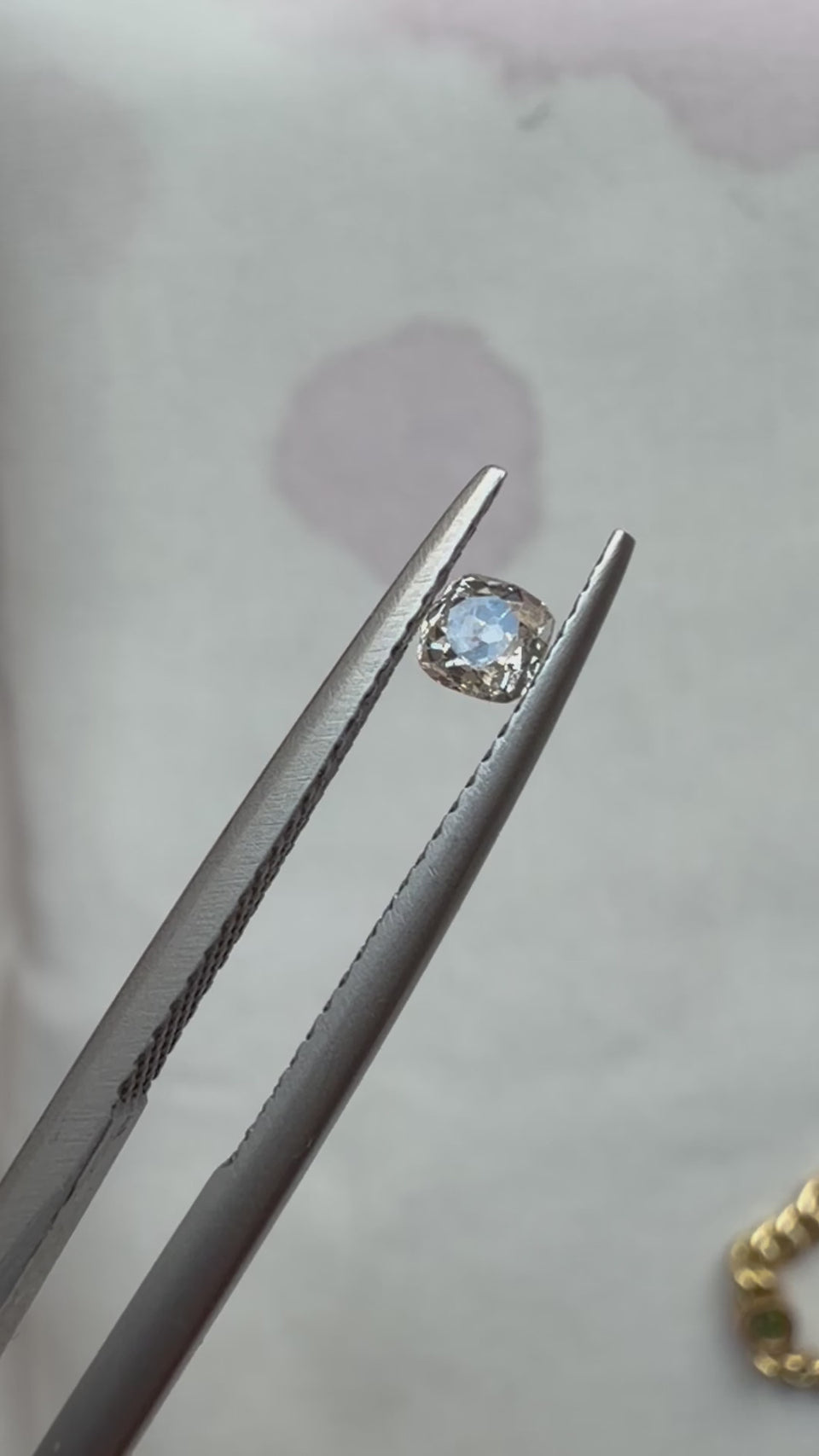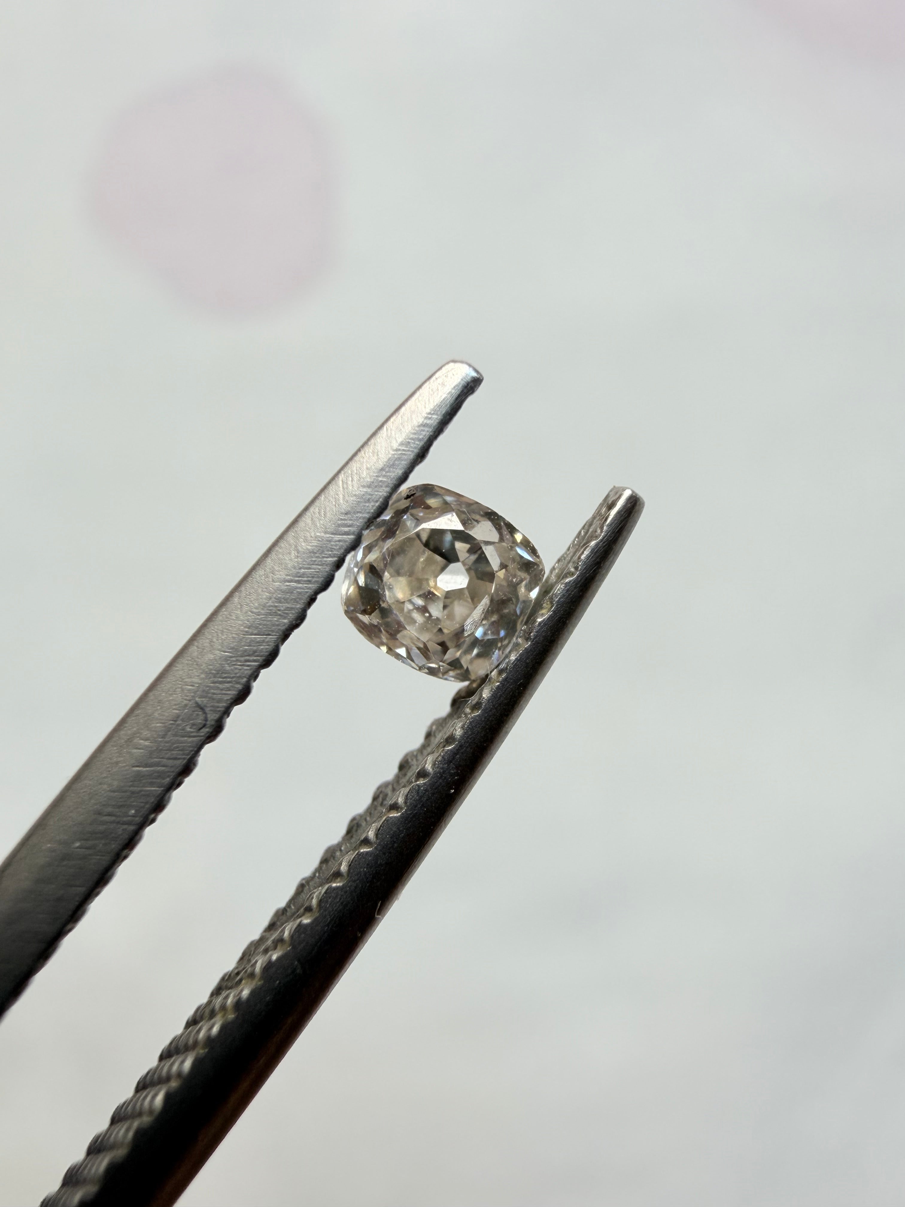 This genuine antique old mine cut diamond is 0.28ct, has I clarity and J colour, and a wonderful cushiony shape!