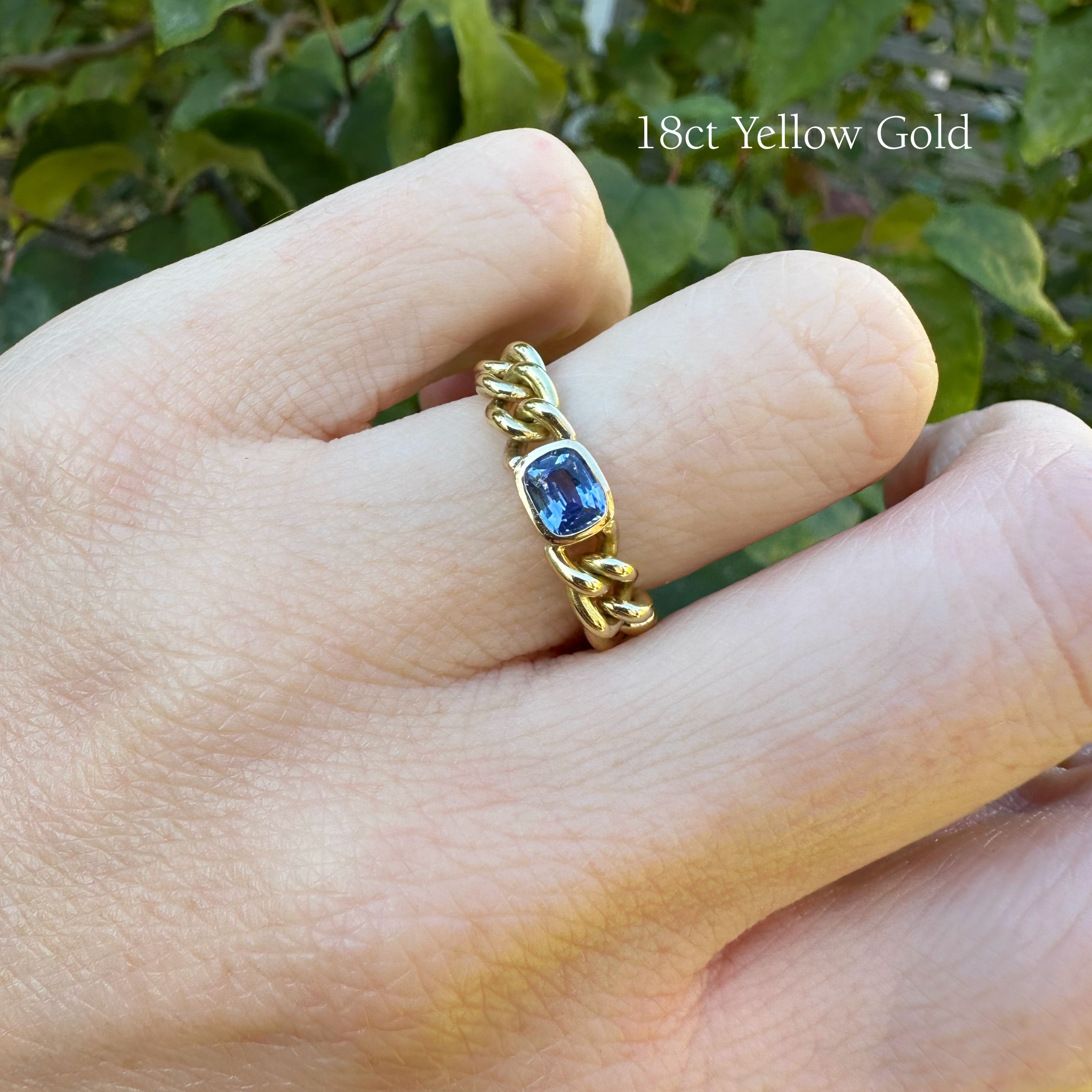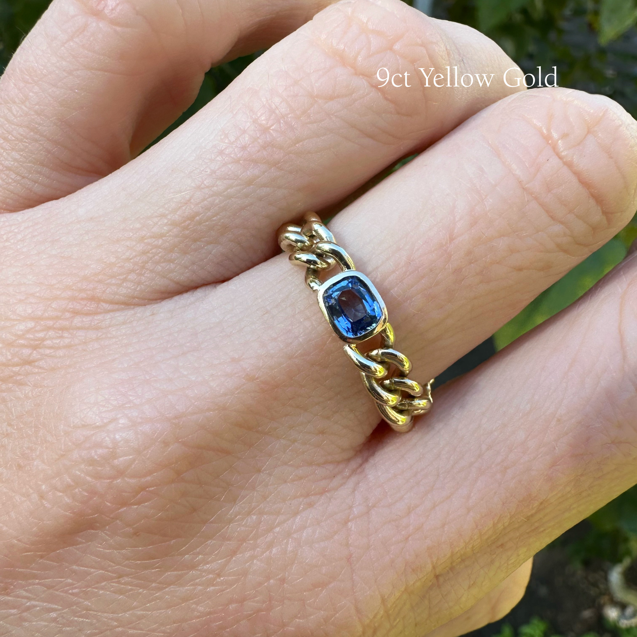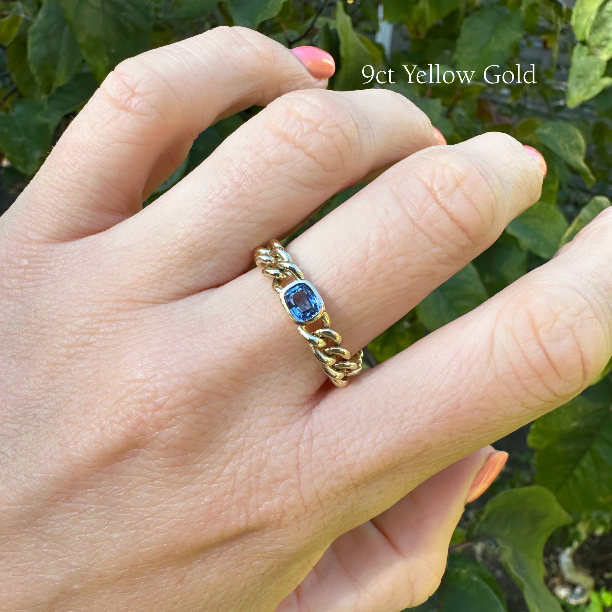 Photographed examples of 9 and 18ct gold are shown. Please note that our sapphires are natural and while we only pick the best, there is slight variation in tone, if you have a preference please do add to order notes and we will accommodate where we can.