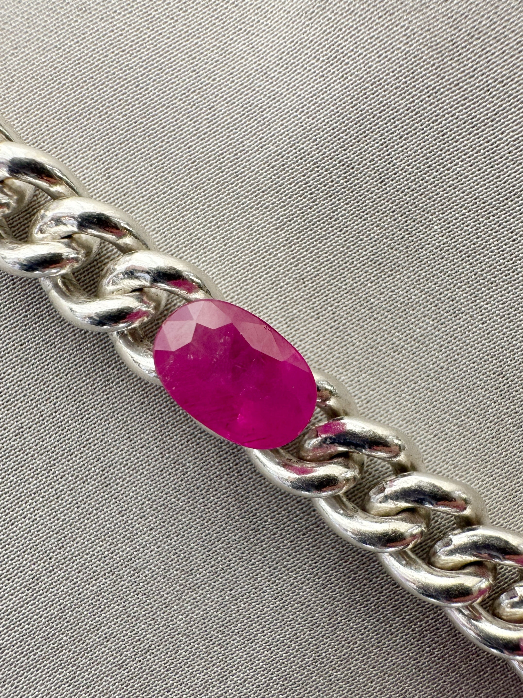 Silver Curb Bracelet with Hot Pink Sapphire - Stone 2 (private listing)