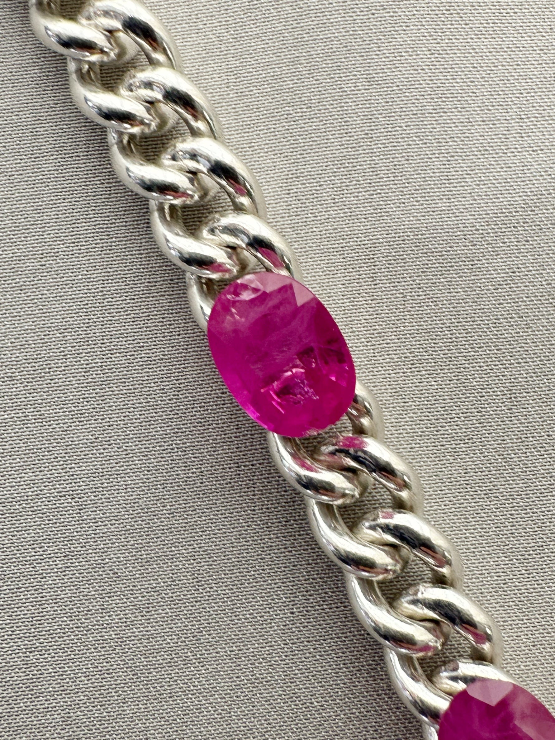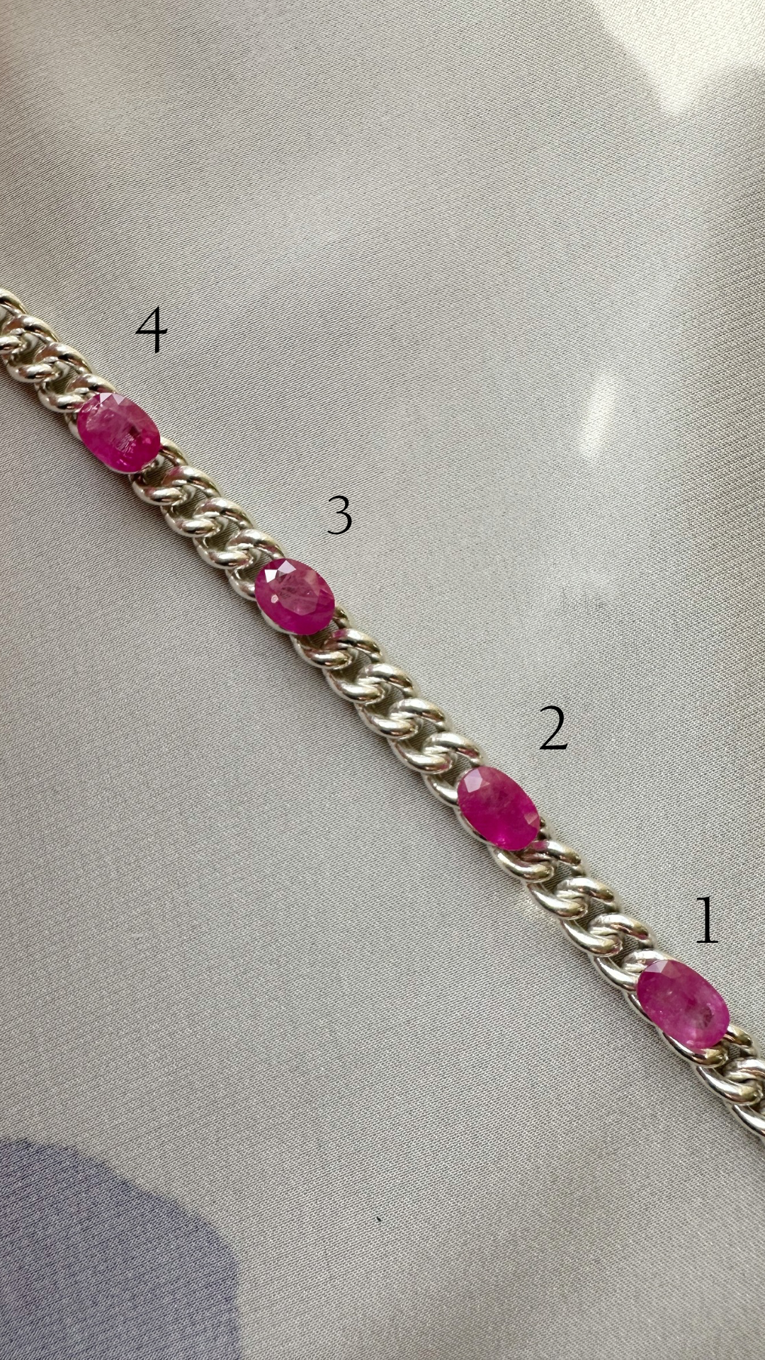 Silver Curb Bracelet with Hot Pink Sapphire - Stone 4 (private listing)