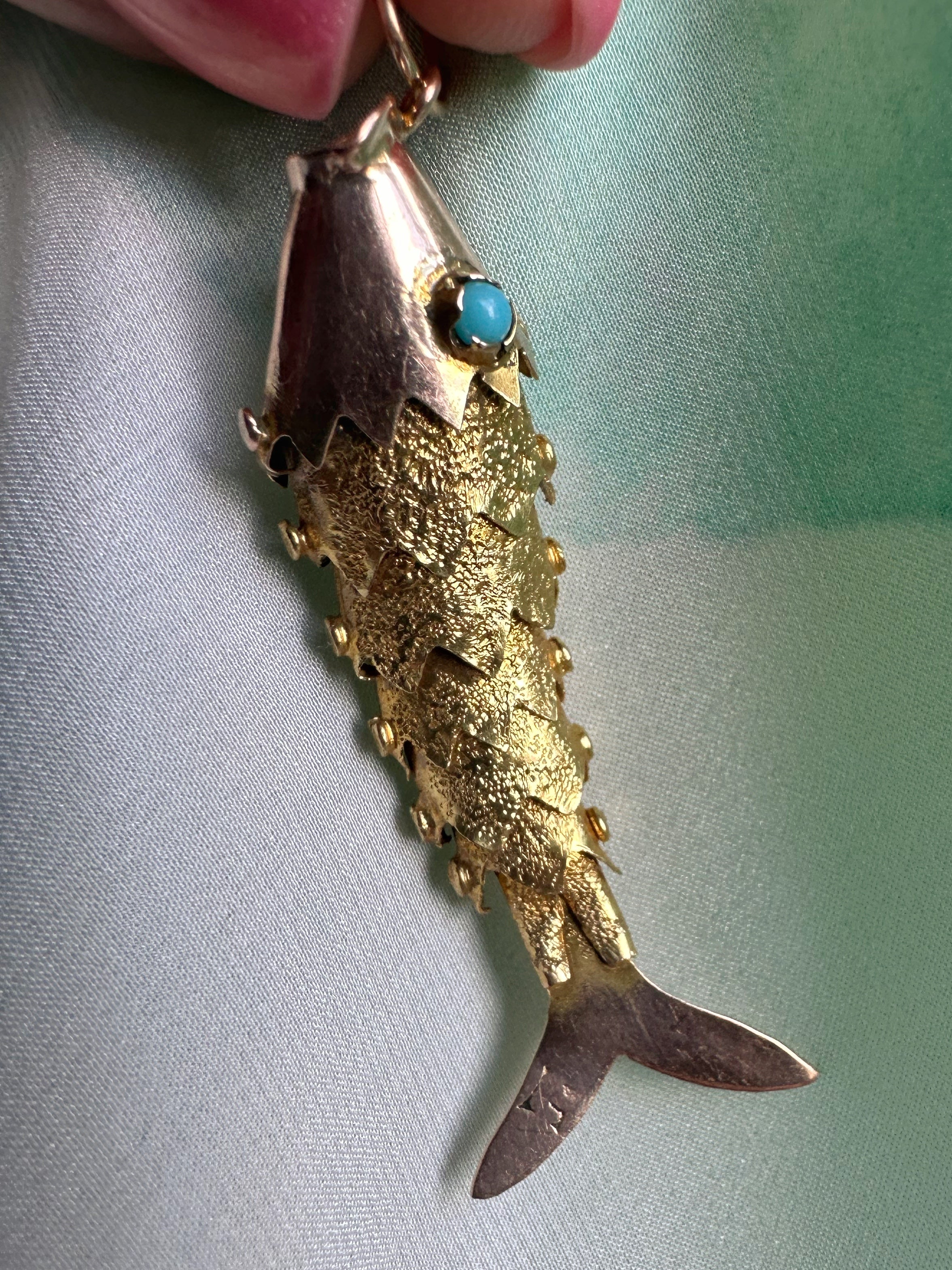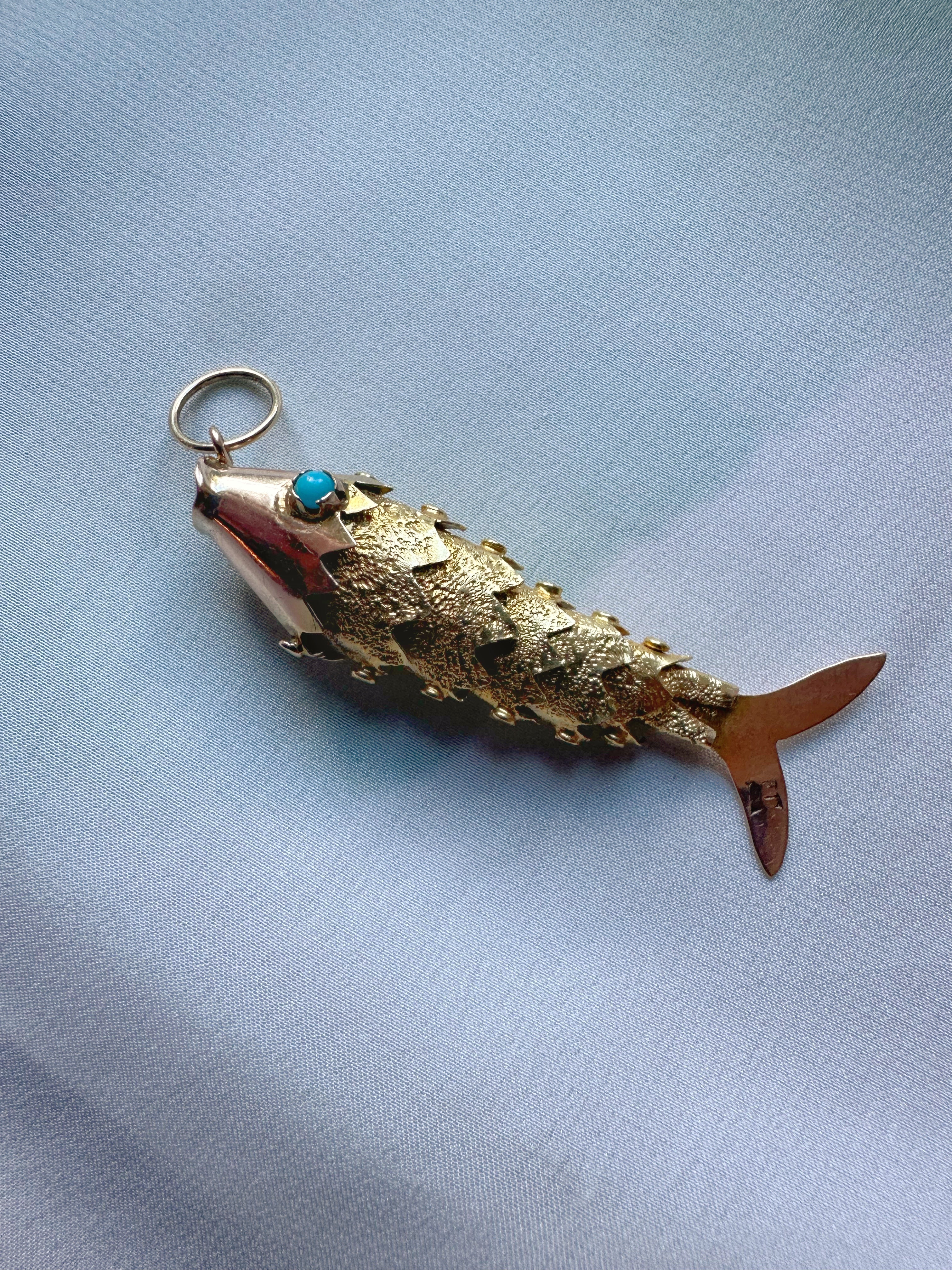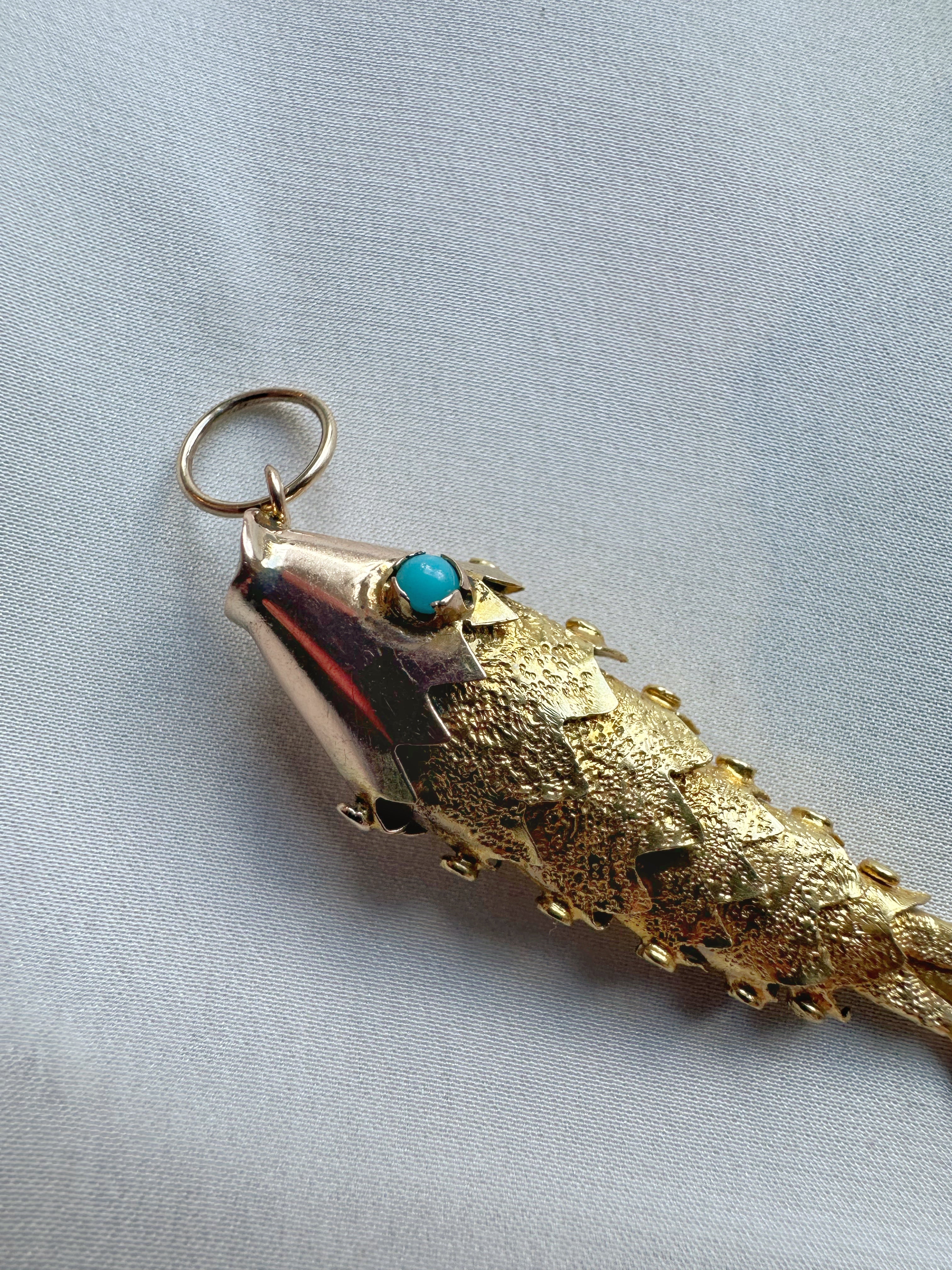 Antique 15ct Articulated Fish with Turquoise Eyes