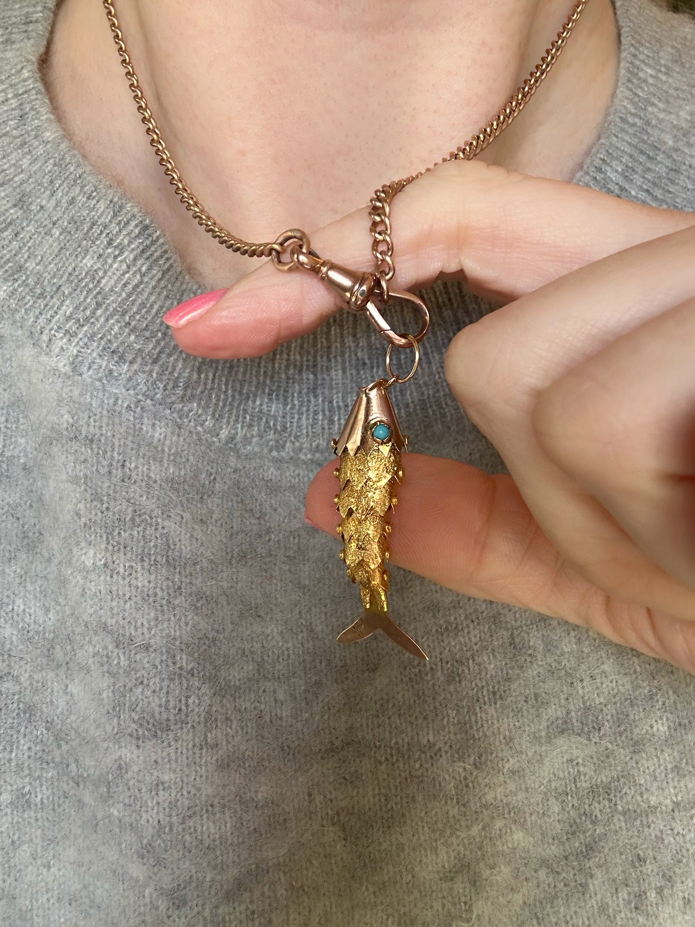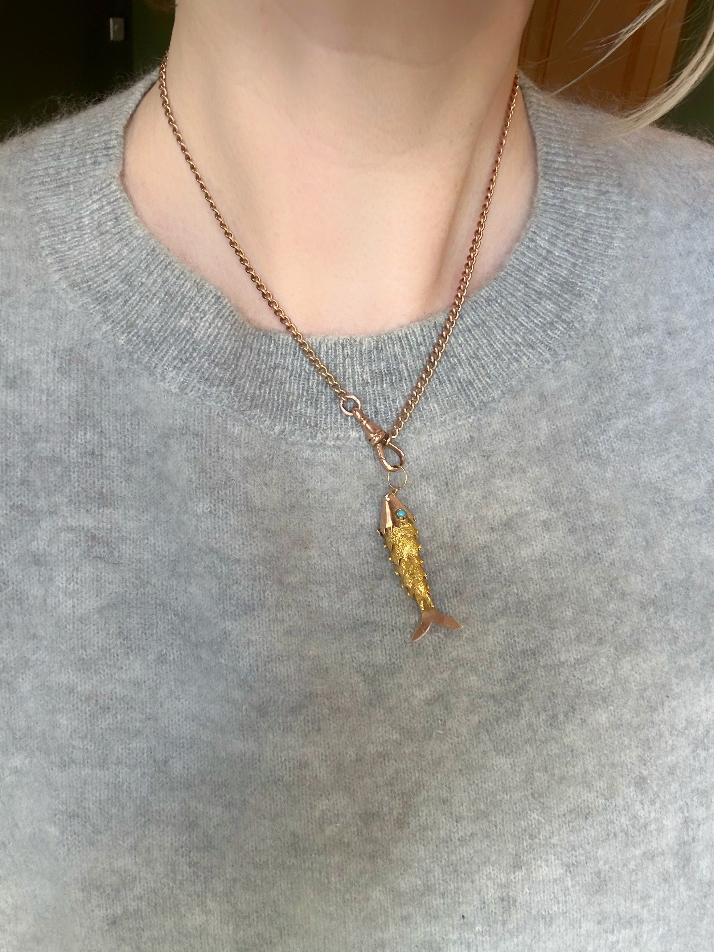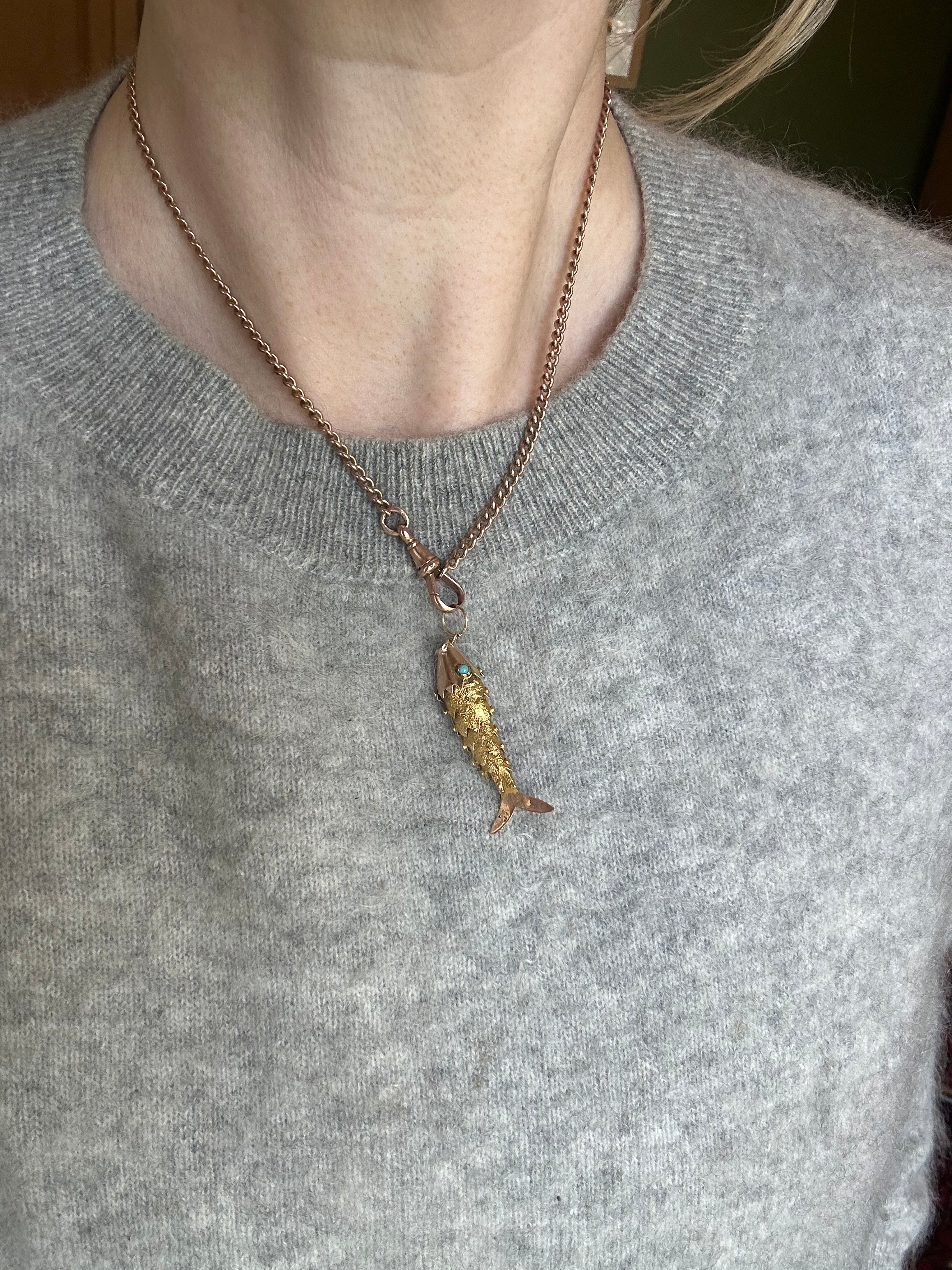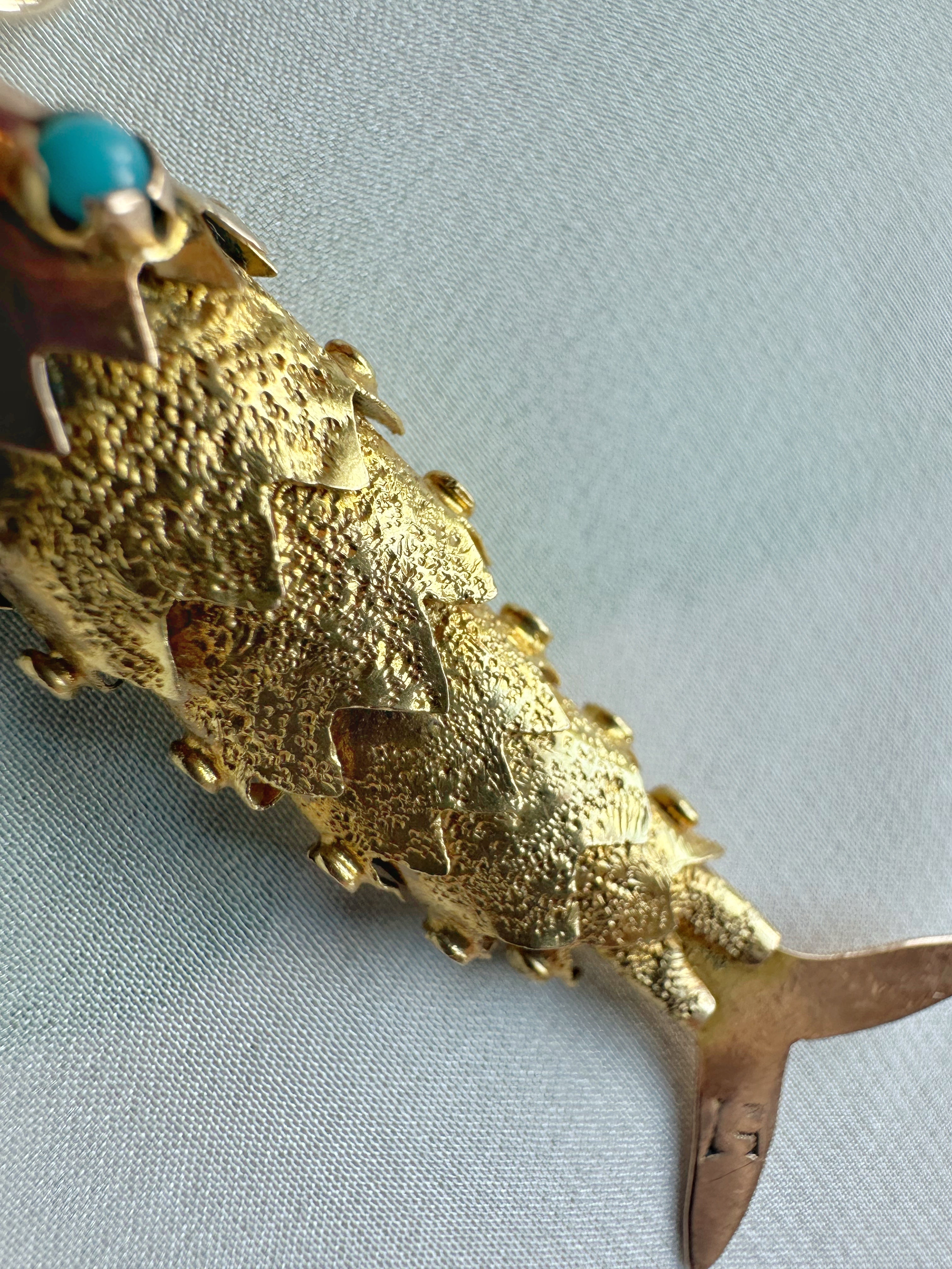 Antique 15ct Articulated Fish with Turquoise Eyes
