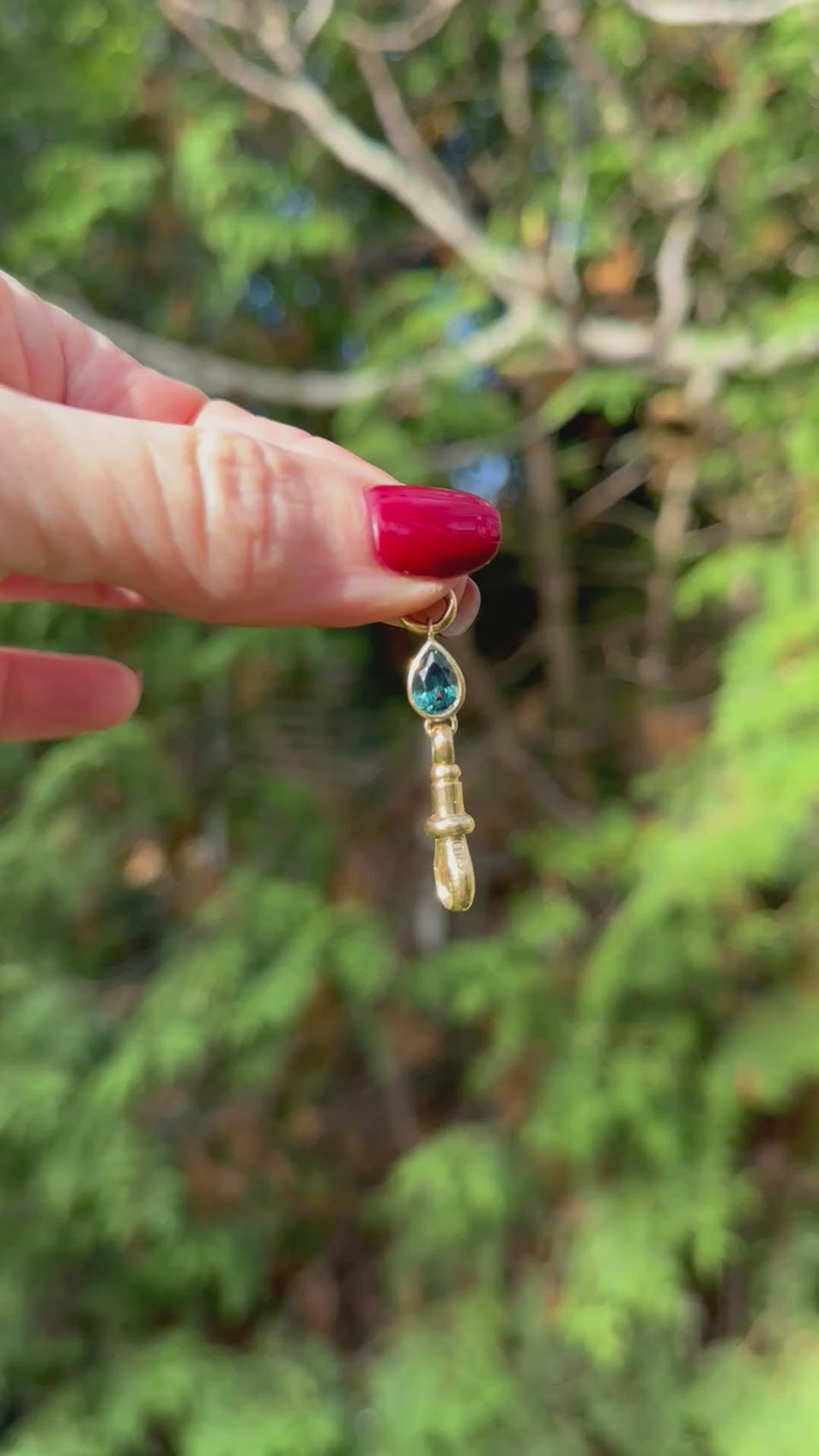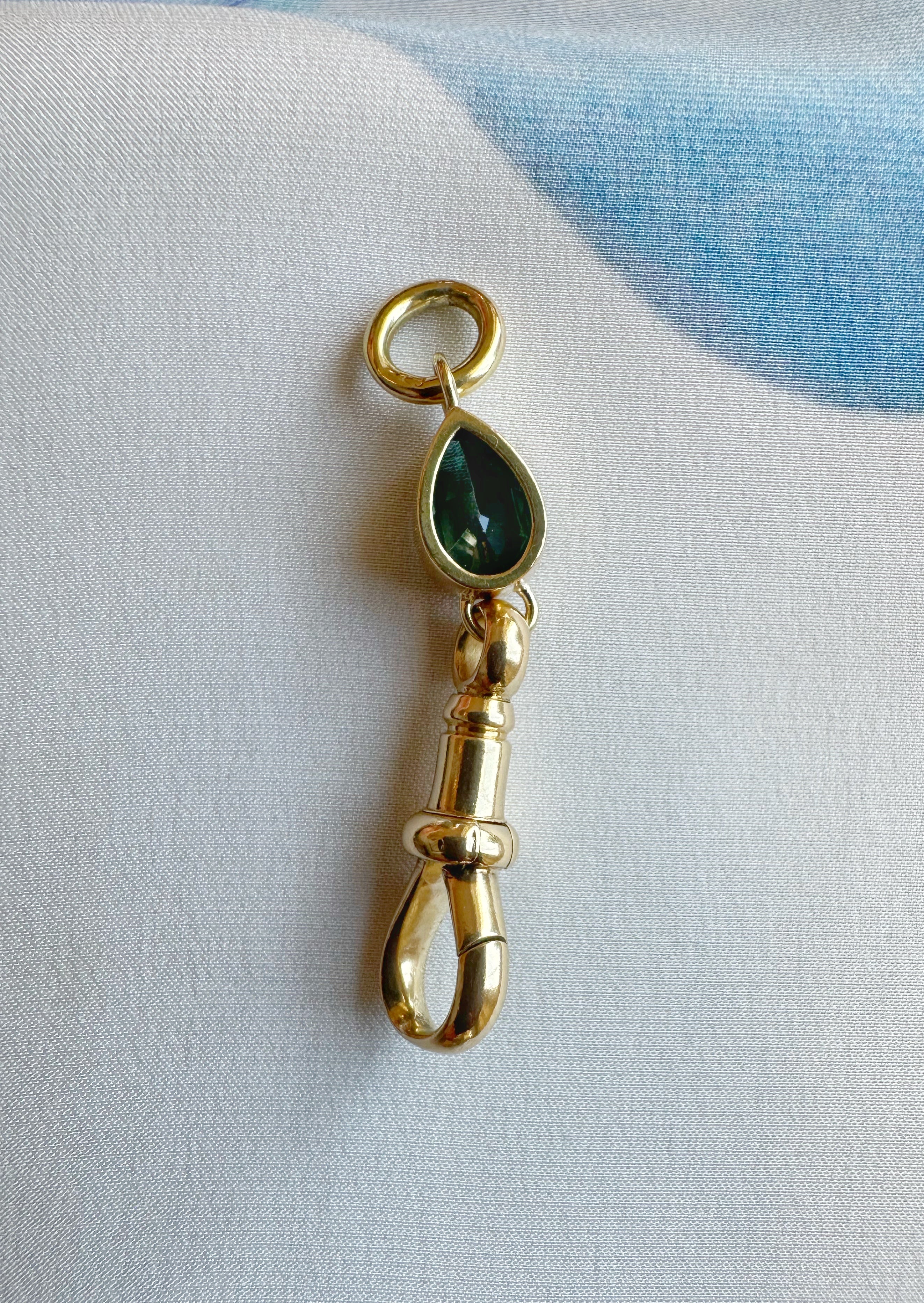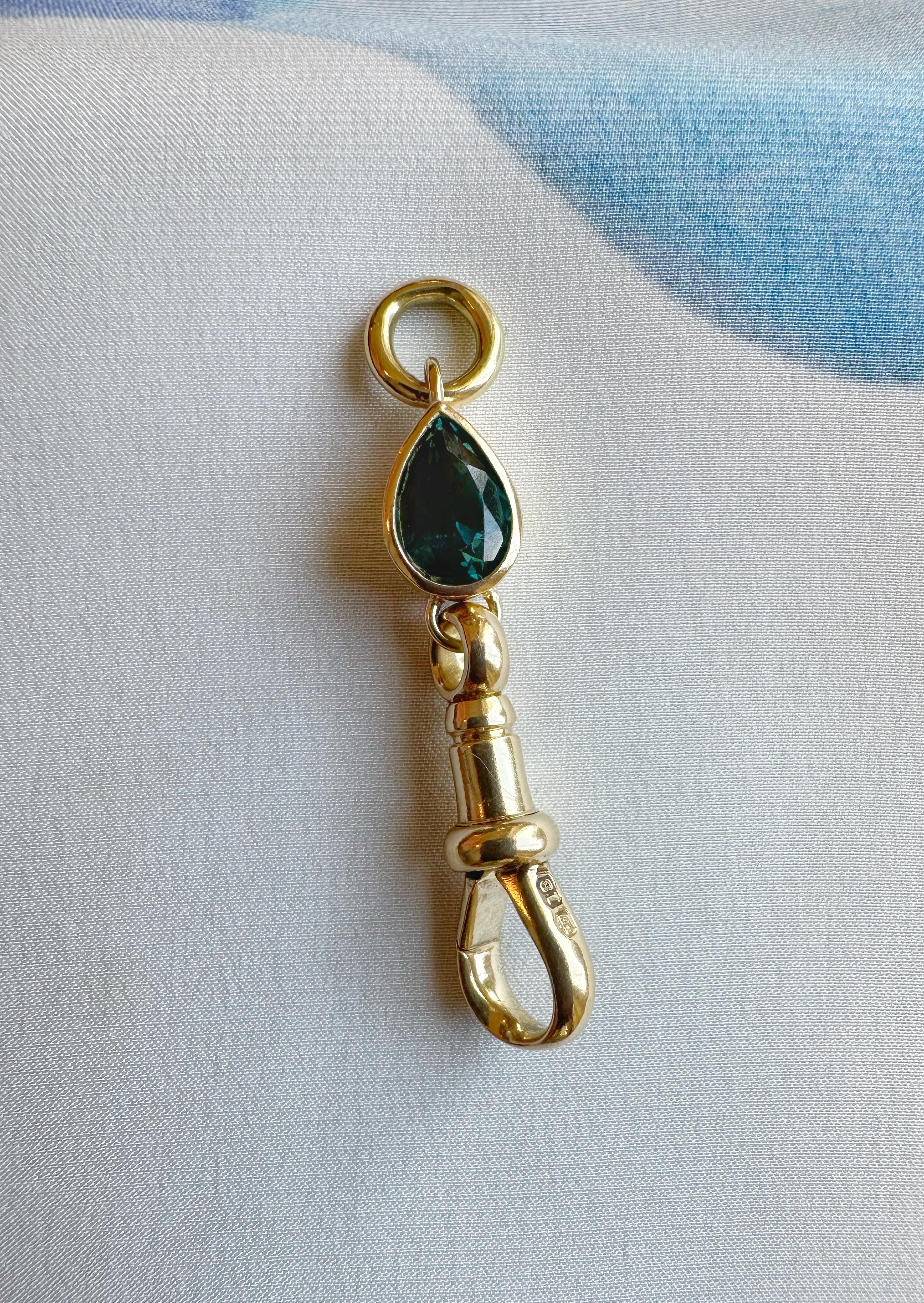 Antique Dog Clasp | Pear Teal Sapphire | 18ct