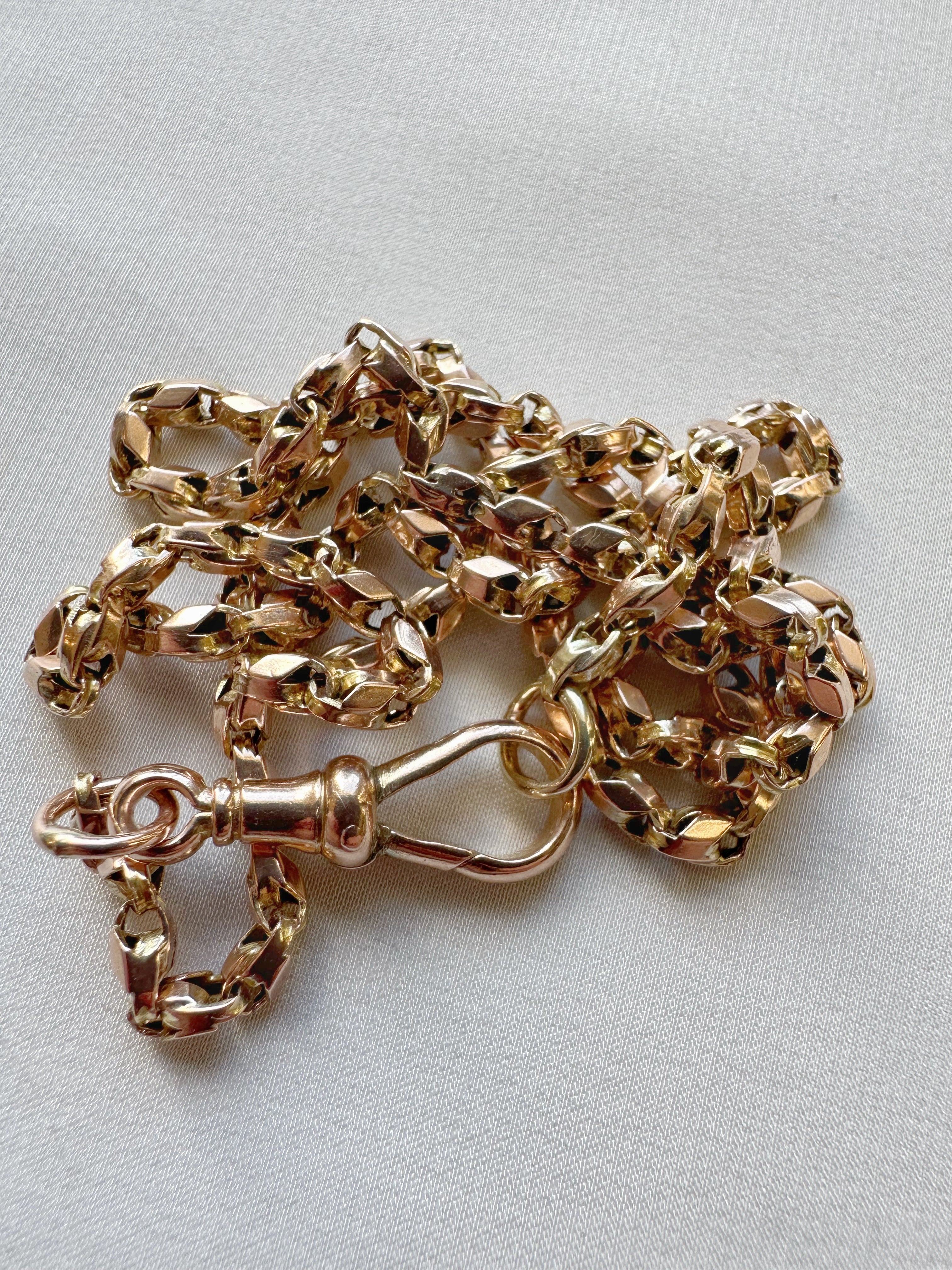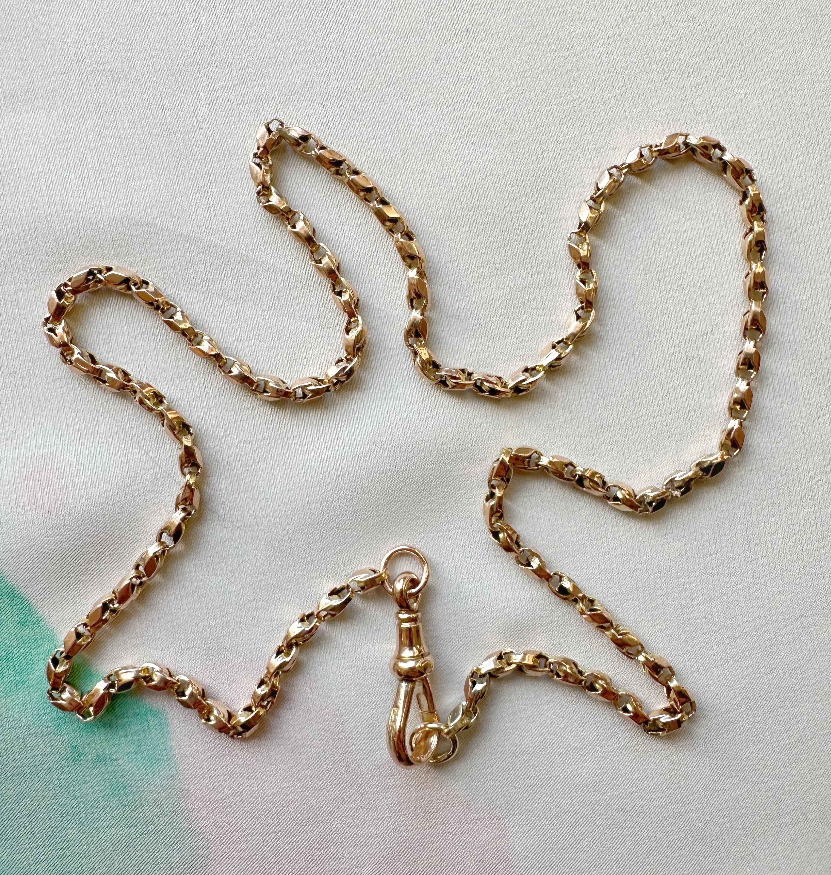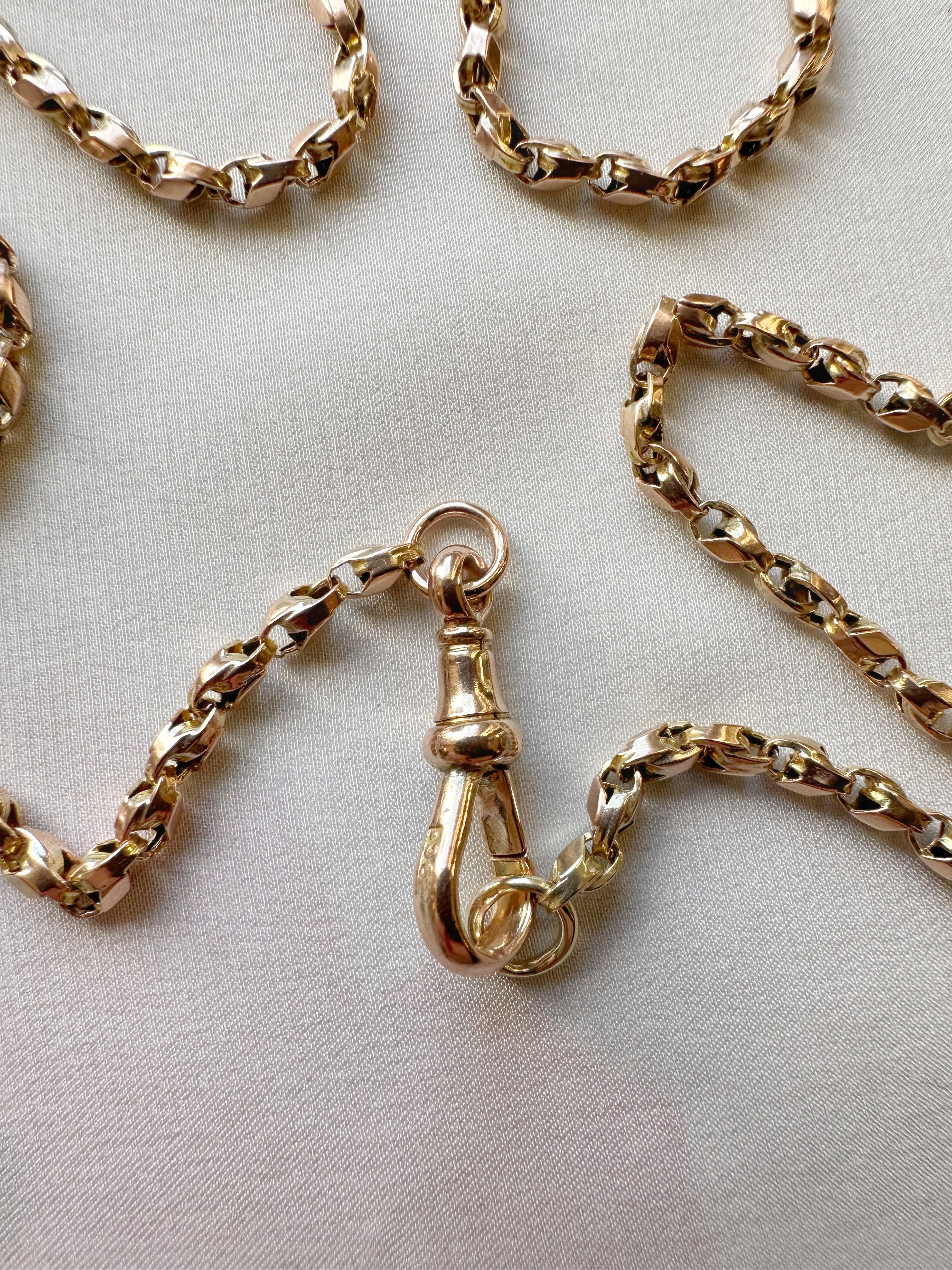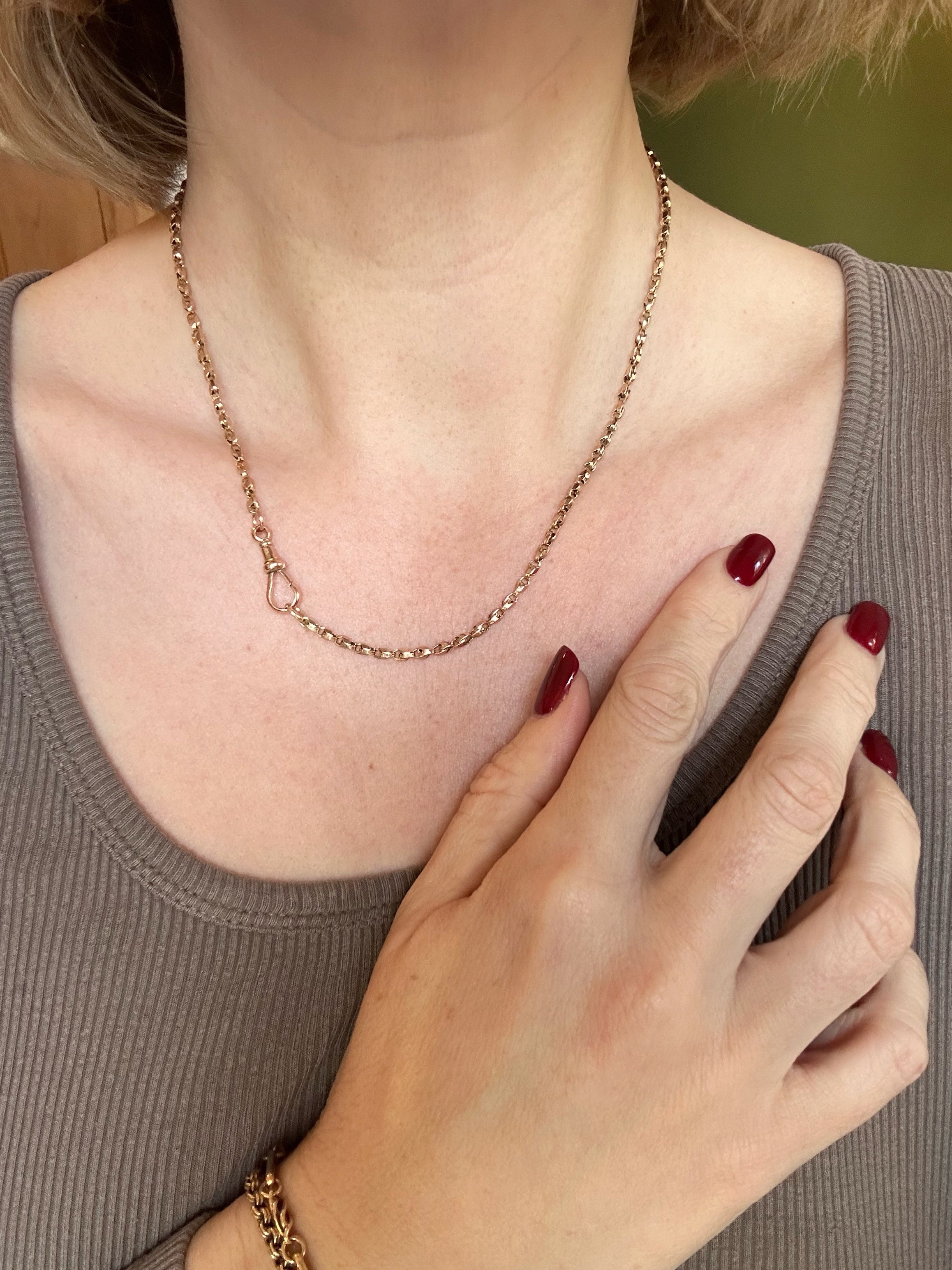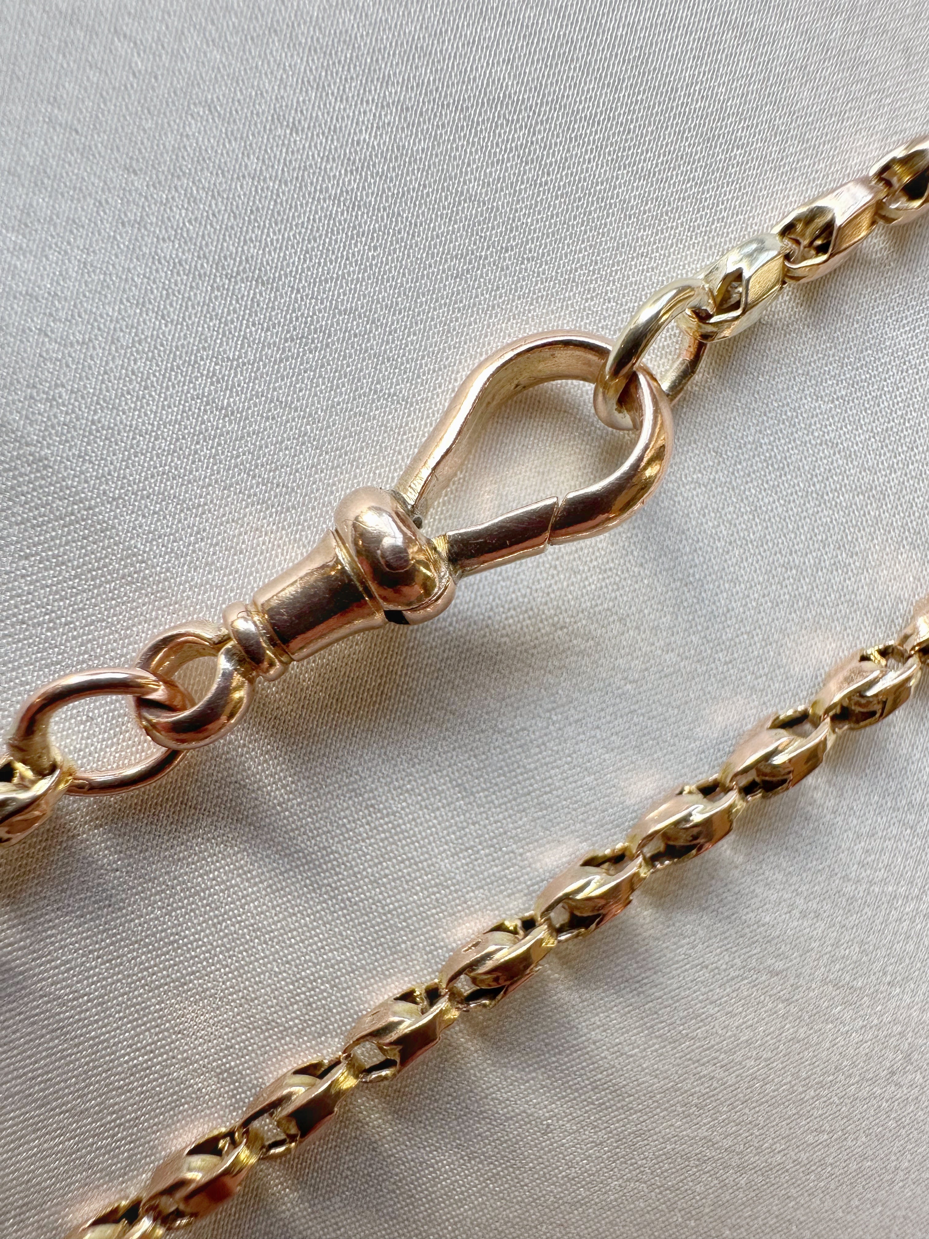This was once a long guard which we have shortened and finished with a well matched antique dog clasp.