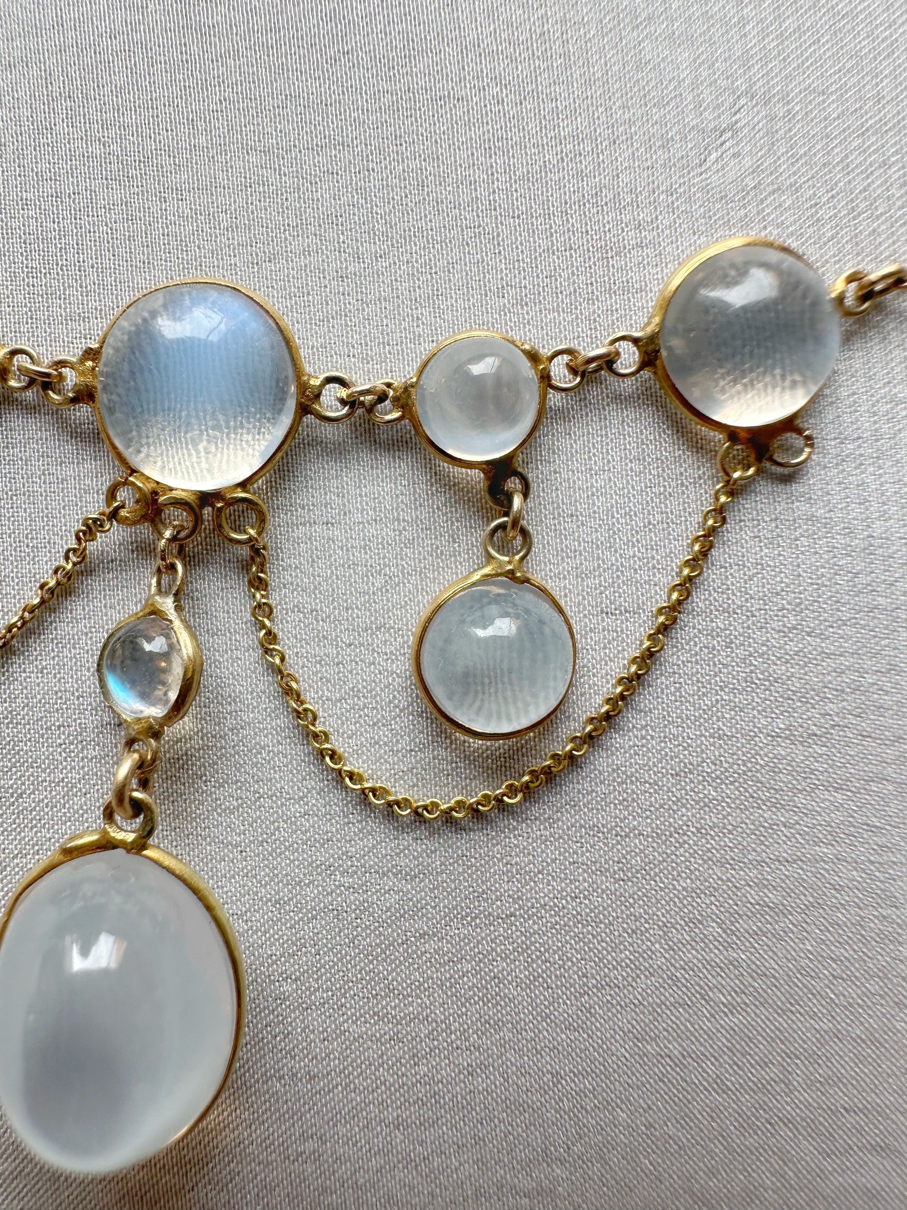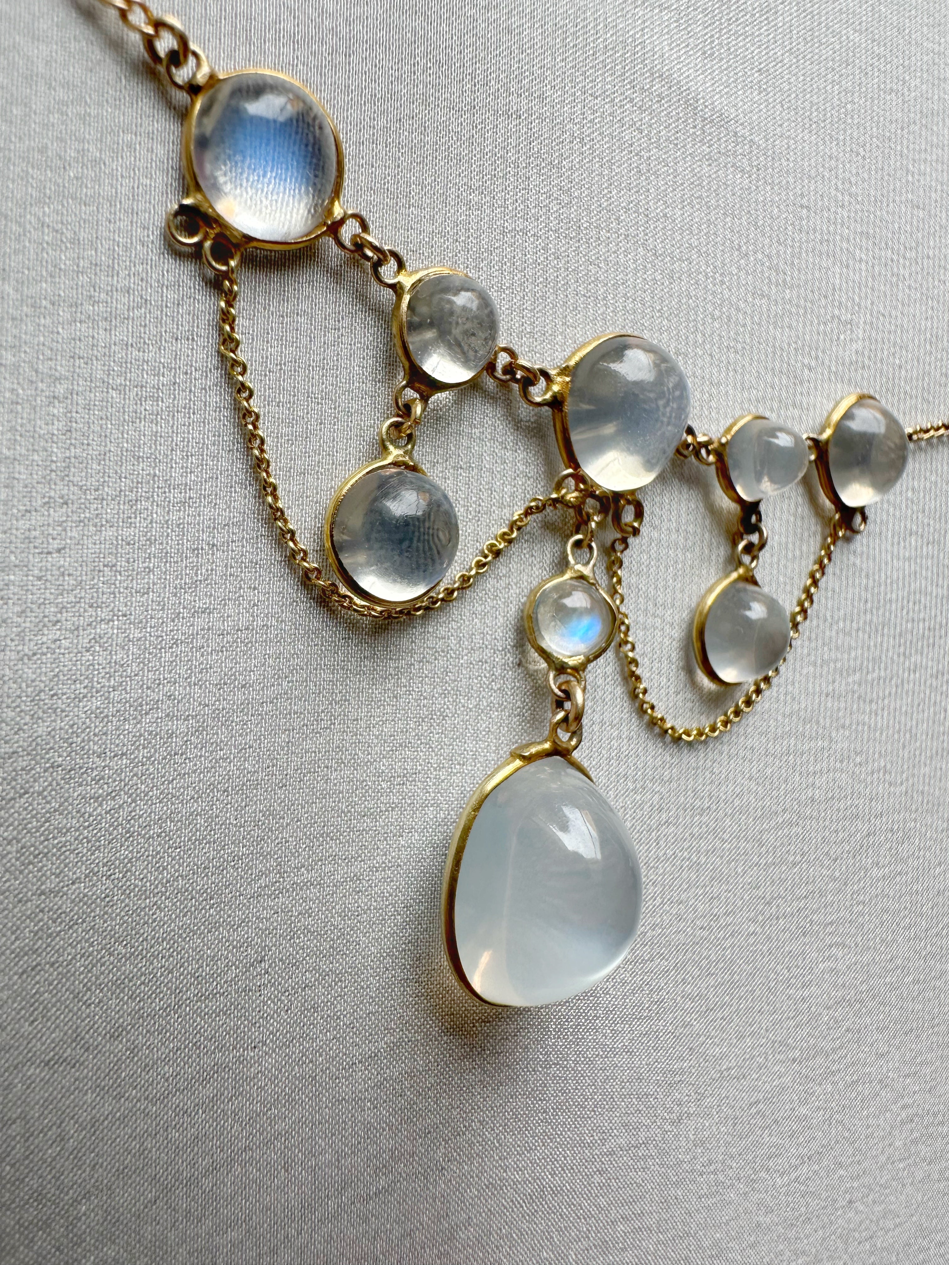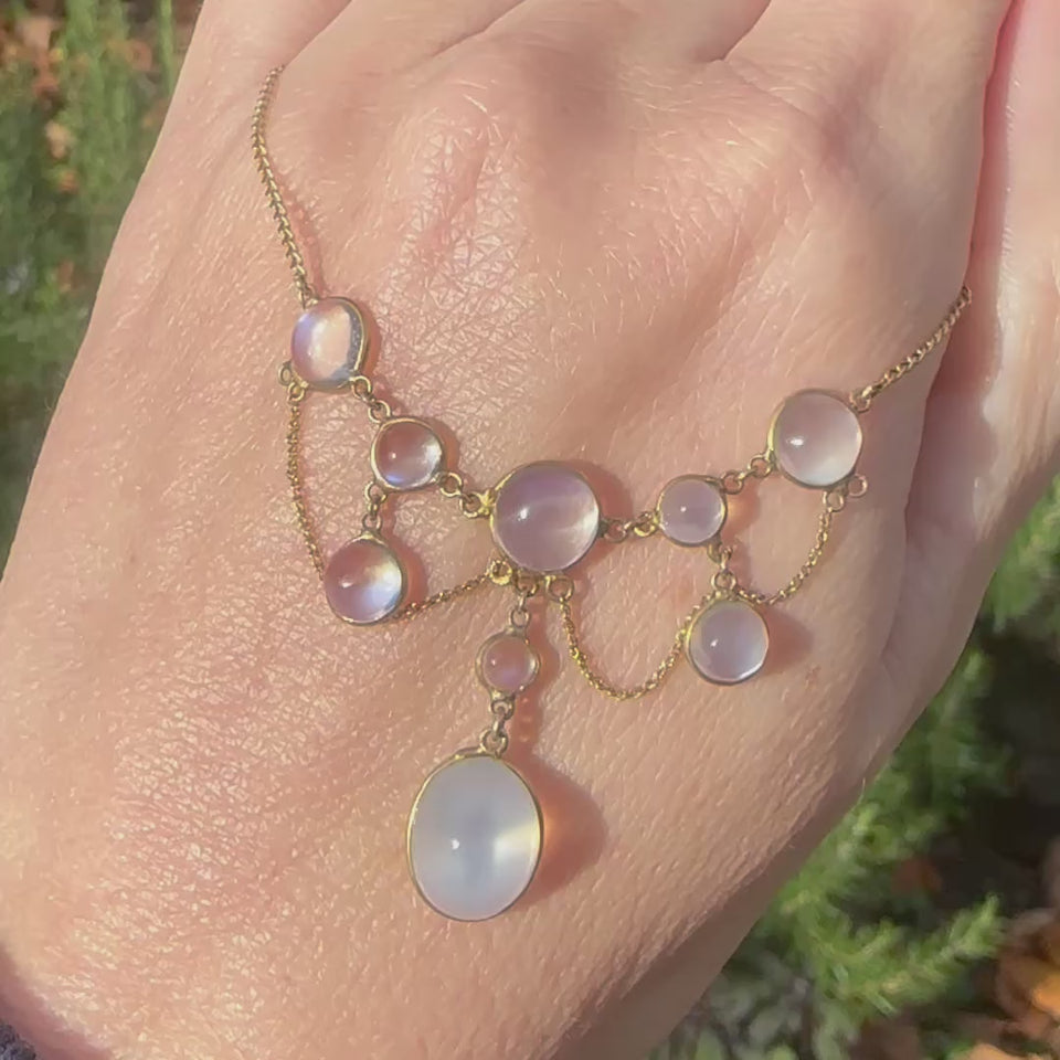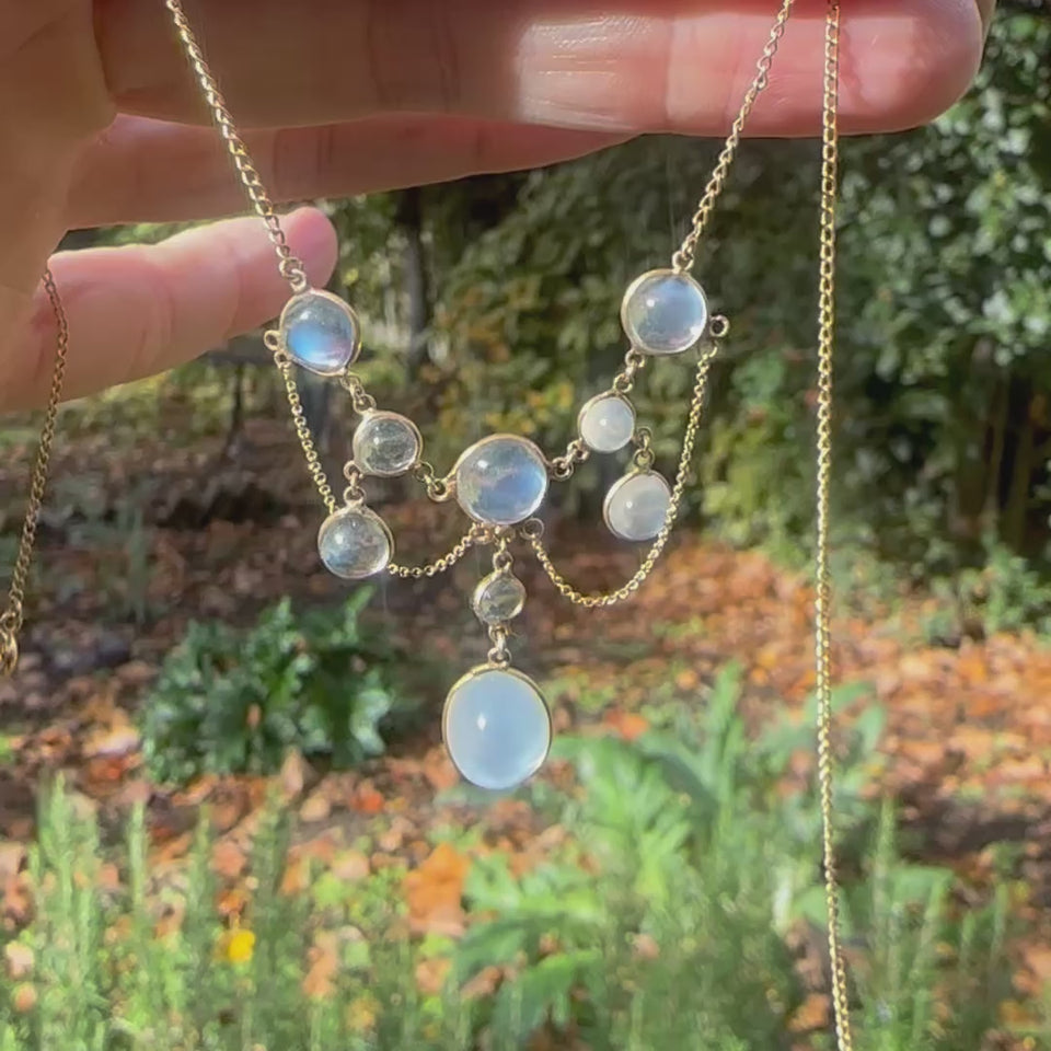 The stone really leans in to this festoon style of necklace, popular in the early 1900s which is when this piece dates to. Each stone has been framed in a delicate ribbon of gold and this piece looks so elegant when worn.