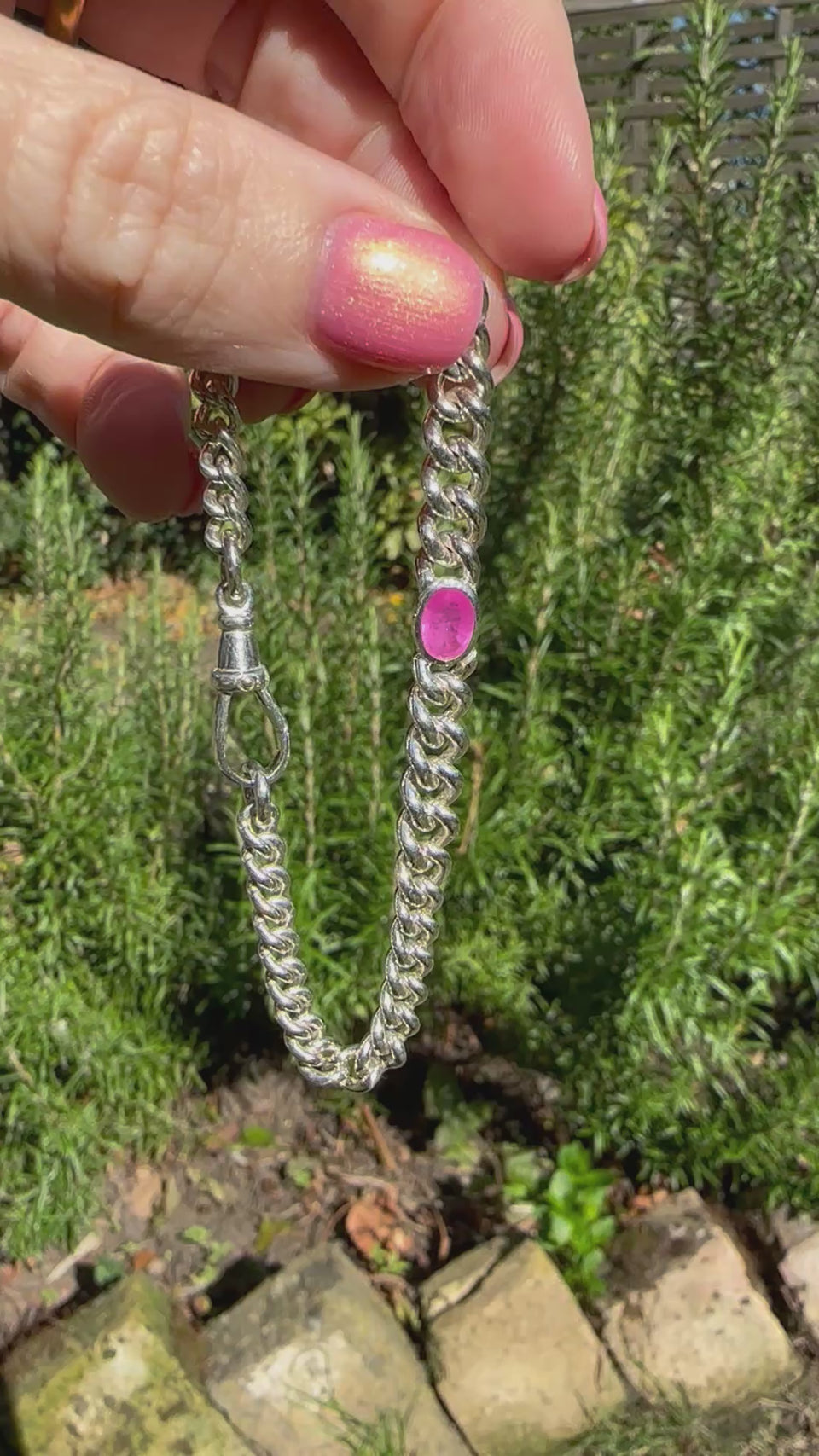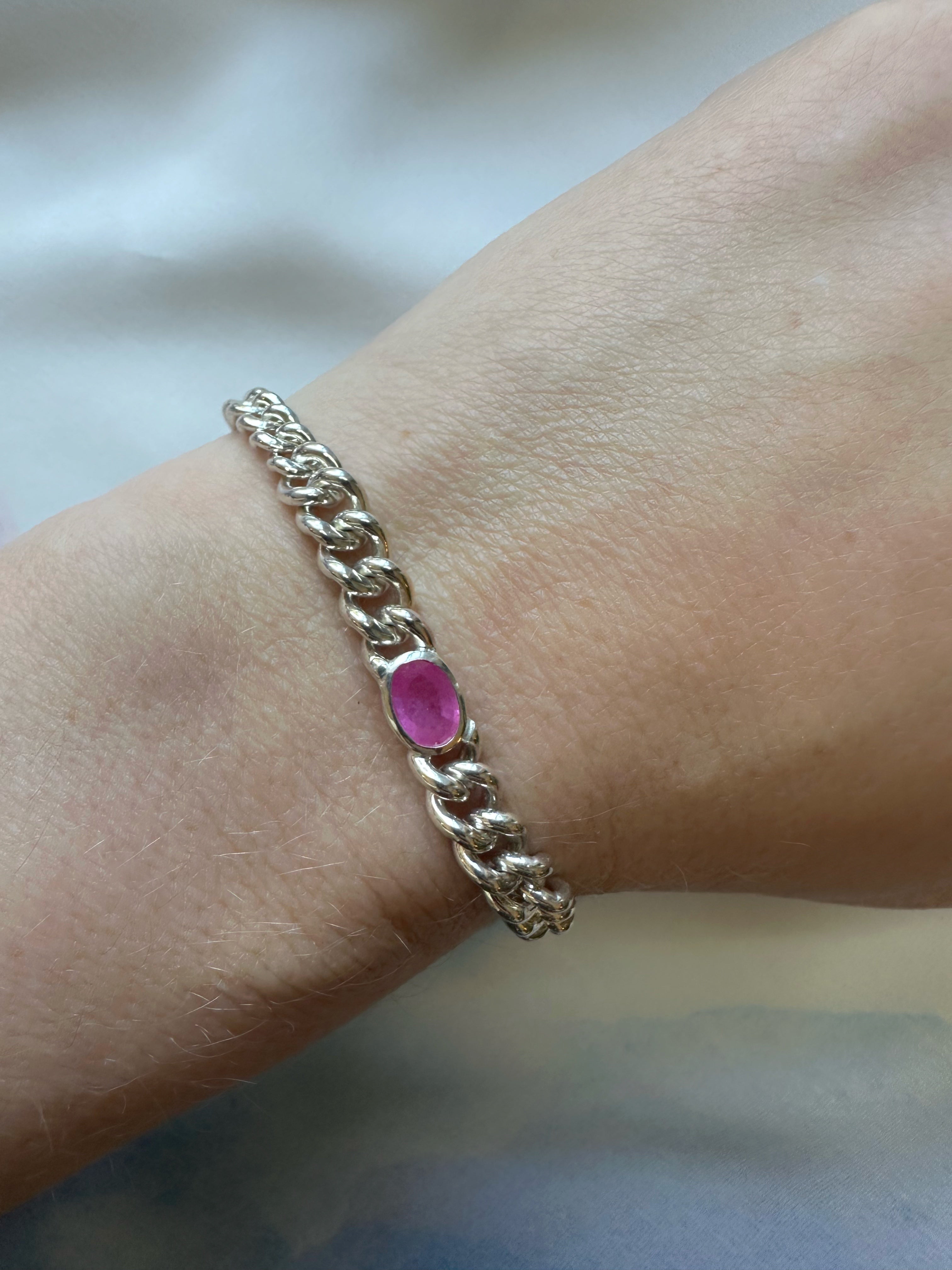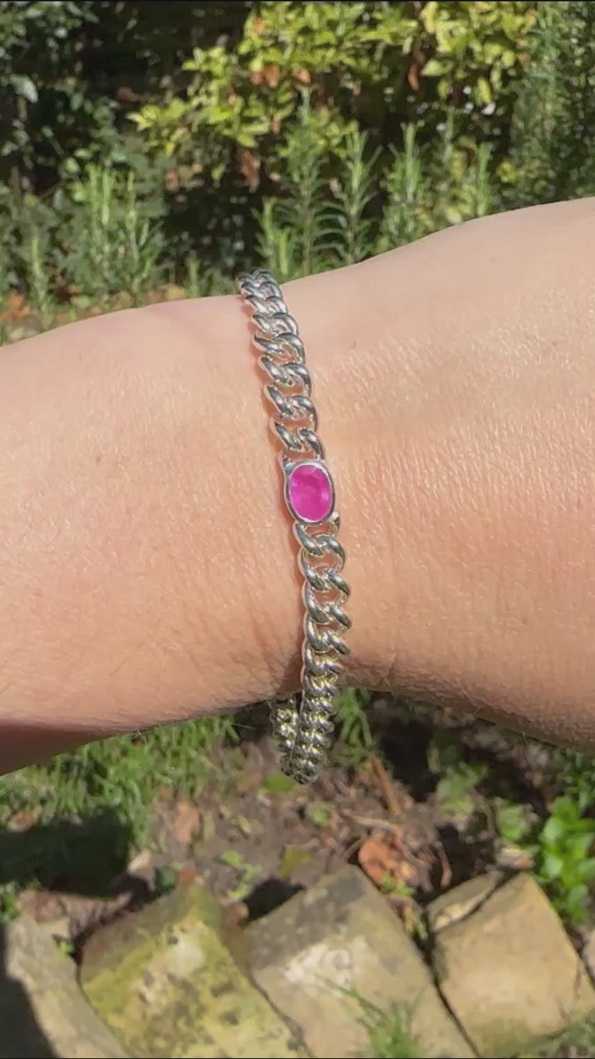 Hot Pink Sapphire // Silver Curb Bracelet - 1ct