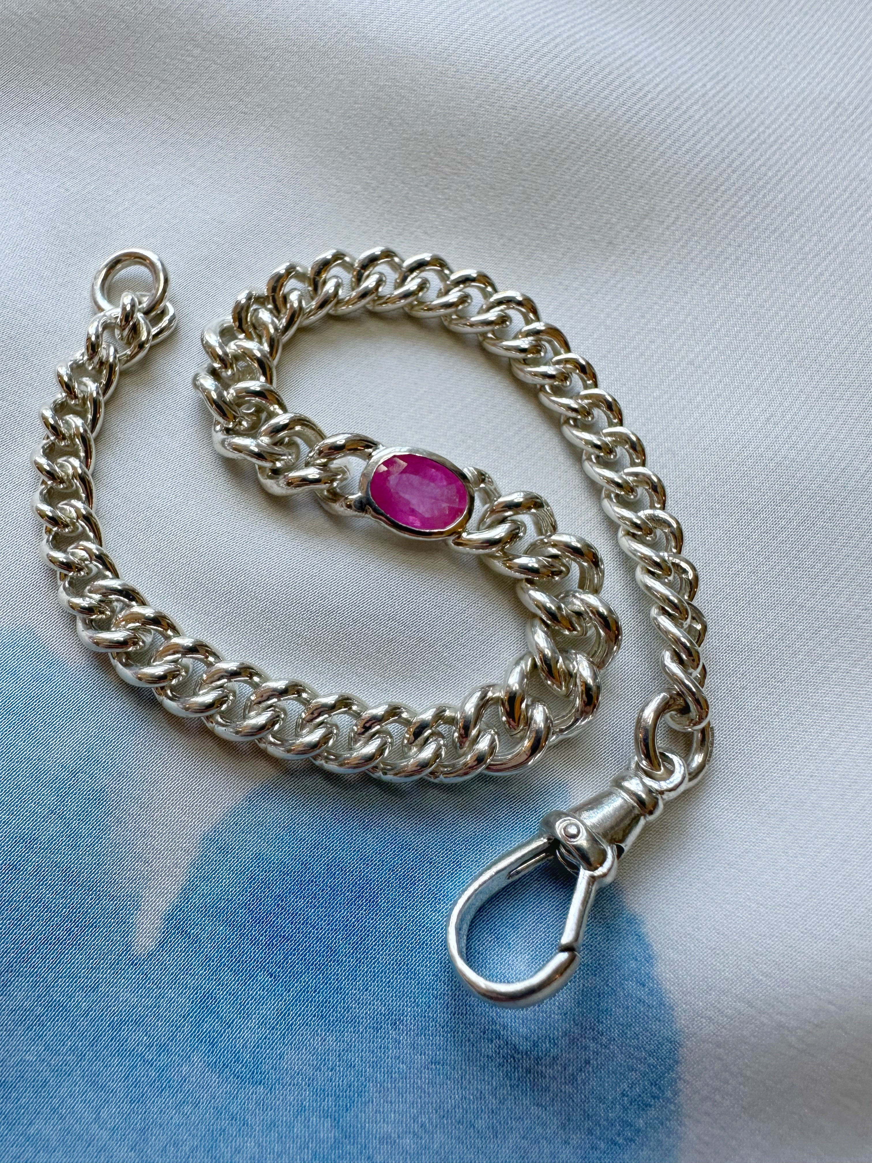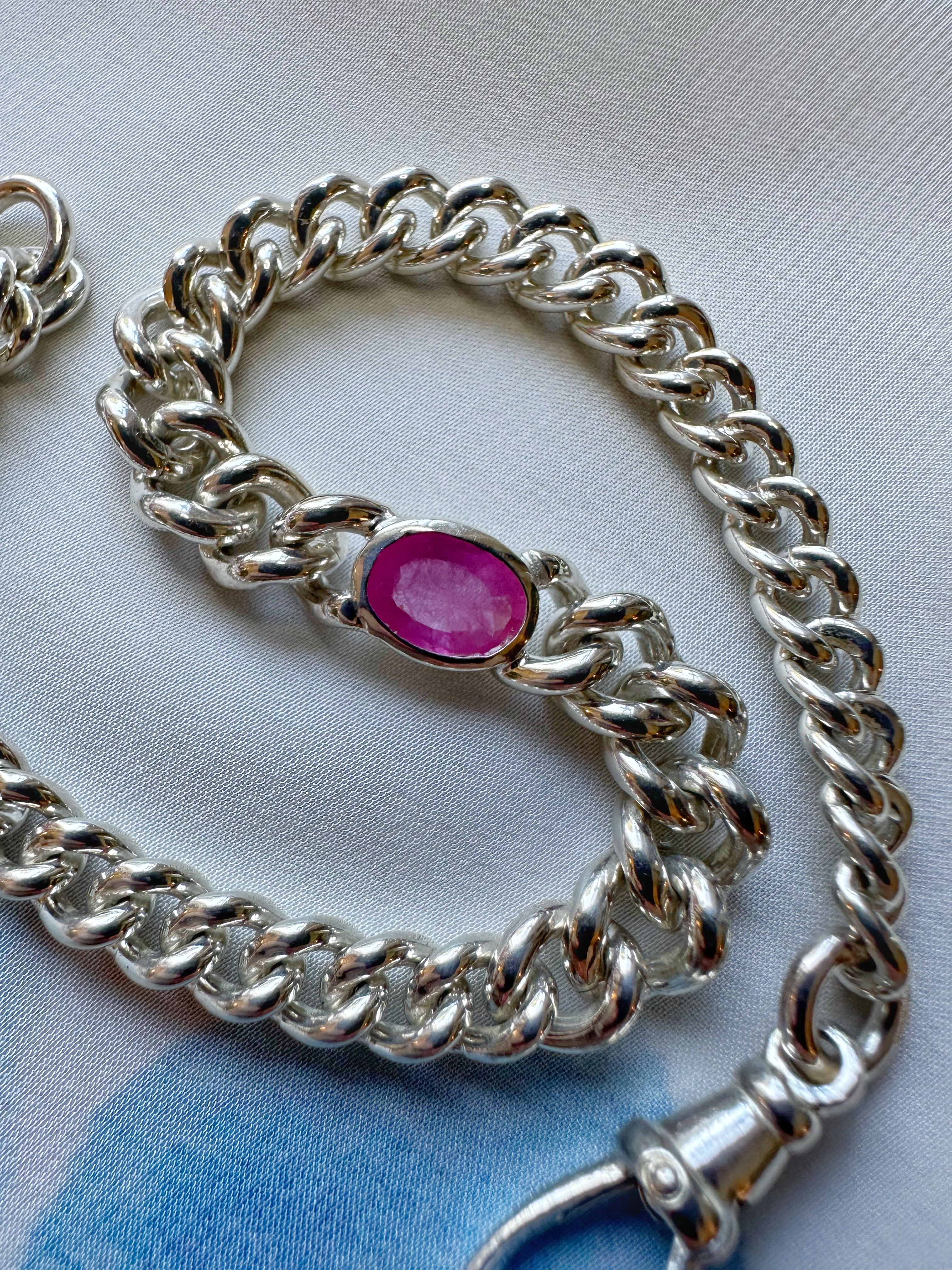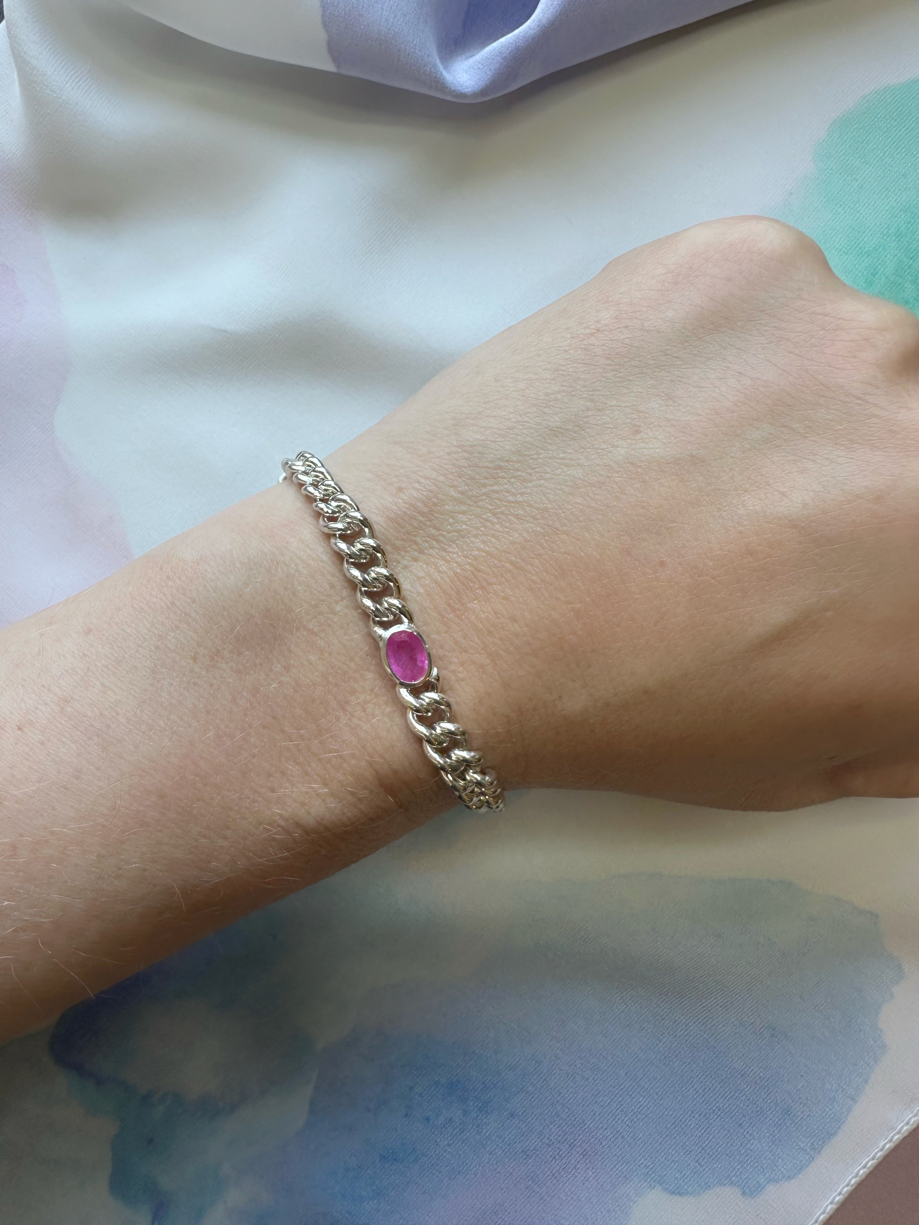 Hot Pink Sapphire // Silver Curb Bracelet - 1ct