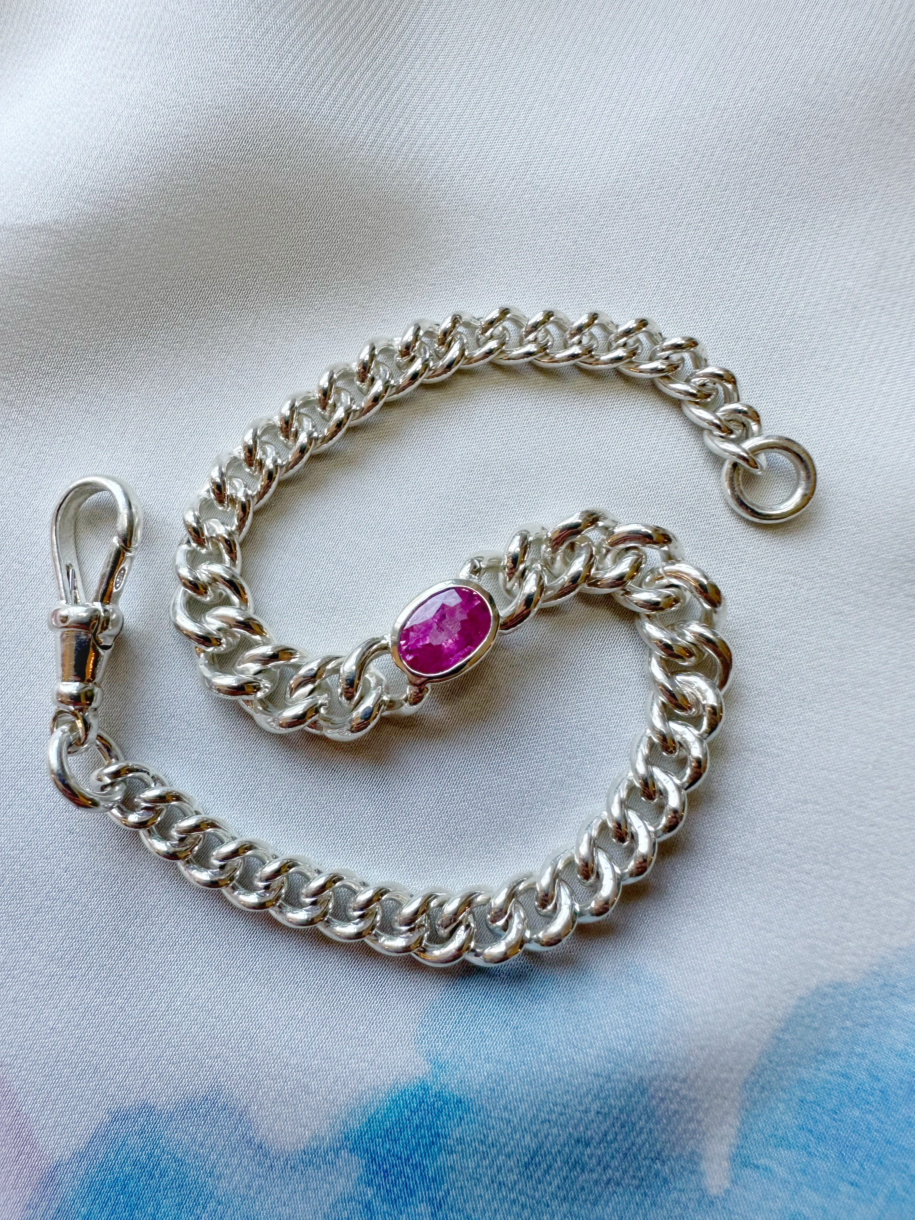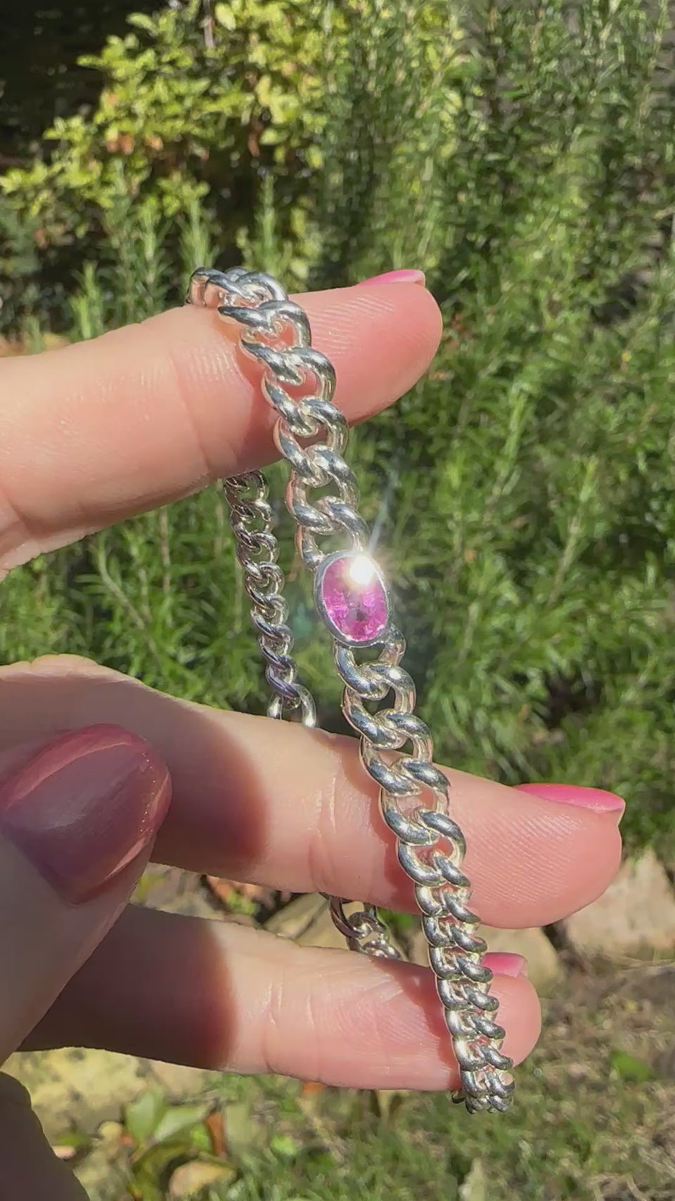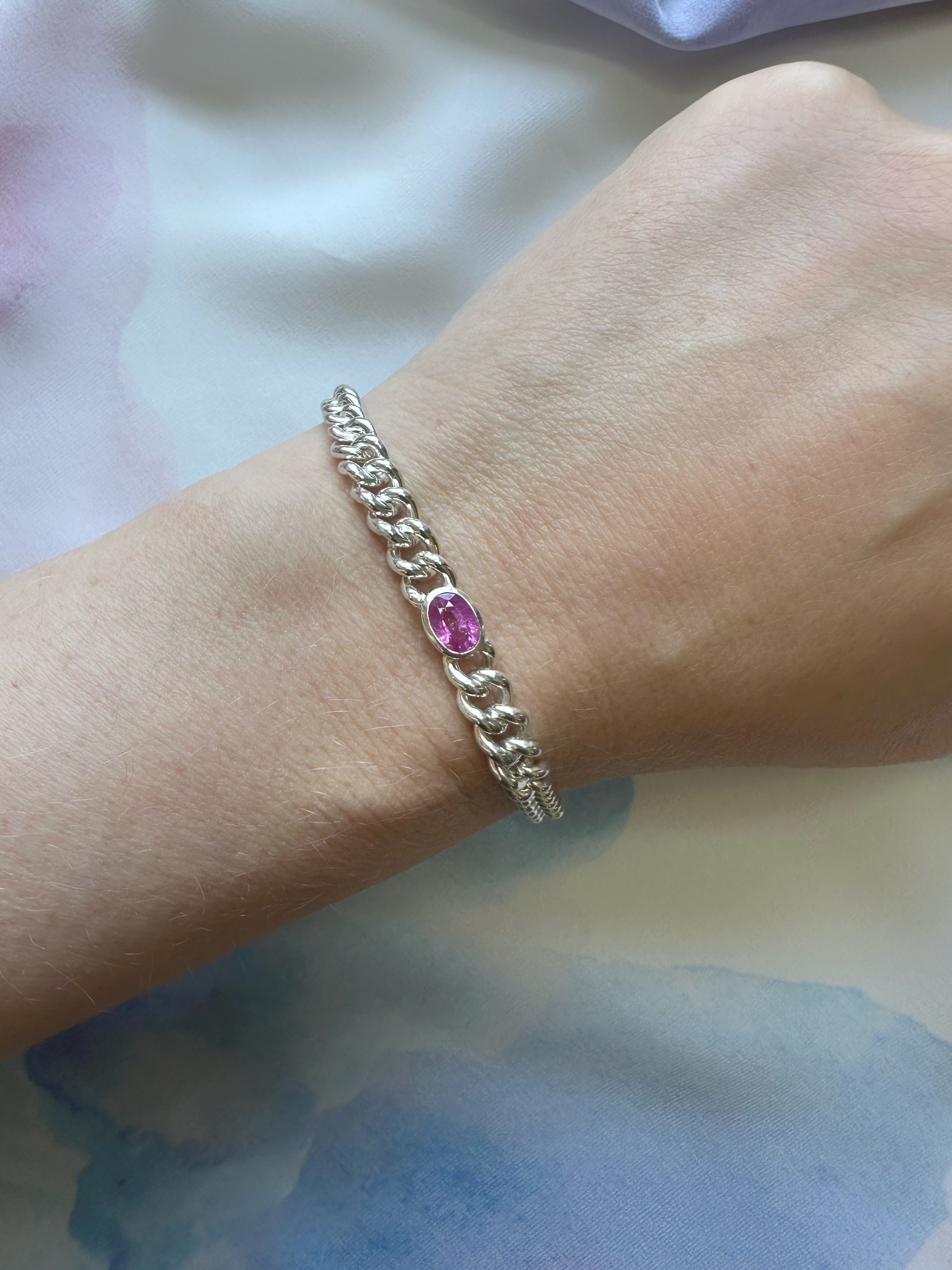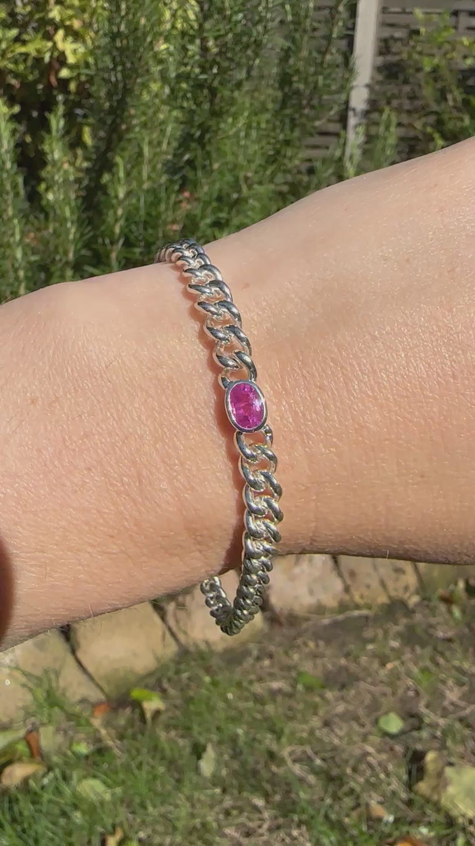 Hot Pink Sapphire // Silver Curb Bracelet - 1.37ct