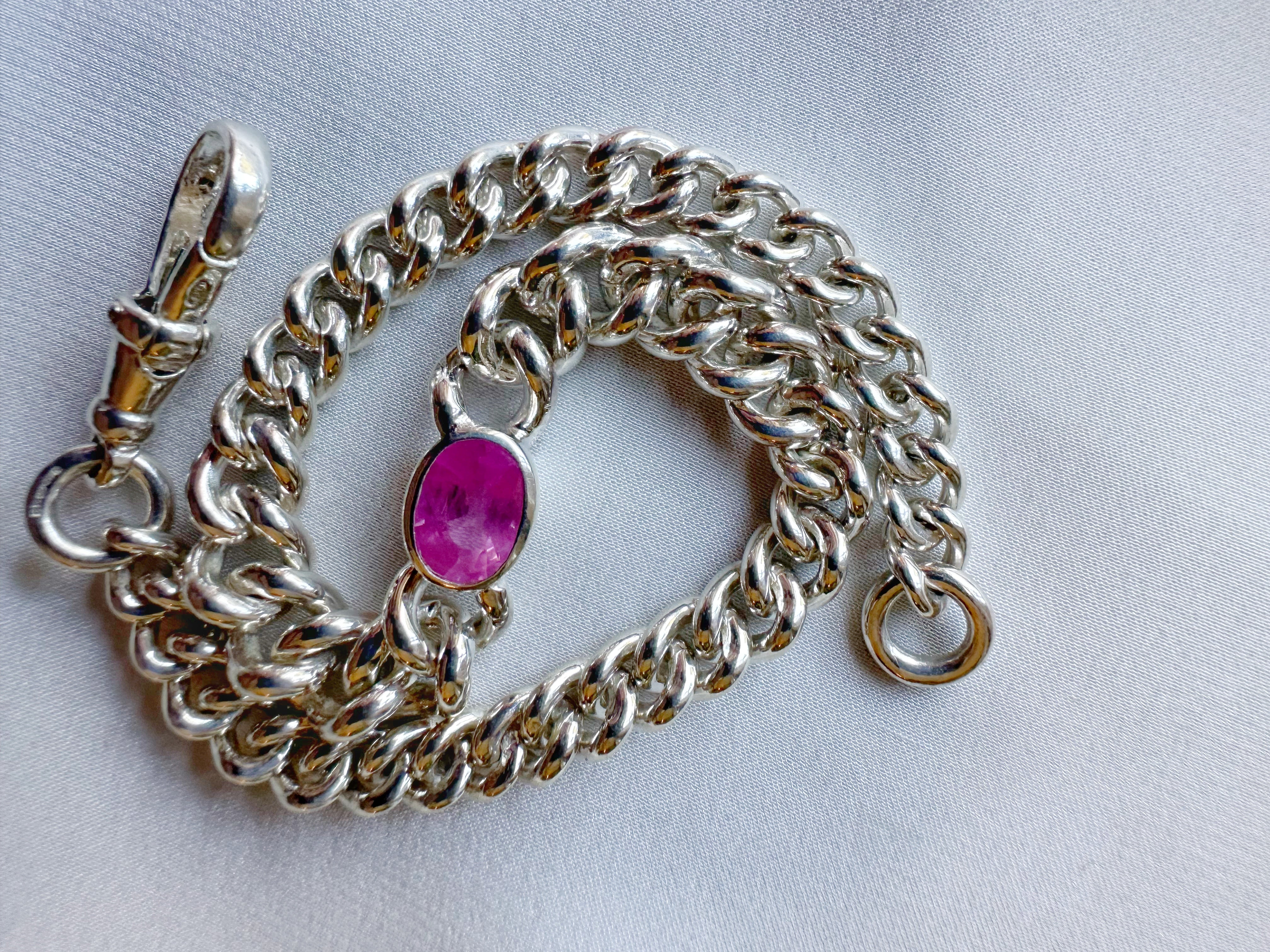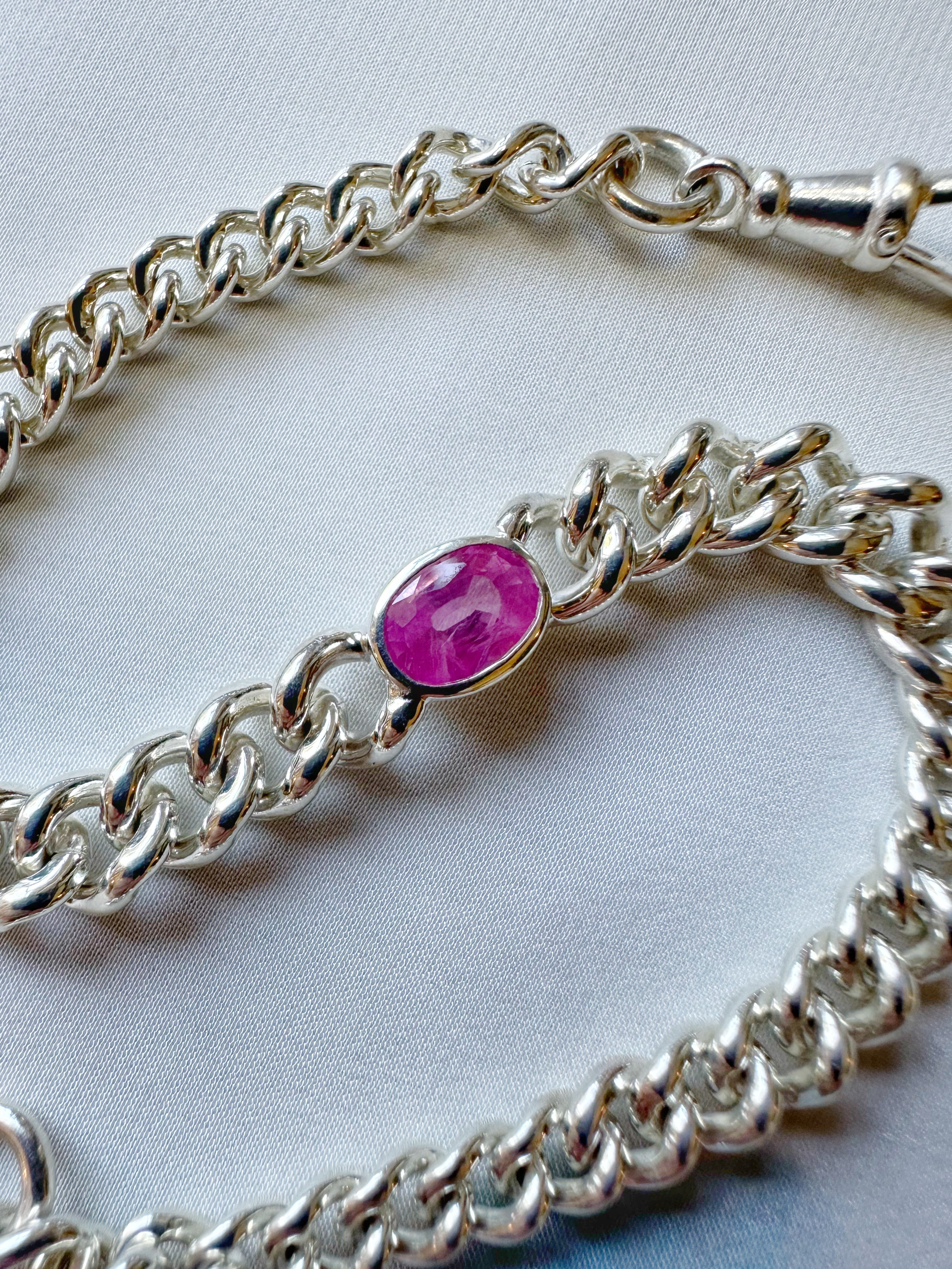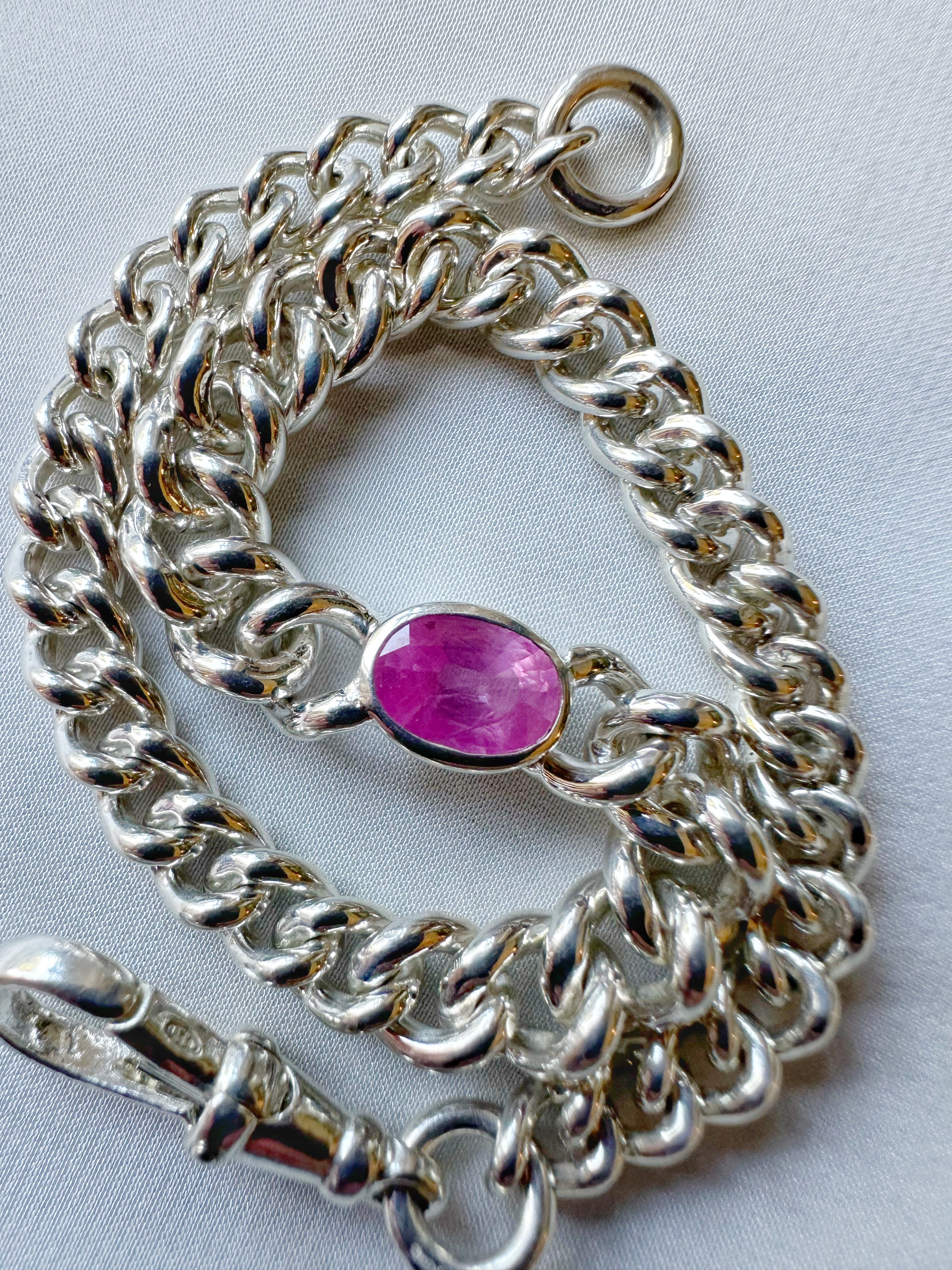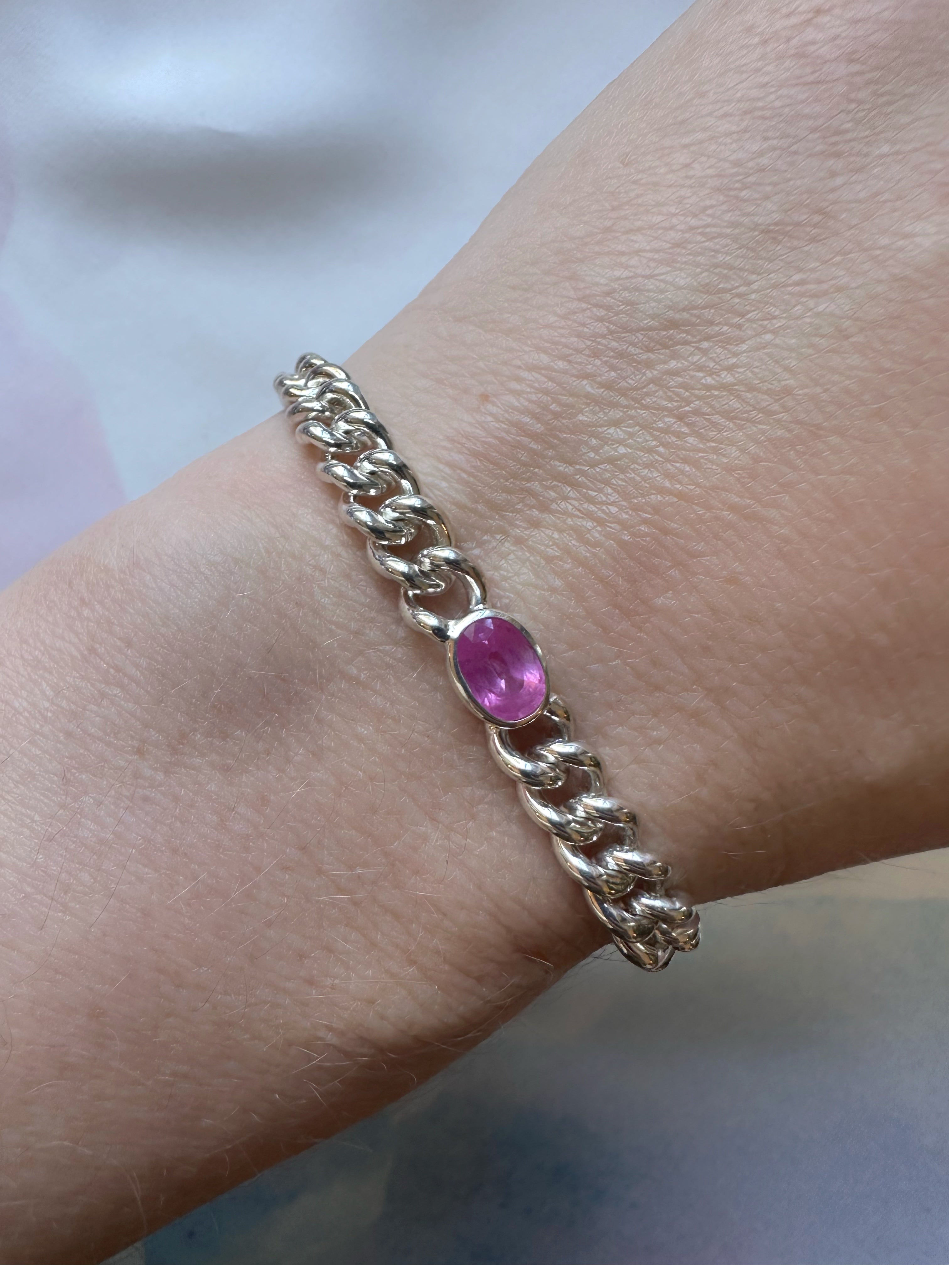 Hot Pink Sapphire // Silver Curb Bracelet - 1.25ct
