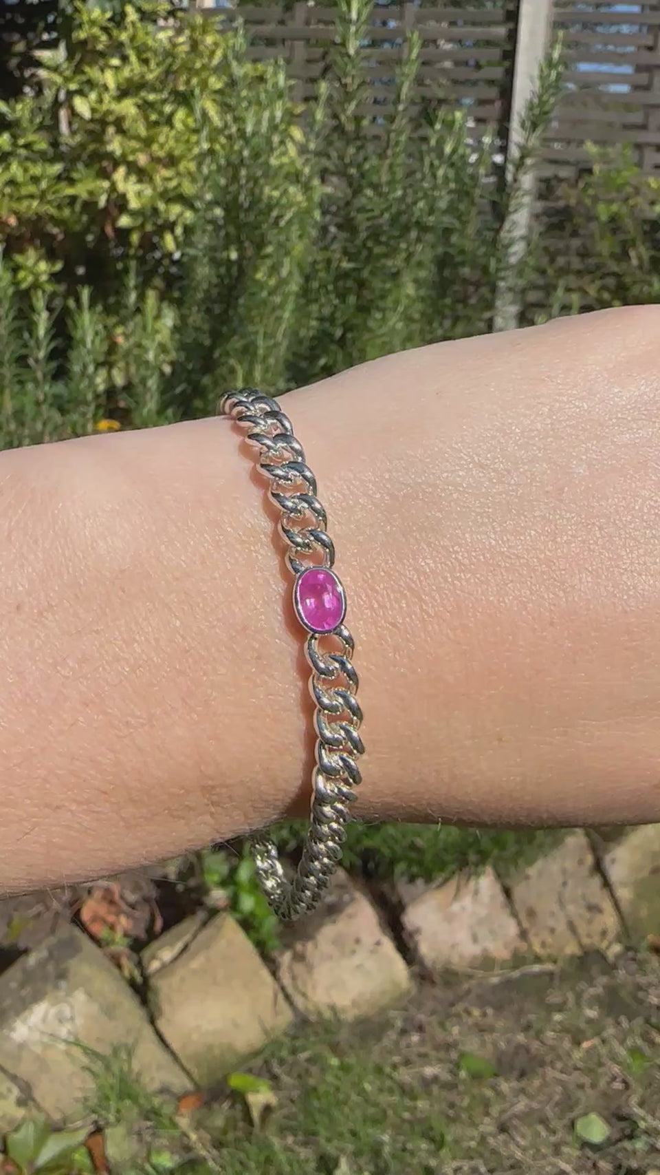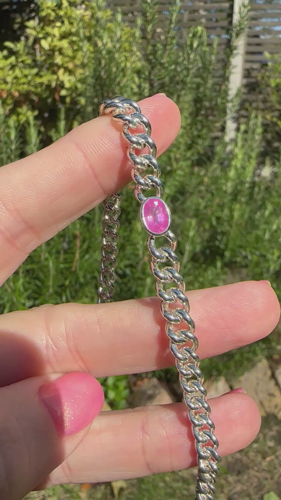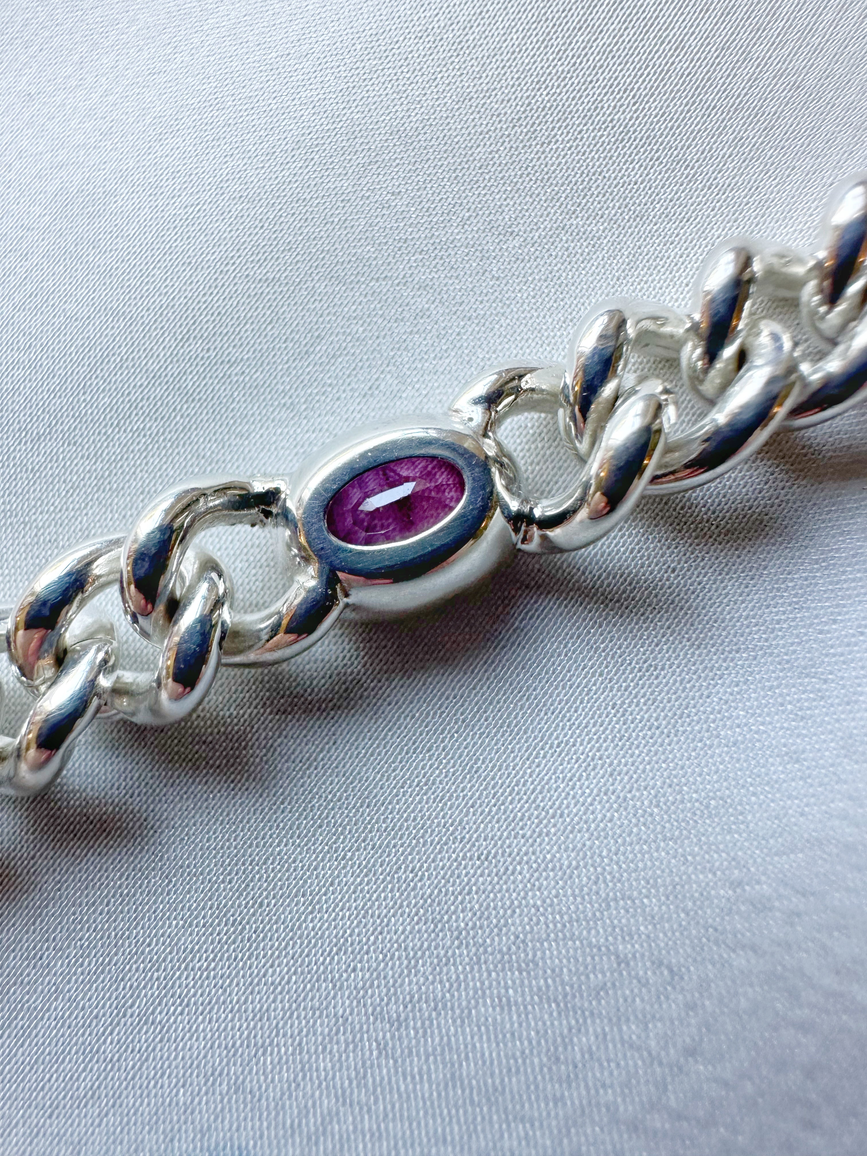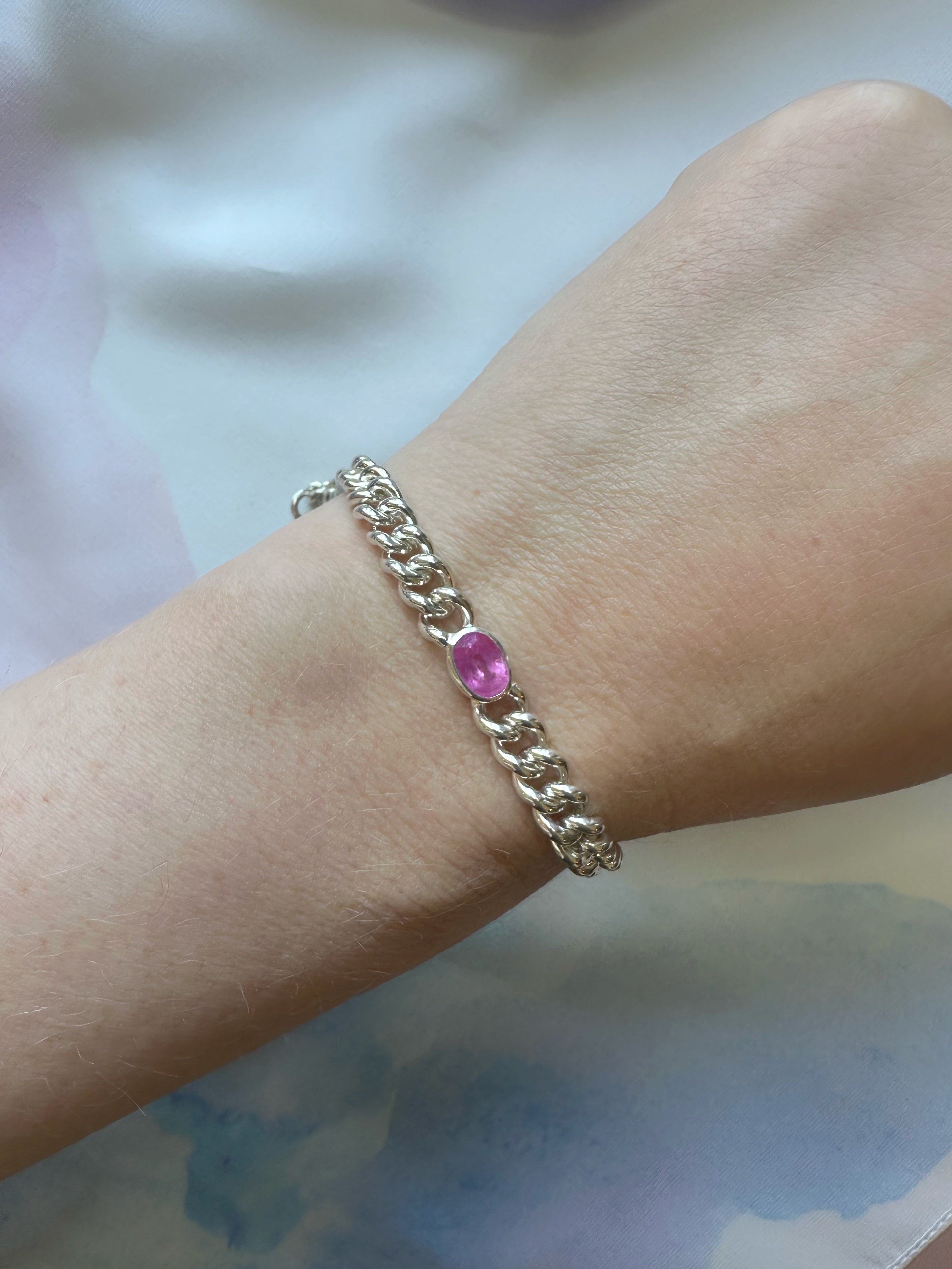 Hot Pink Sapphire // Silver Curb Bracelet - 1.25ct