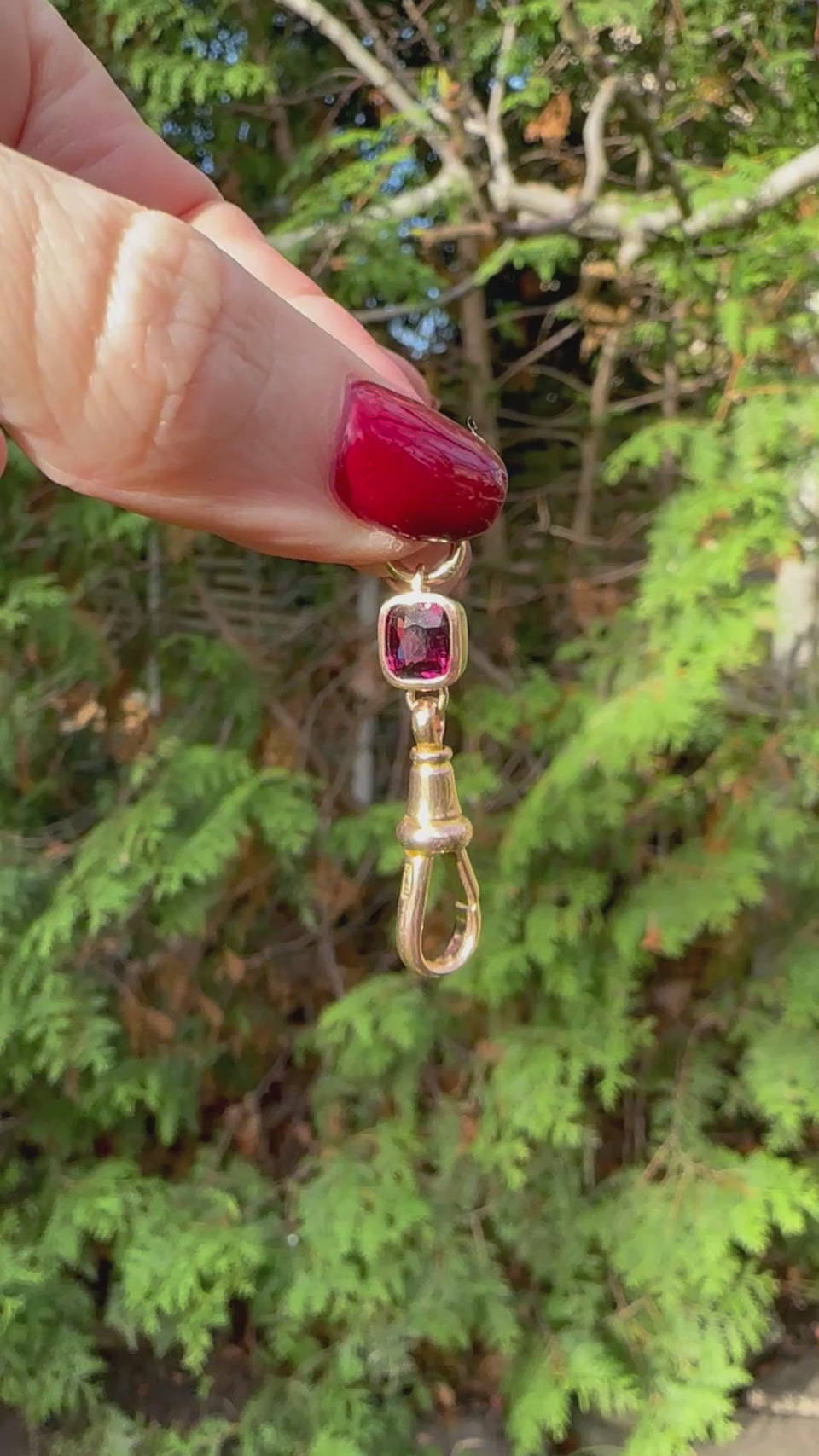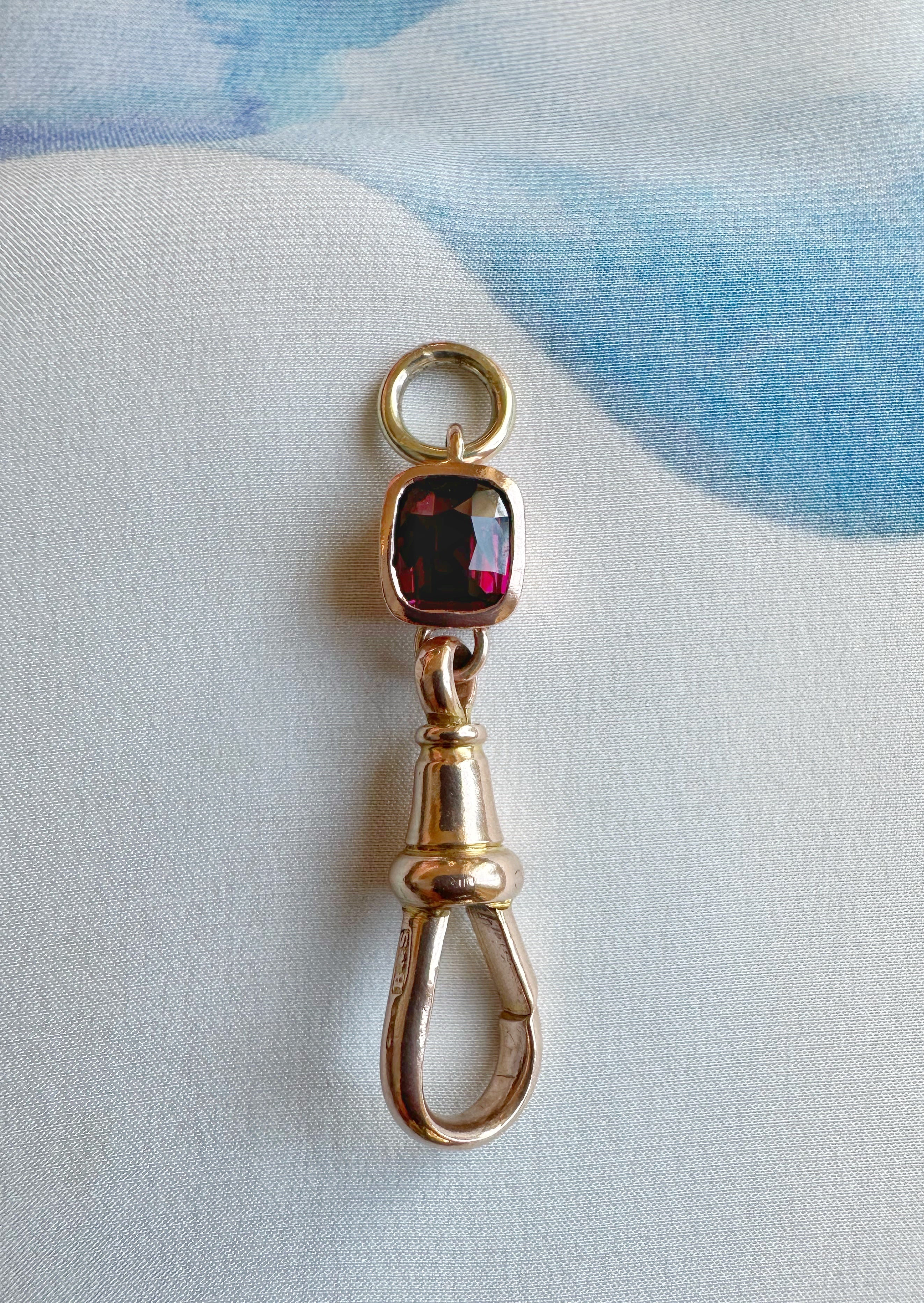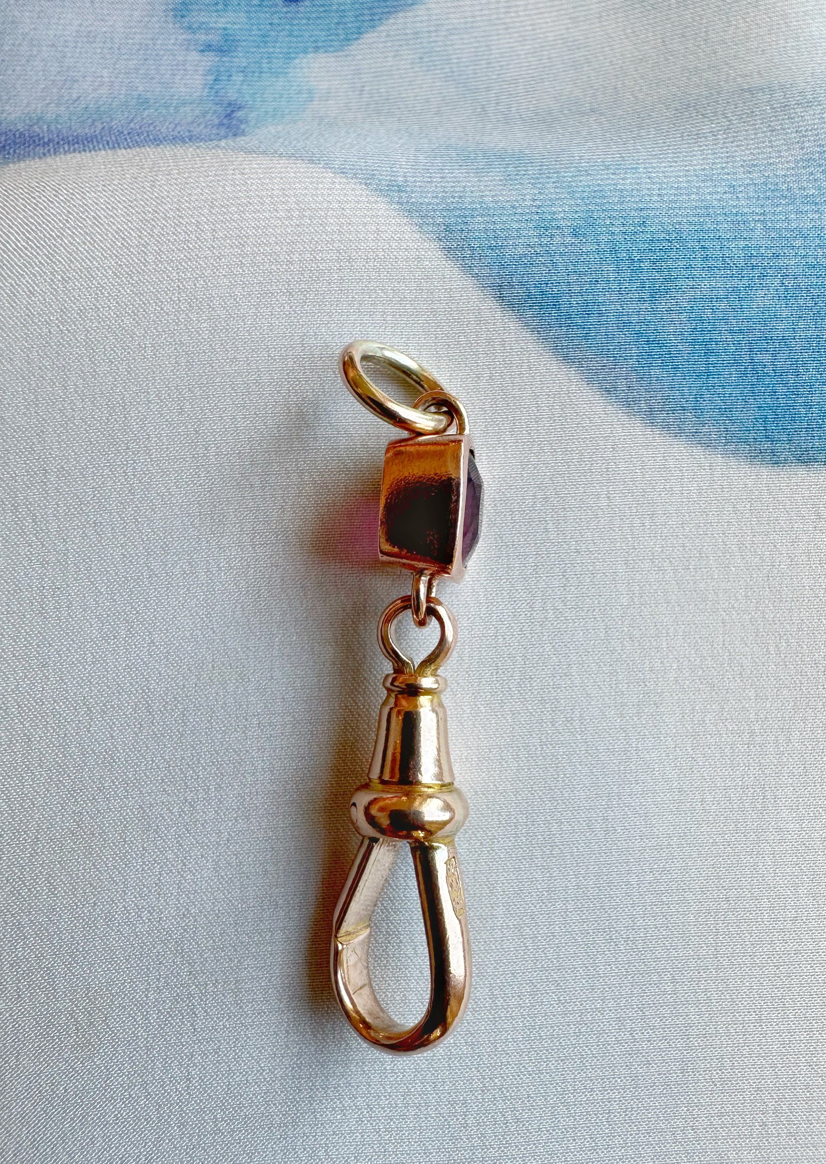 We have added a 1.72ct cushion cut purple garnet to this antique dog clasp to turn up the heat a bit & add fun in your daily jewellery rotation.