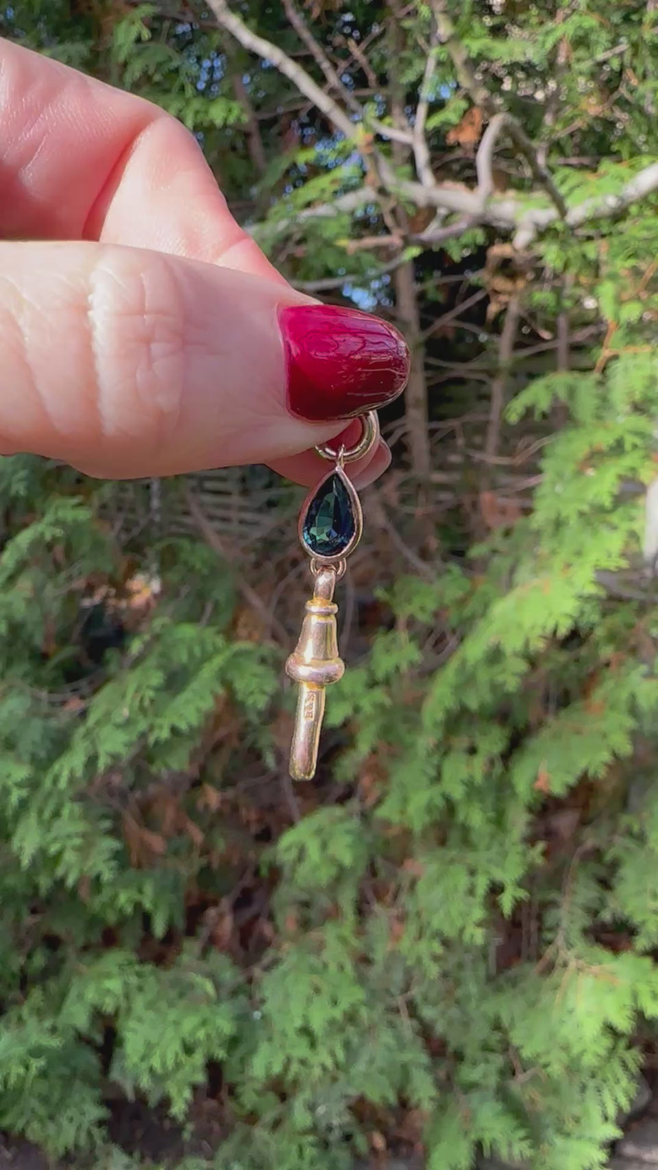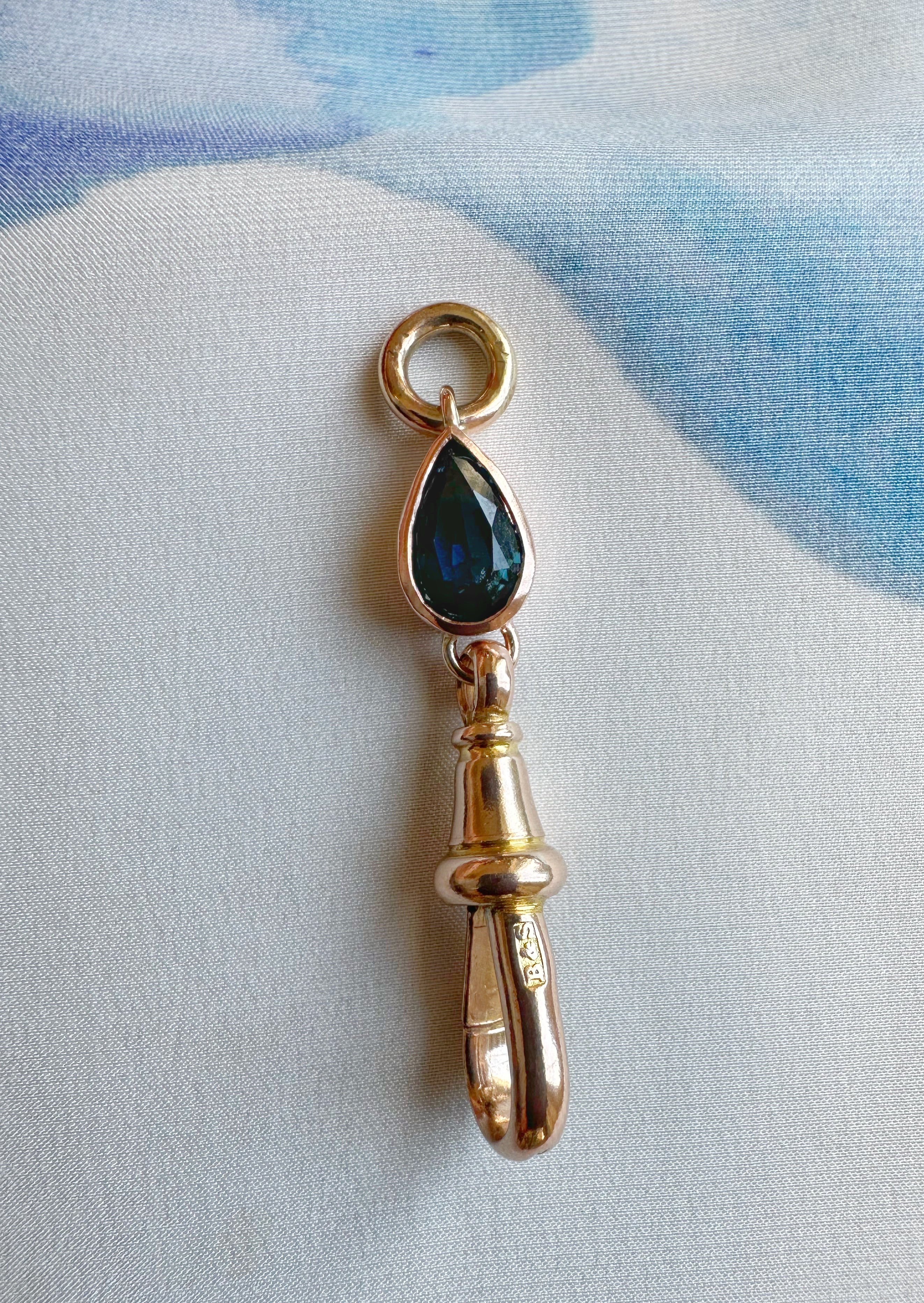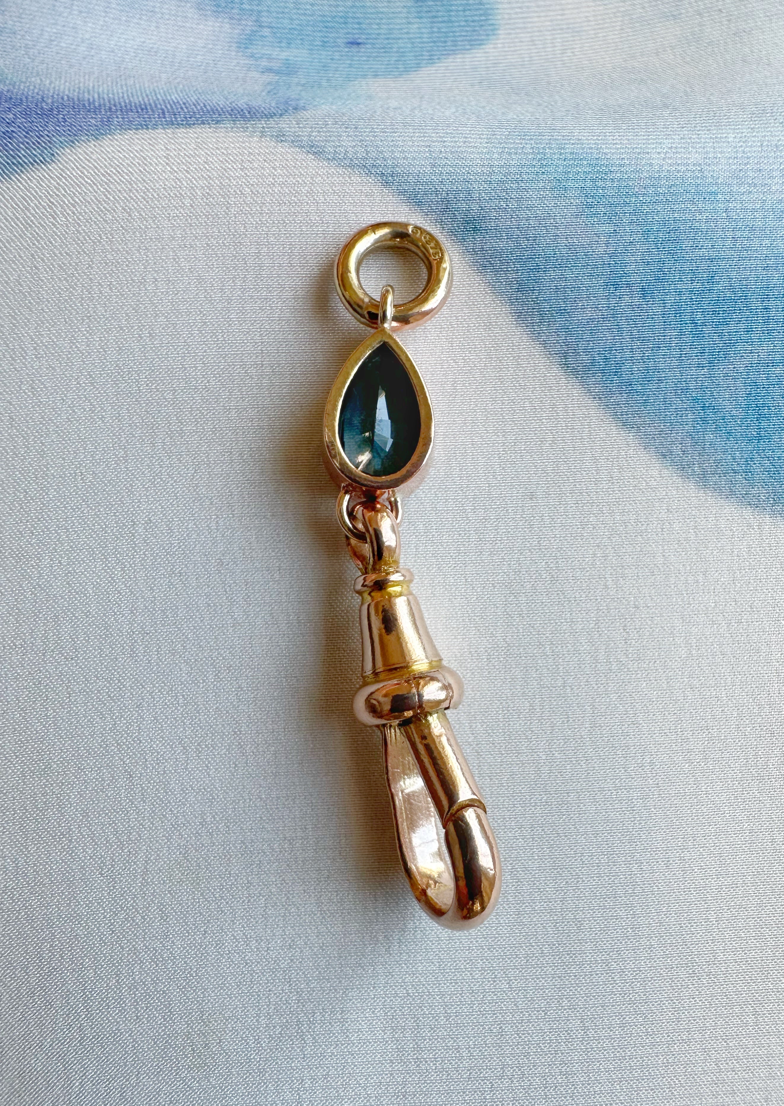 Antique Dog Clasp | Pear Teal Blue Sapphire | 9ct