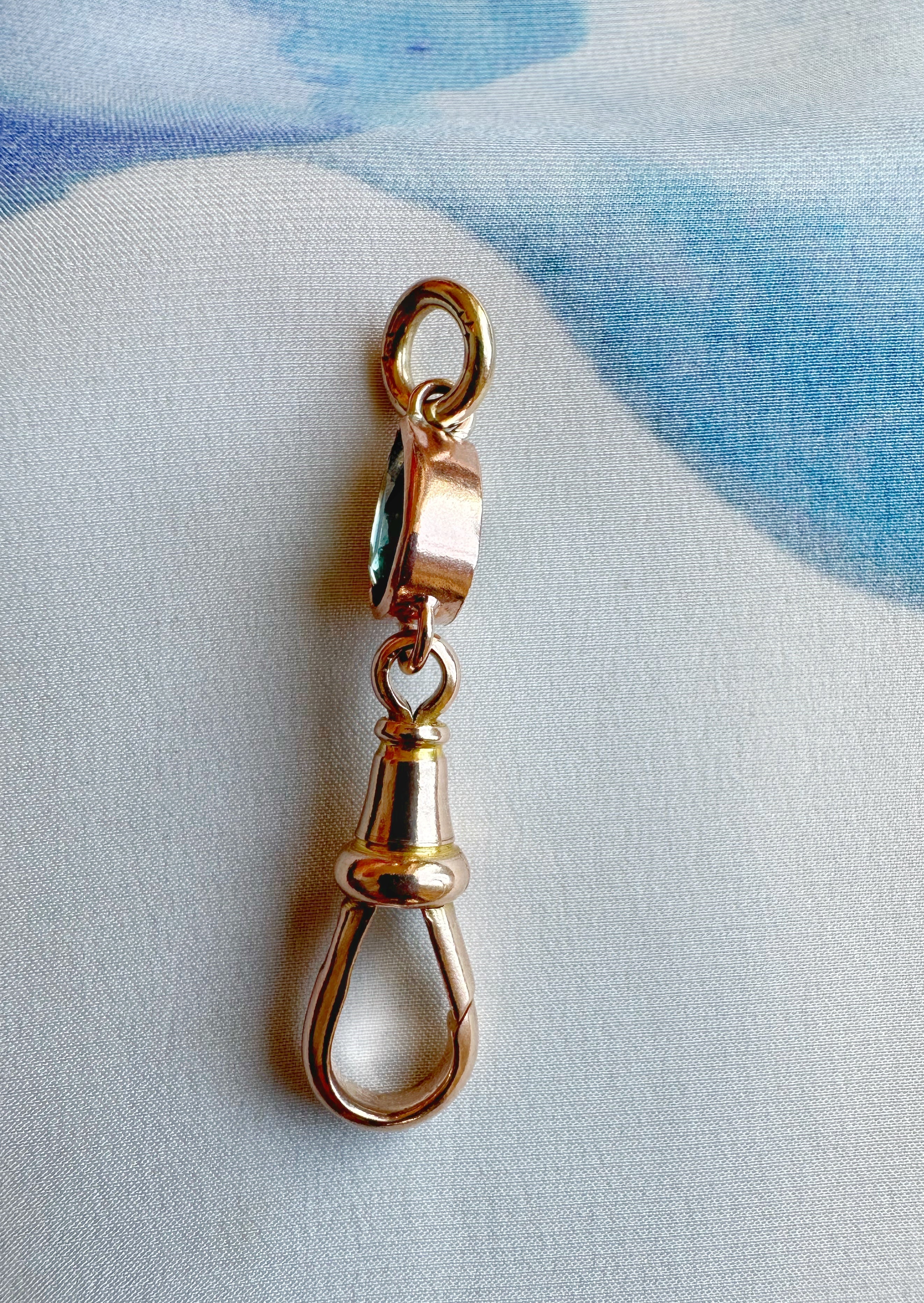 We have added a 1.7ct pear cut teal blue sapphire to this antique dog clasp to turn up the heat a bit & add fun in your daily jewellery rotation.