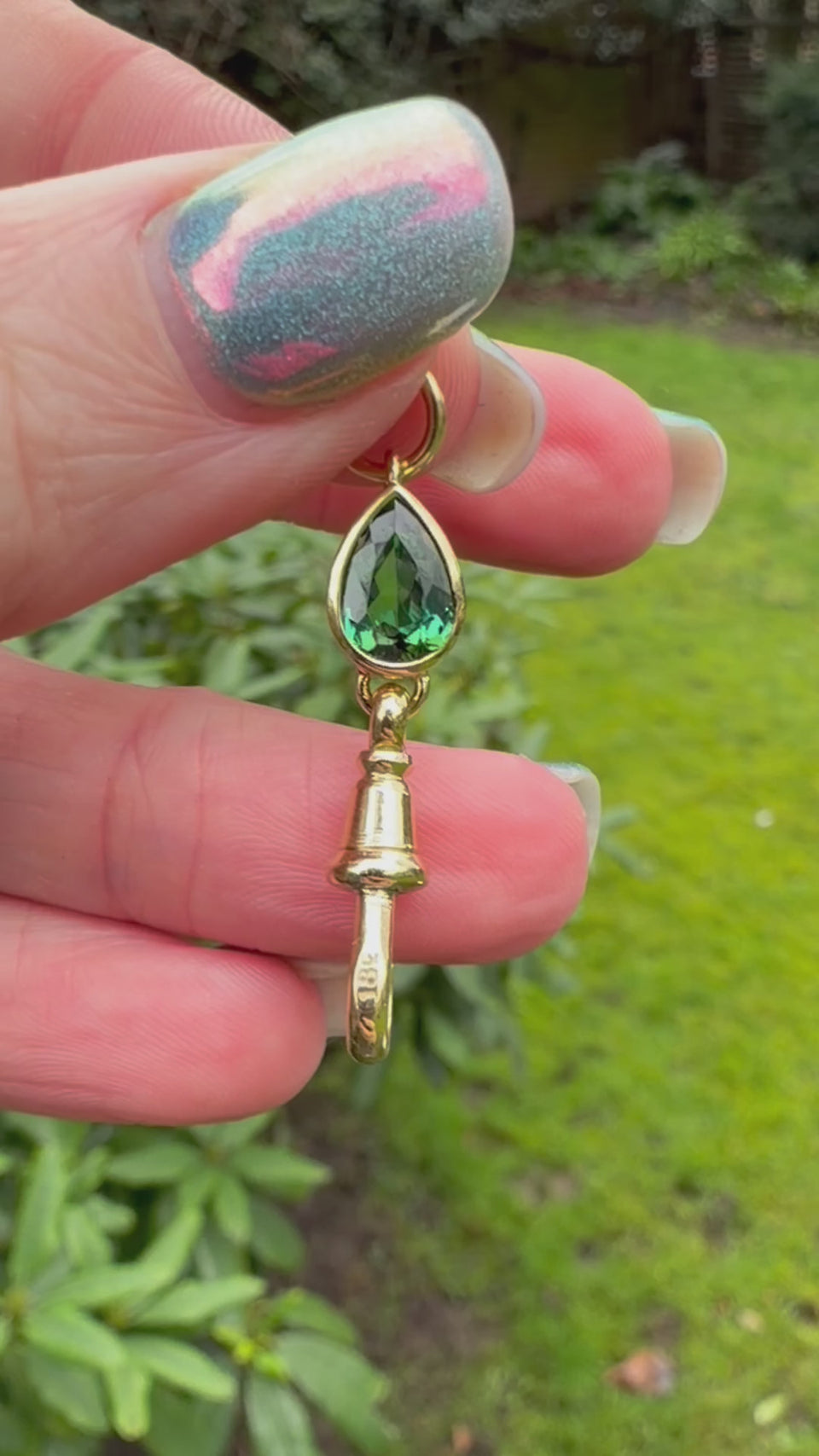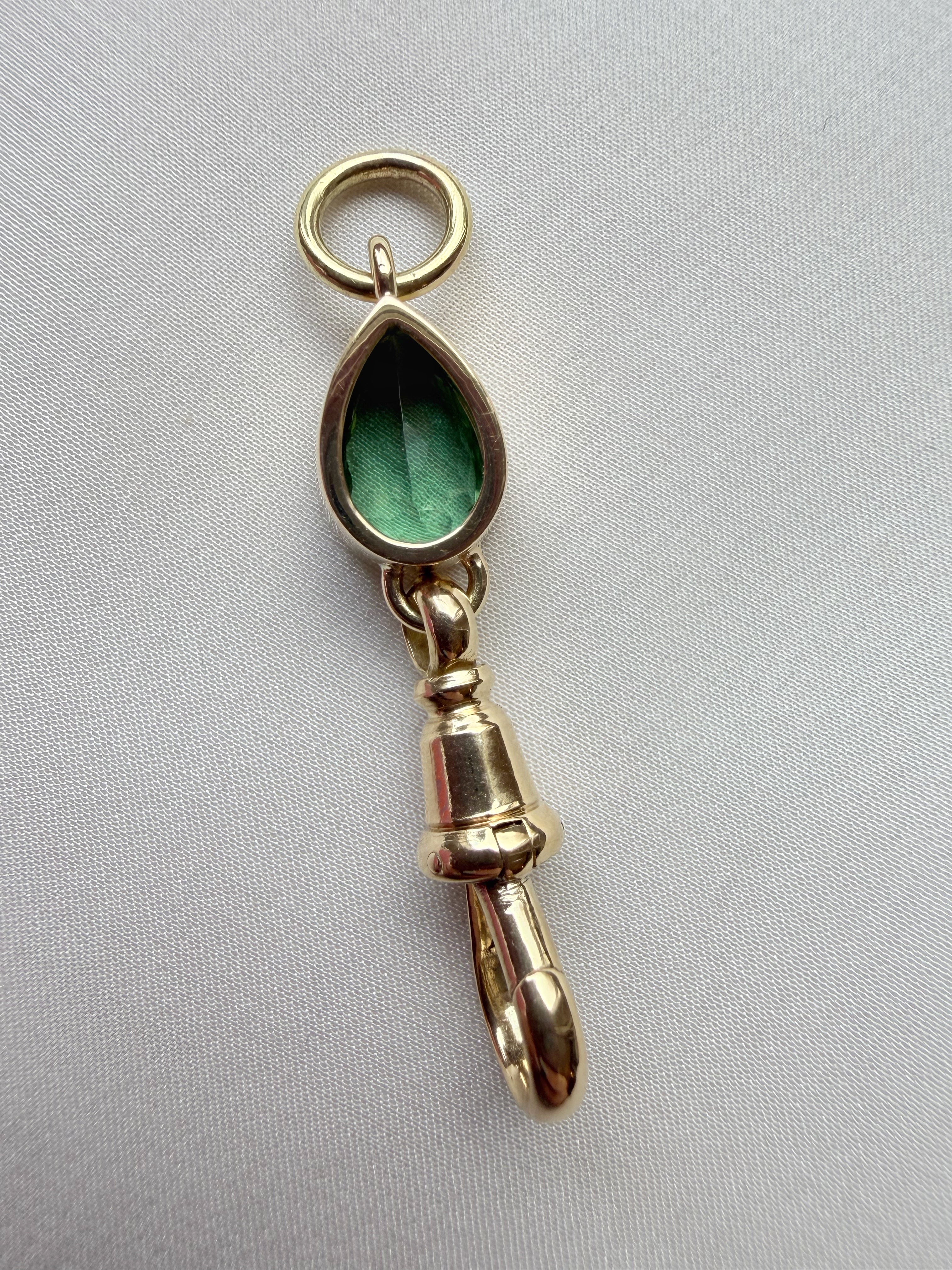 Antique Dog Clasp | Teal Pear Tourmaline | 18ct Yellow Gold
