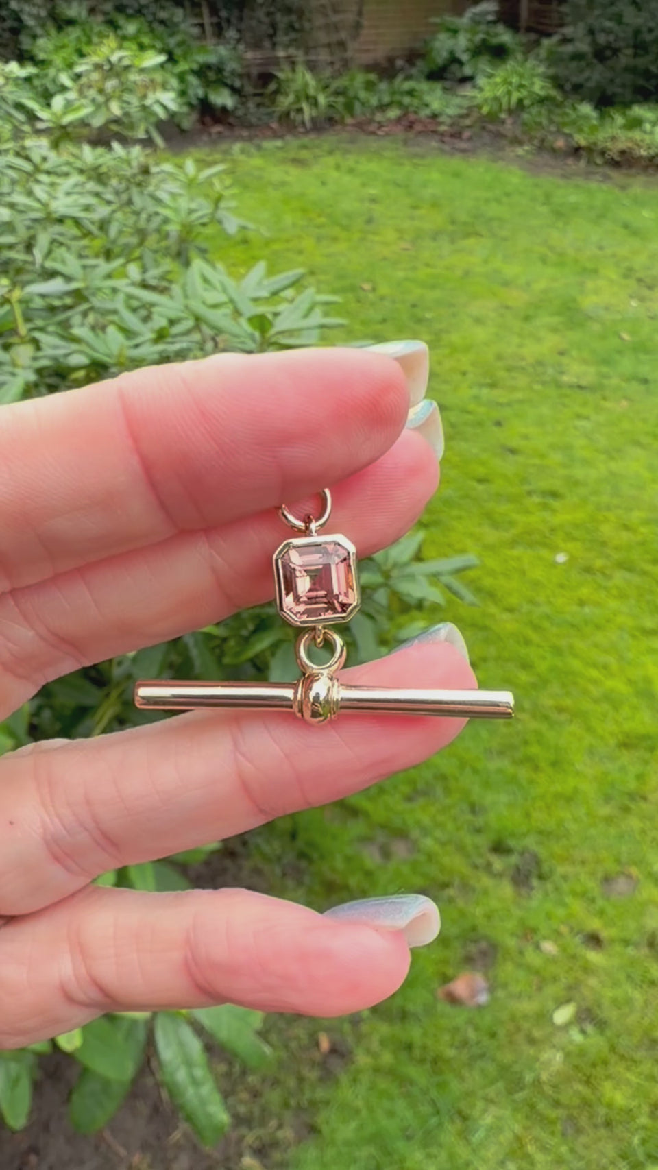 Antique Swivel T-Bar | Octagon Peach Tourmaline | 9ct Yellow Gold
