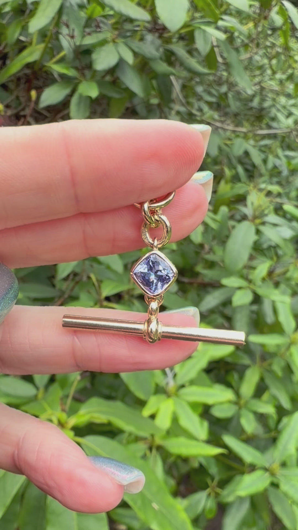 We have added a 1.88ct cushion cut tanzanite to this antique t-bar to turn up the heat a bit & add fun in your daily jewellery rotation. The t-bar is a yellow leaning peachy gold and the setting is rose gold - a chameleon piece which makes the tanzanite really pop!