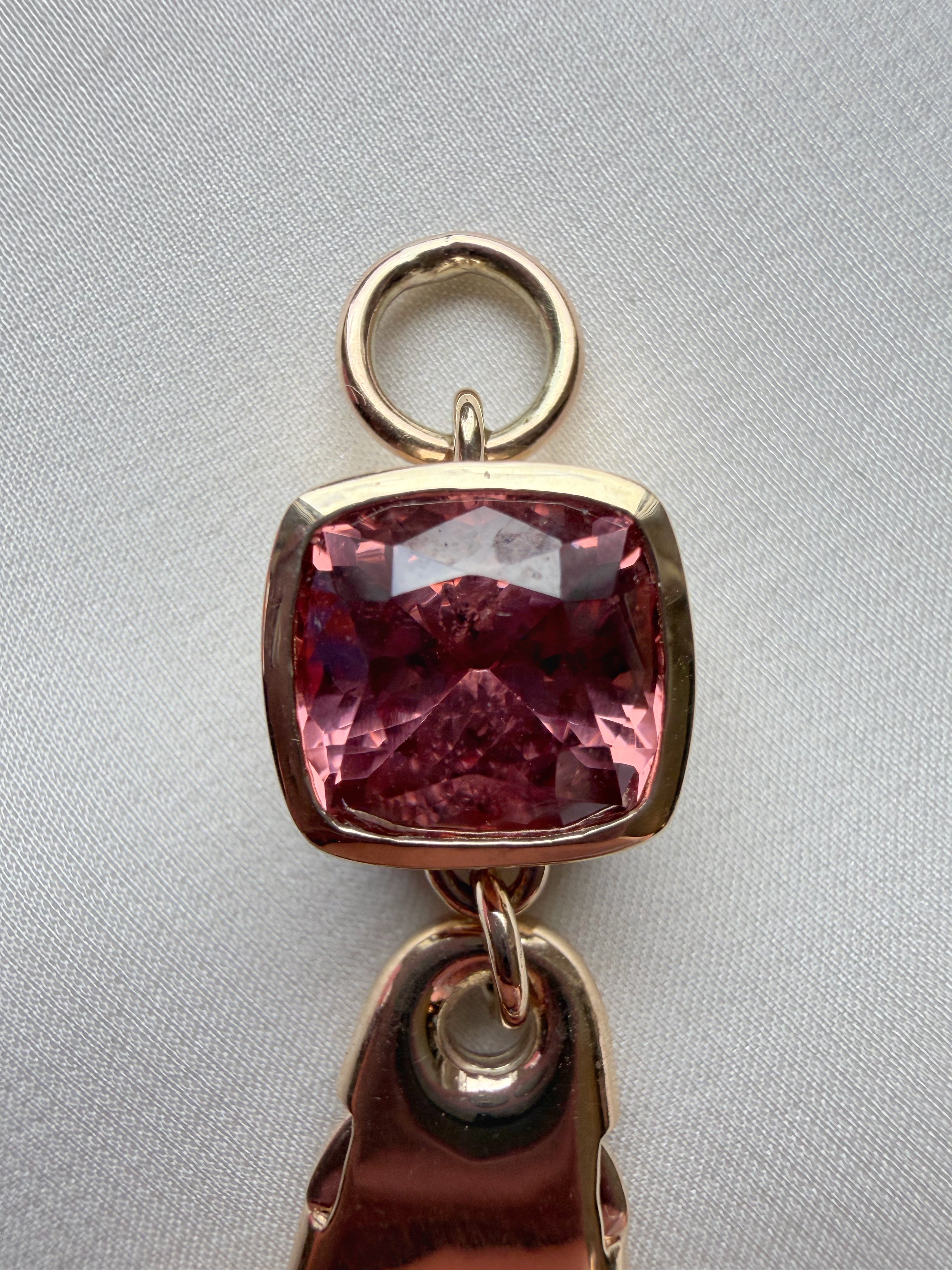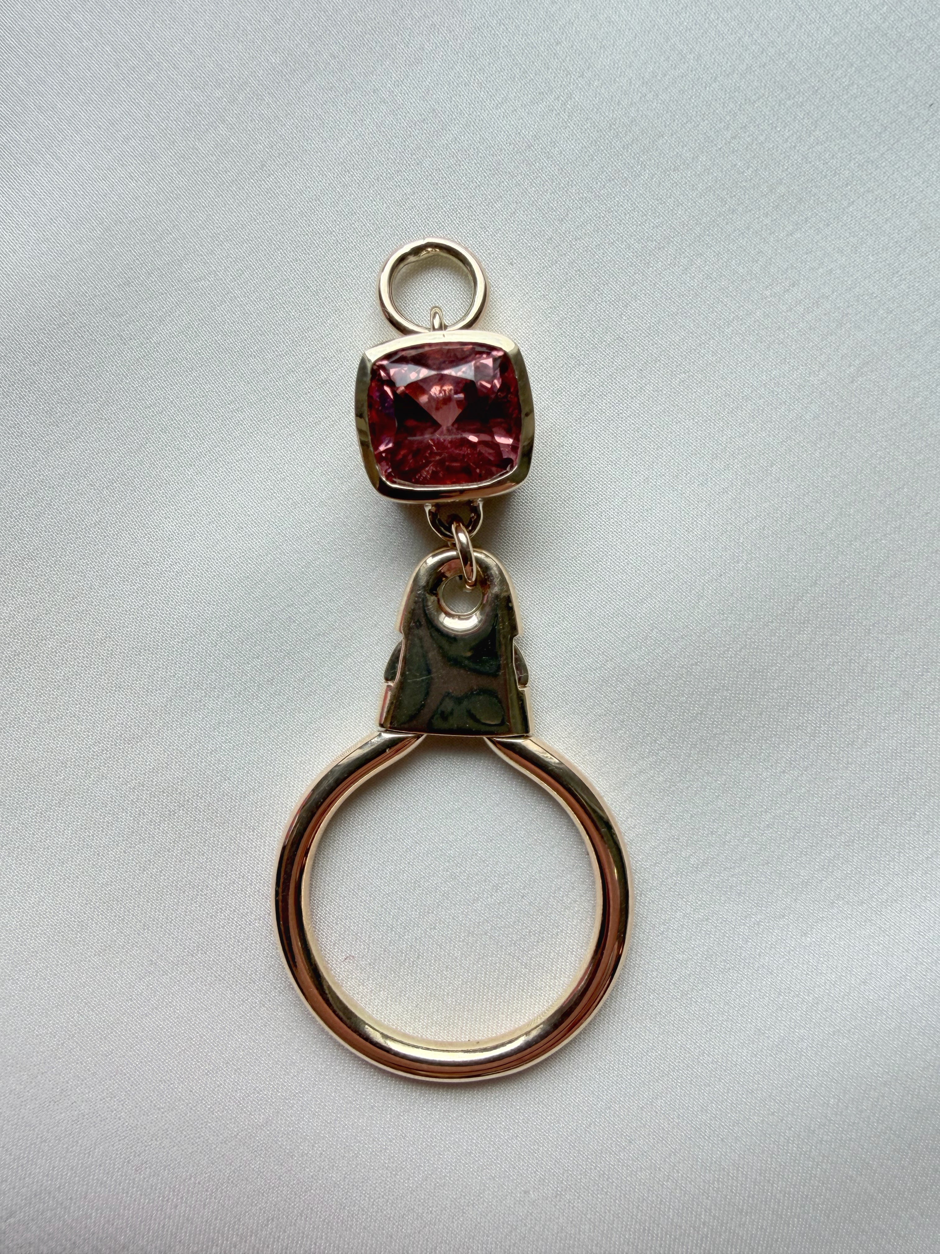 We have added a 4.2ct berry pink Malaya garnet to this super substantial vintage charm holder to turn up the heat a bit & add fun in your daily jewellery rotation.