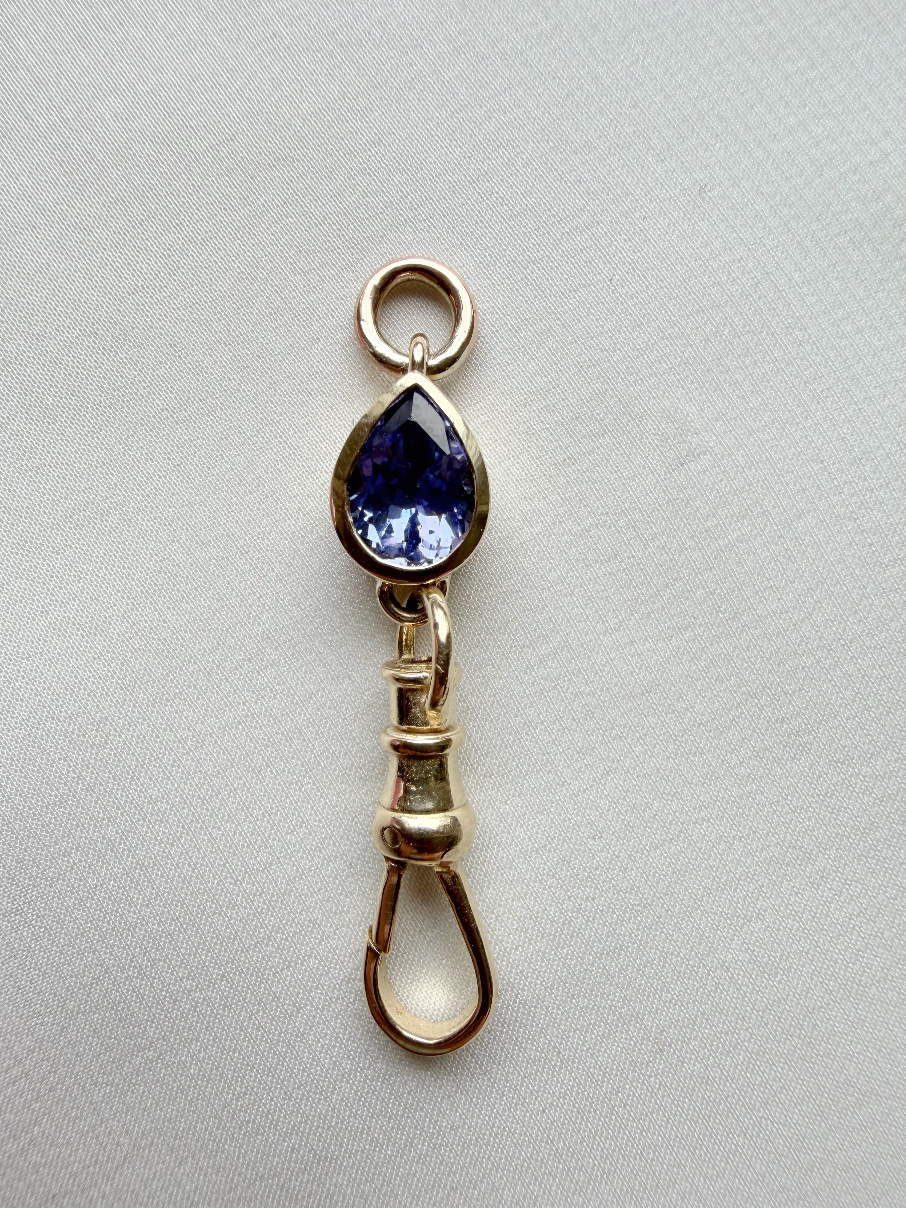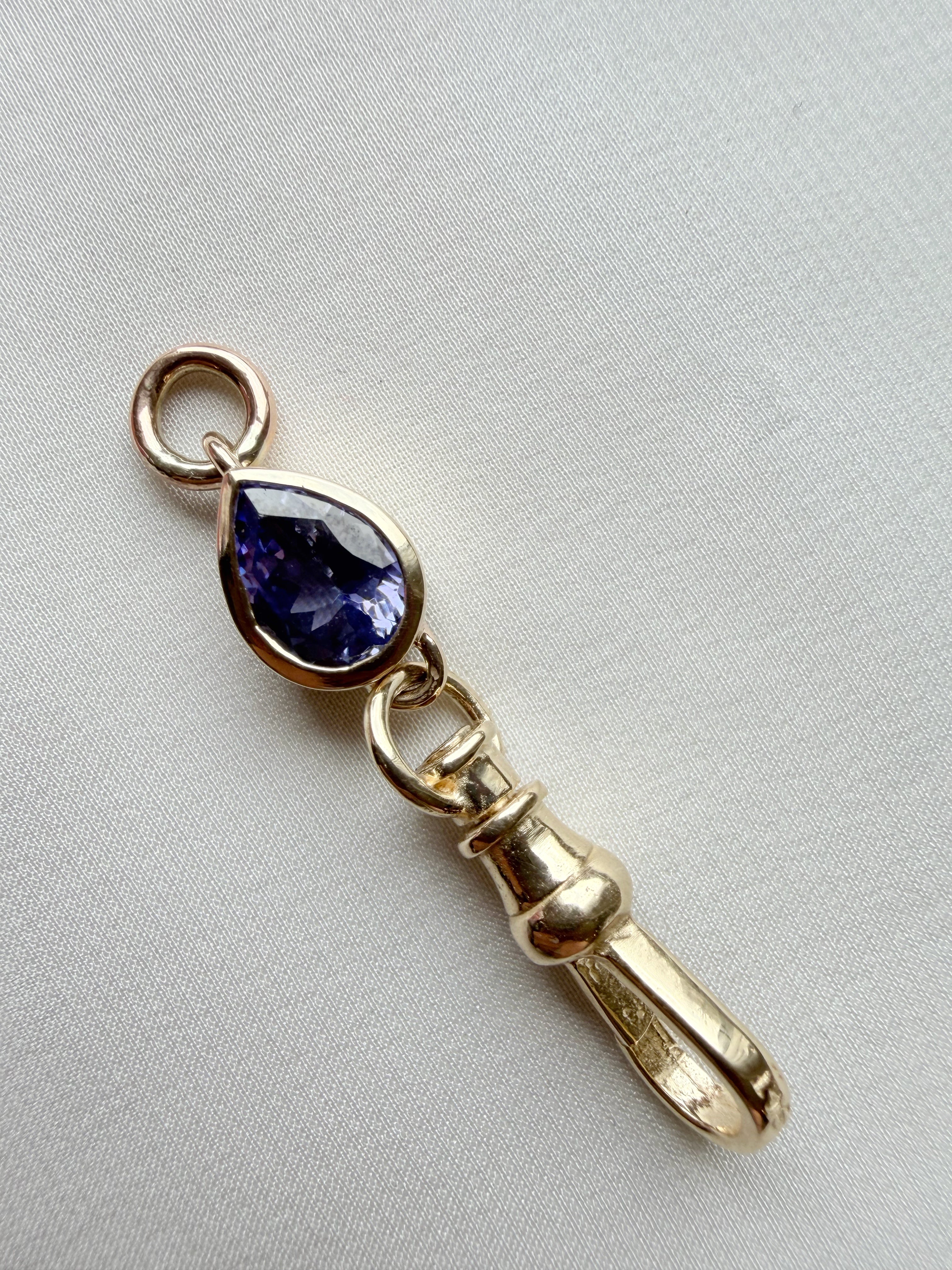 We have added a 1.15ct pear cut tanzanite to this swiveling vintage dog clasp to turn up the heat a bit & add fun in your daily jewellery rotation.