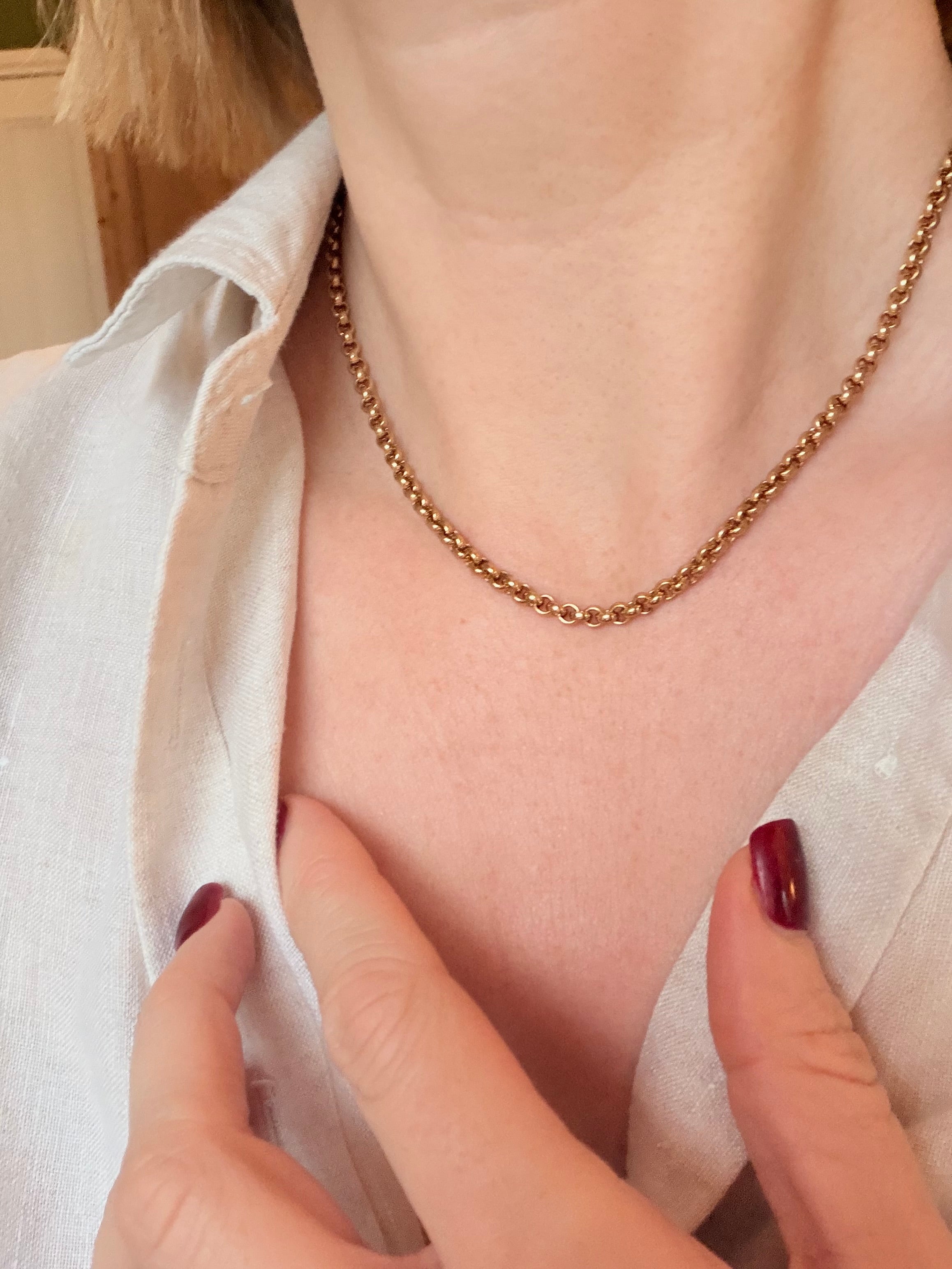 A divine chain, fully solid and heavy, with free rolling 'rolo' links.