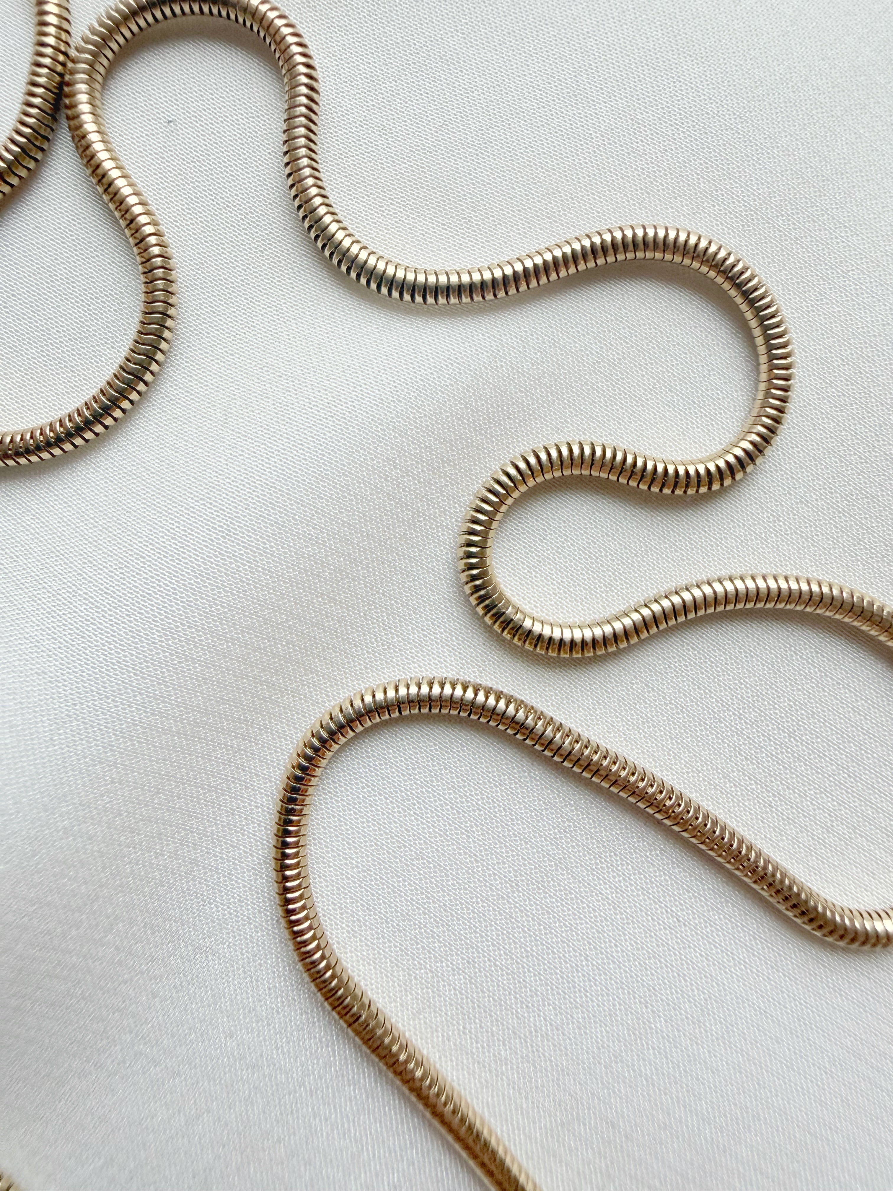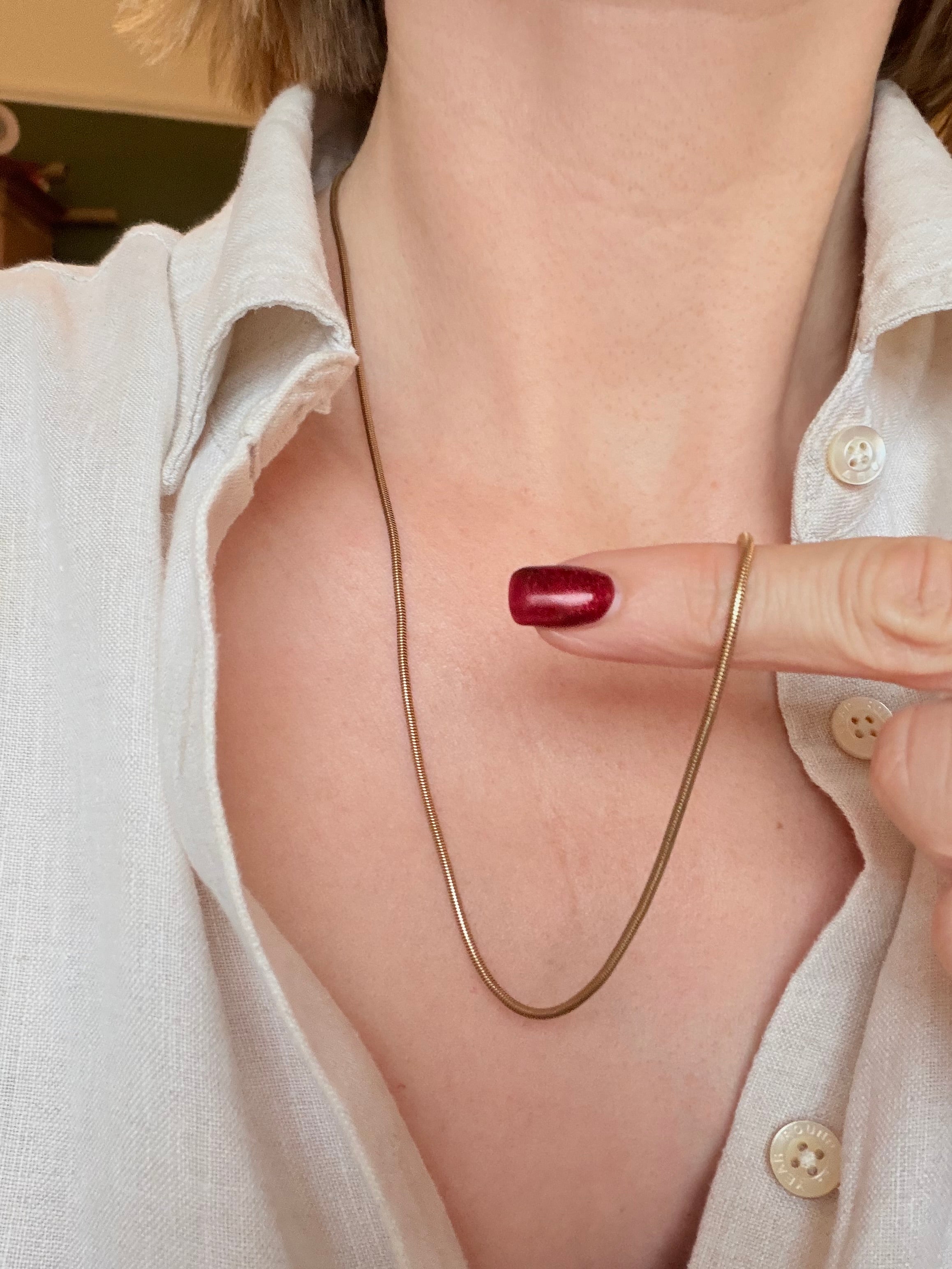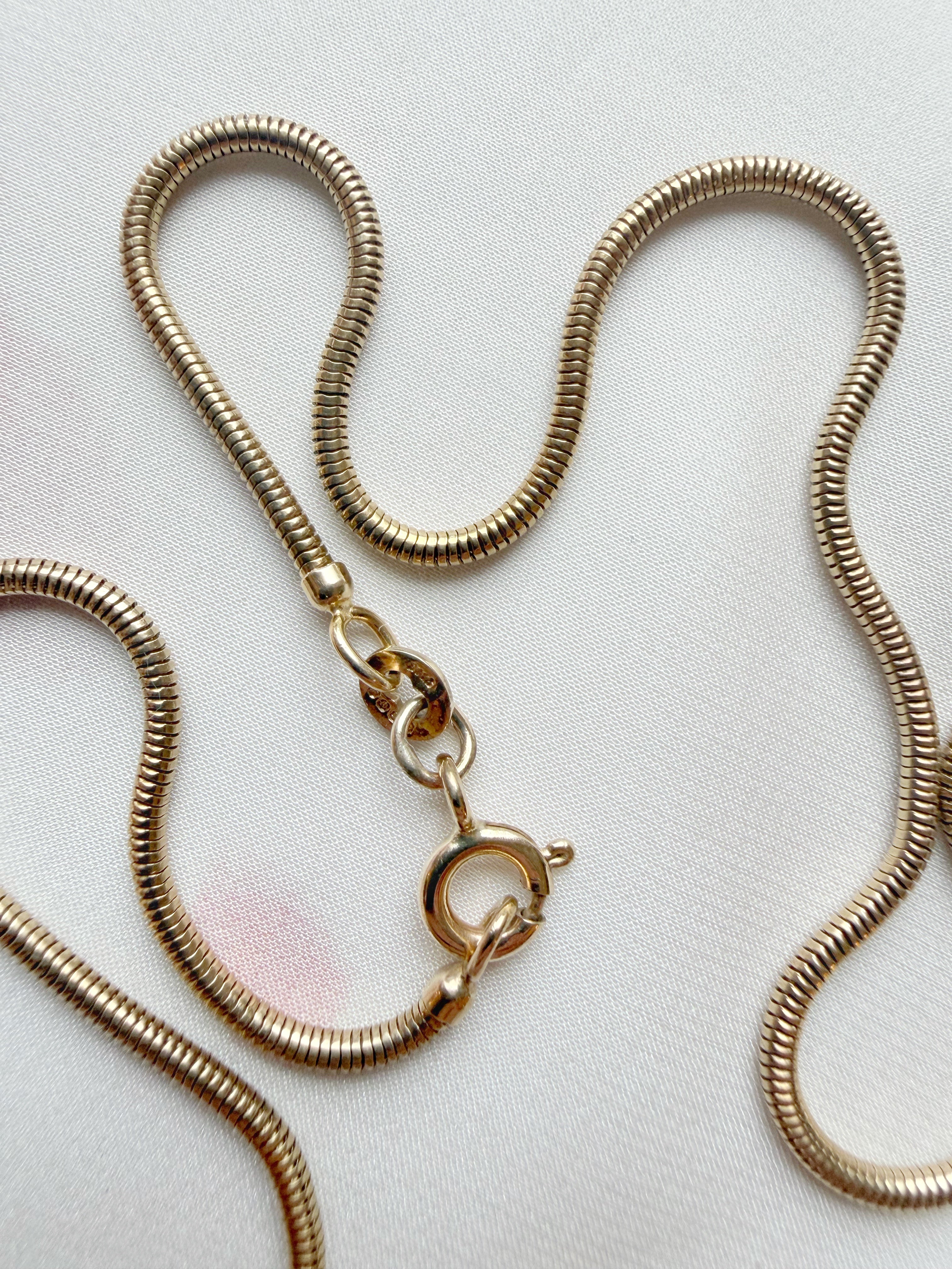 I'd never offer you you a visibly kinked snake chain and this one is lovely and smooth, any minor bumps it's sustained in its 50 year past don't show at all once worn and the piece passes through fingers smoothly.