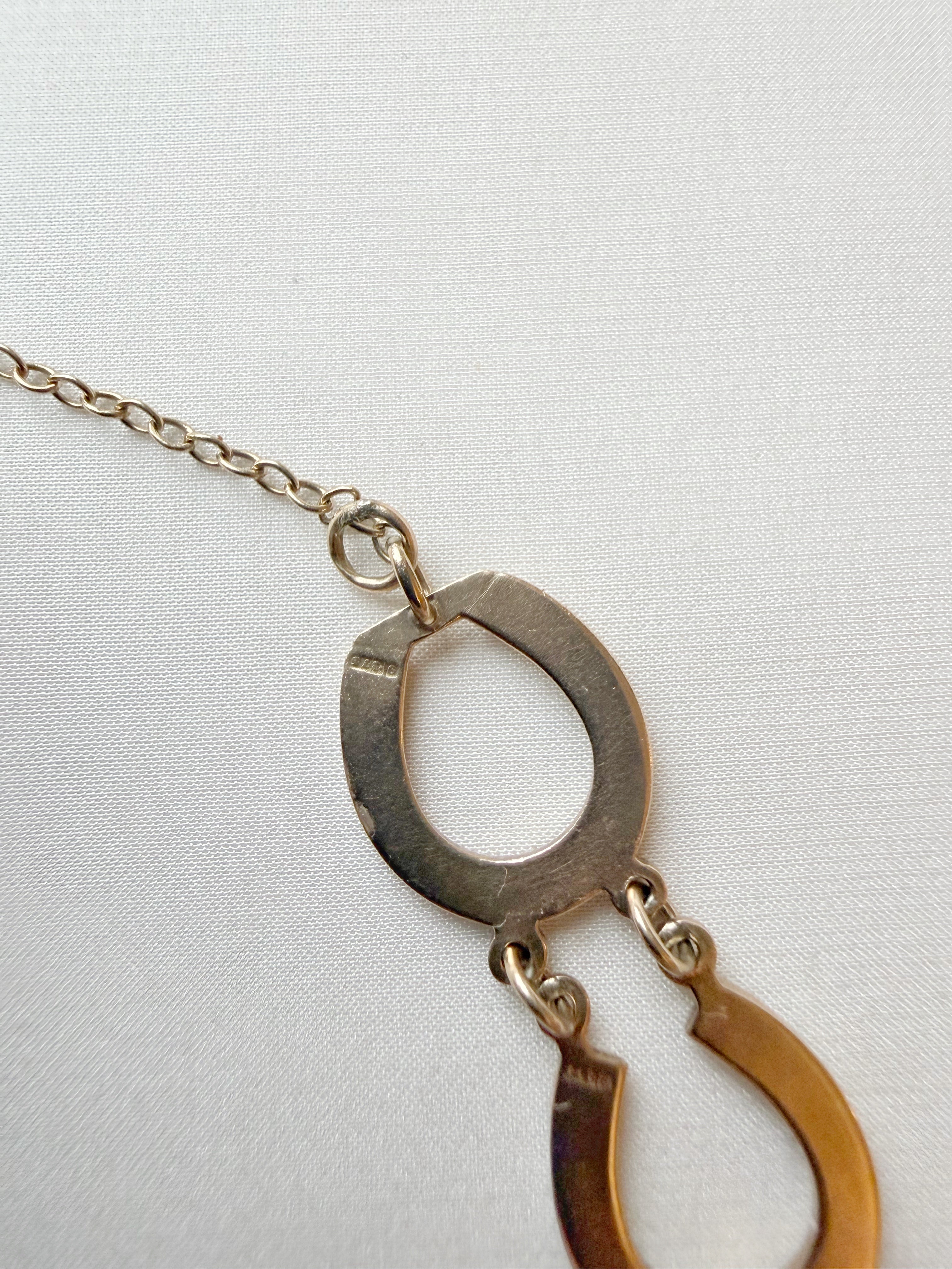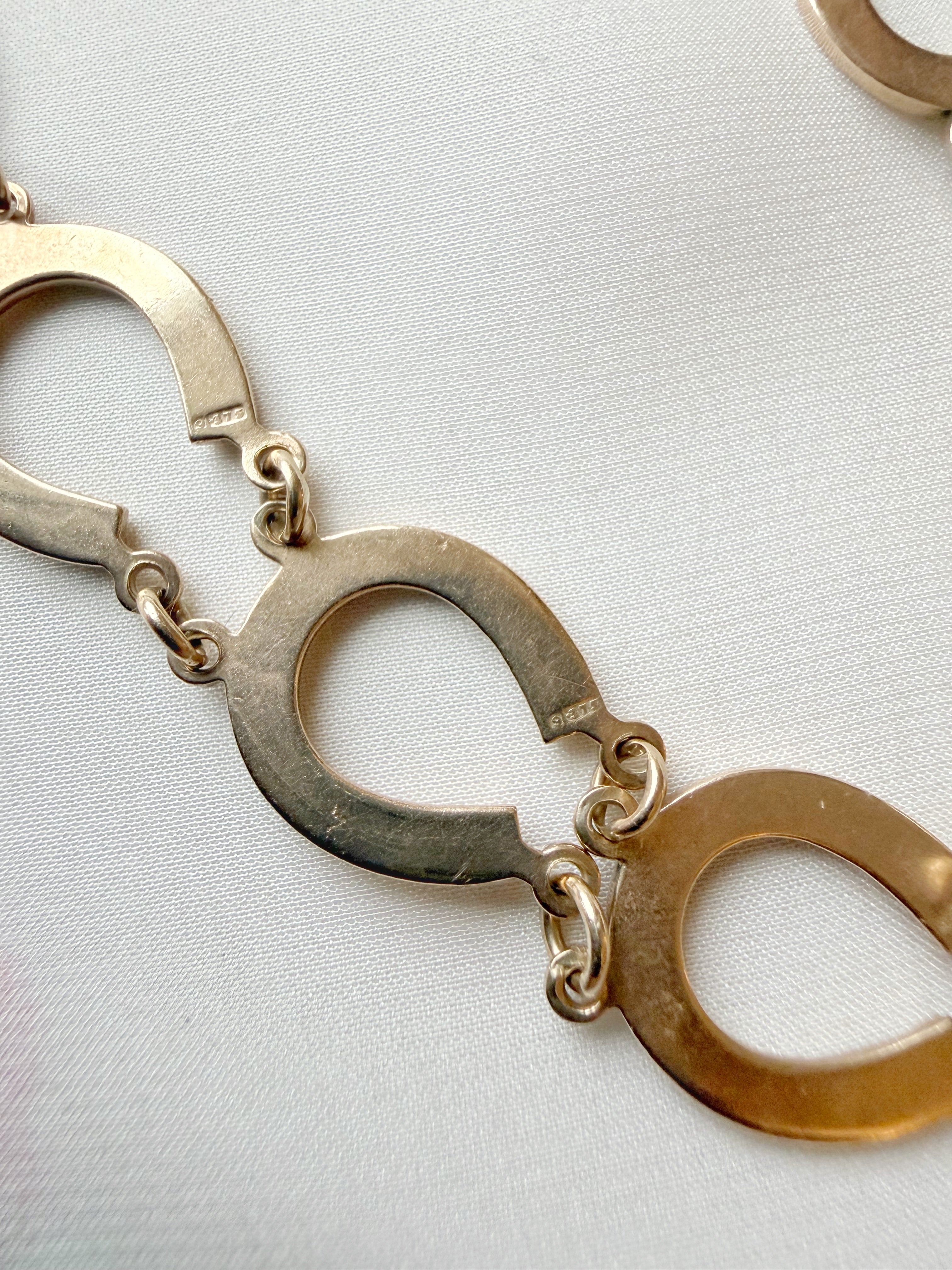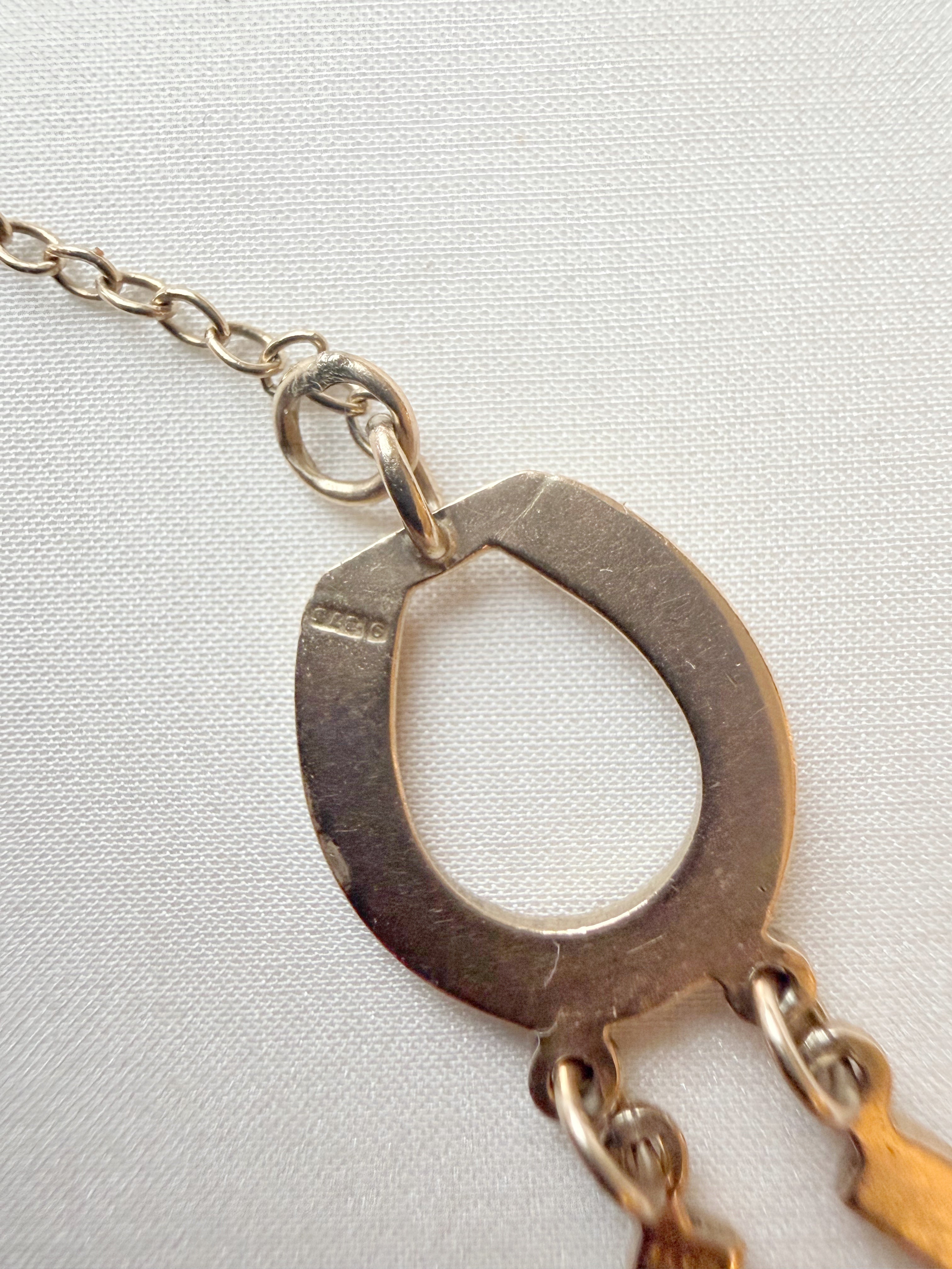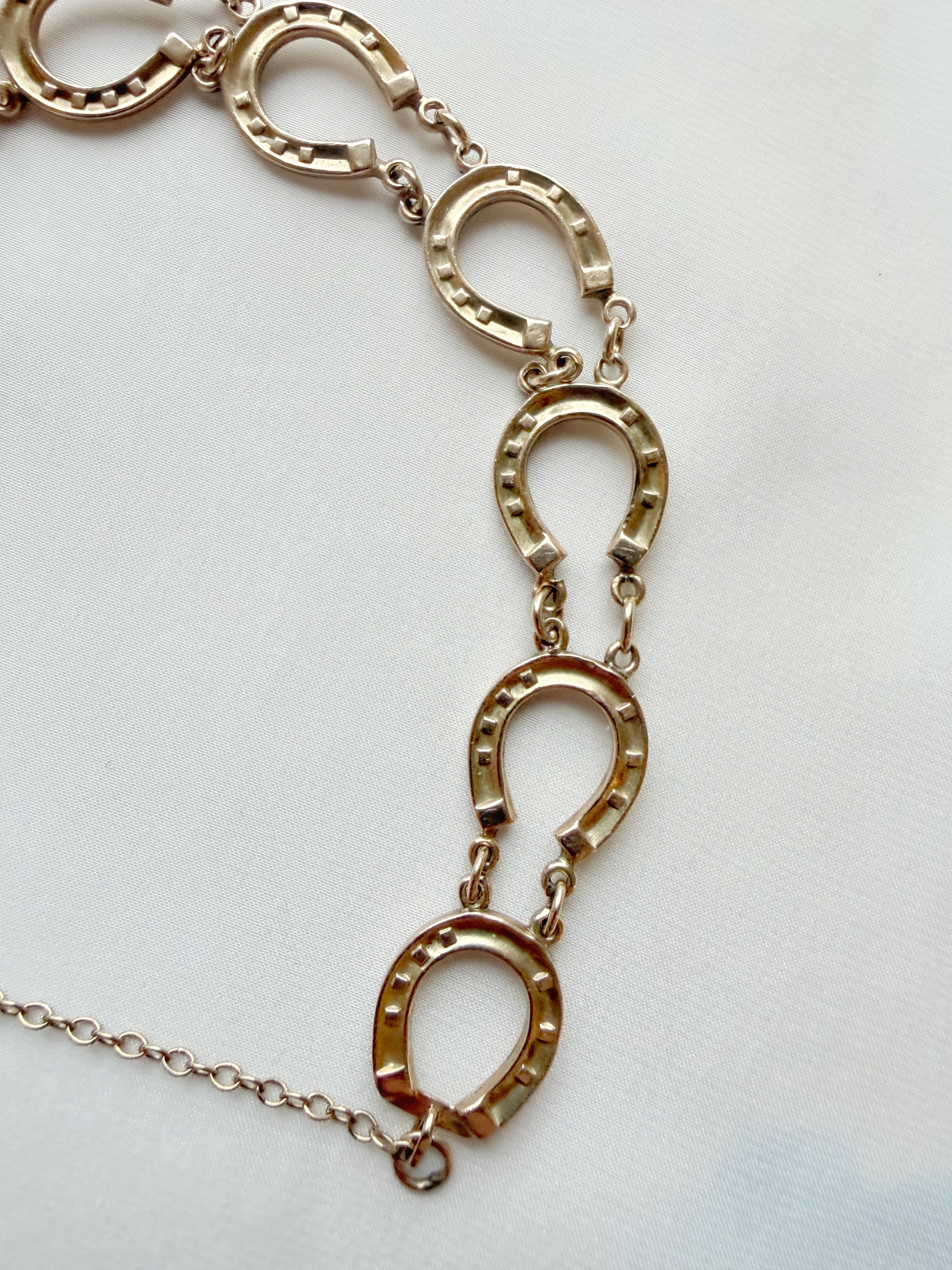 A really lovely piece - with a date mark for 1924 and '9 .375' stamps to the reverse of several of the padlocks, this horseshoe bracelet is a fun and wearable antique piece.