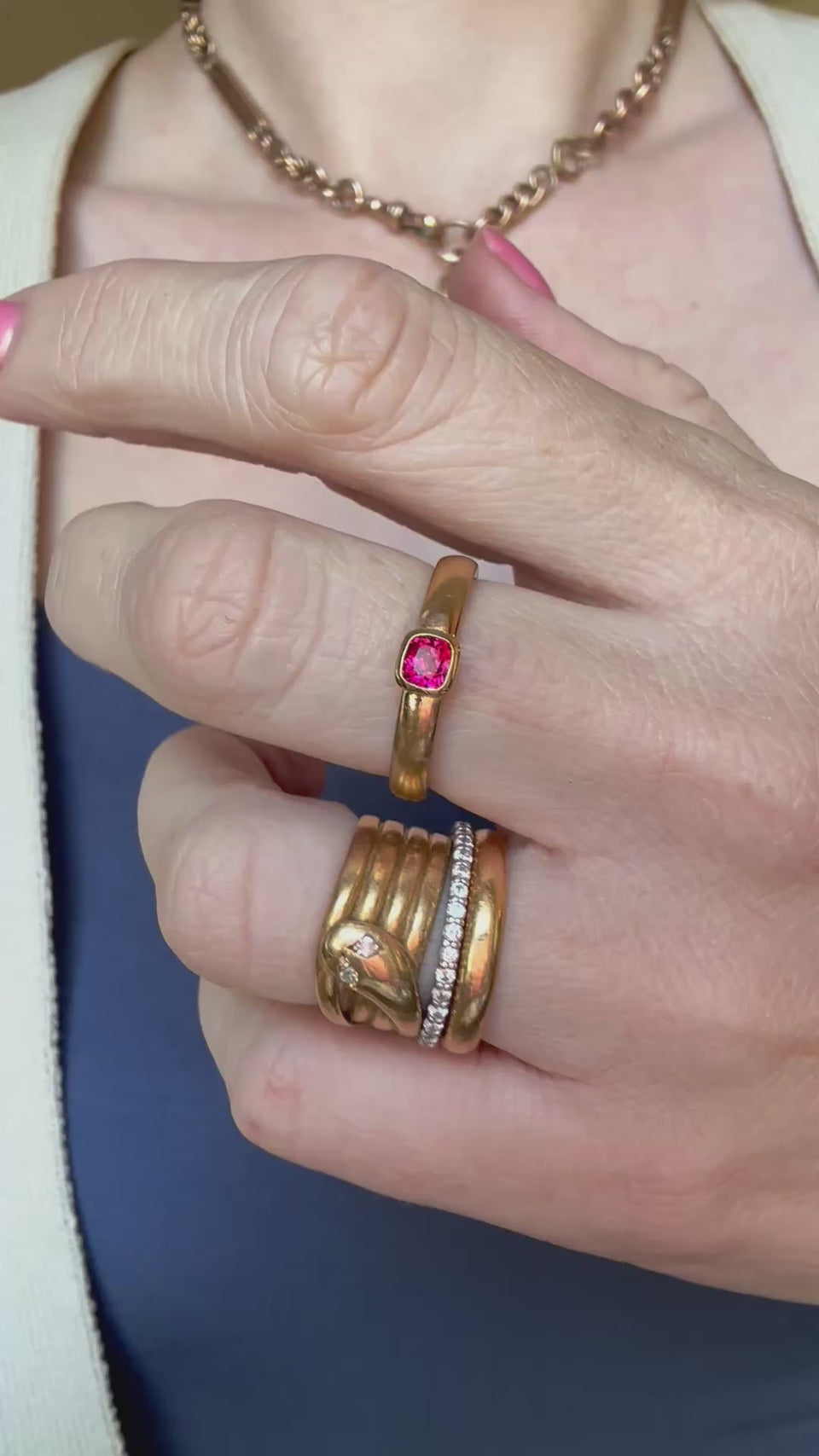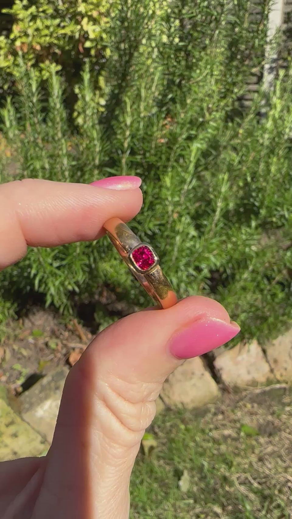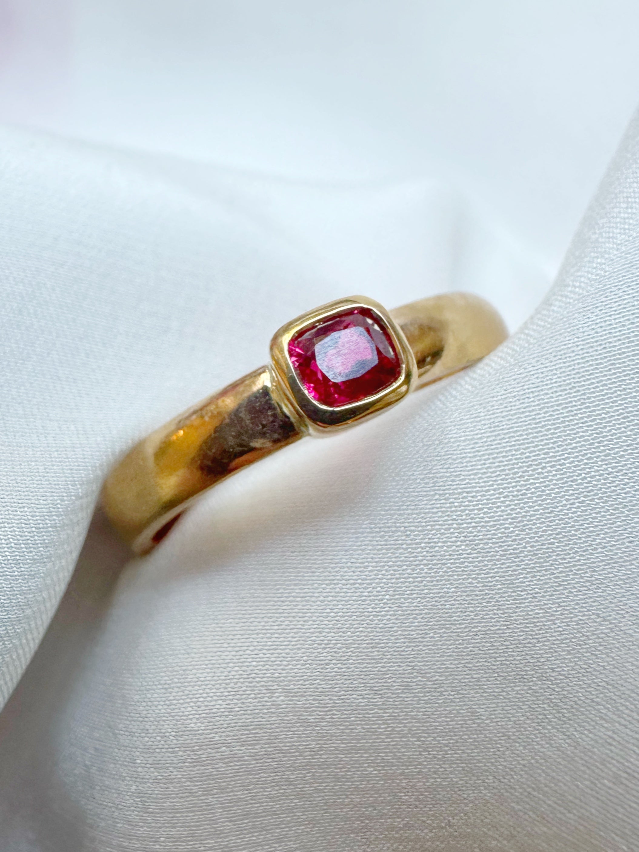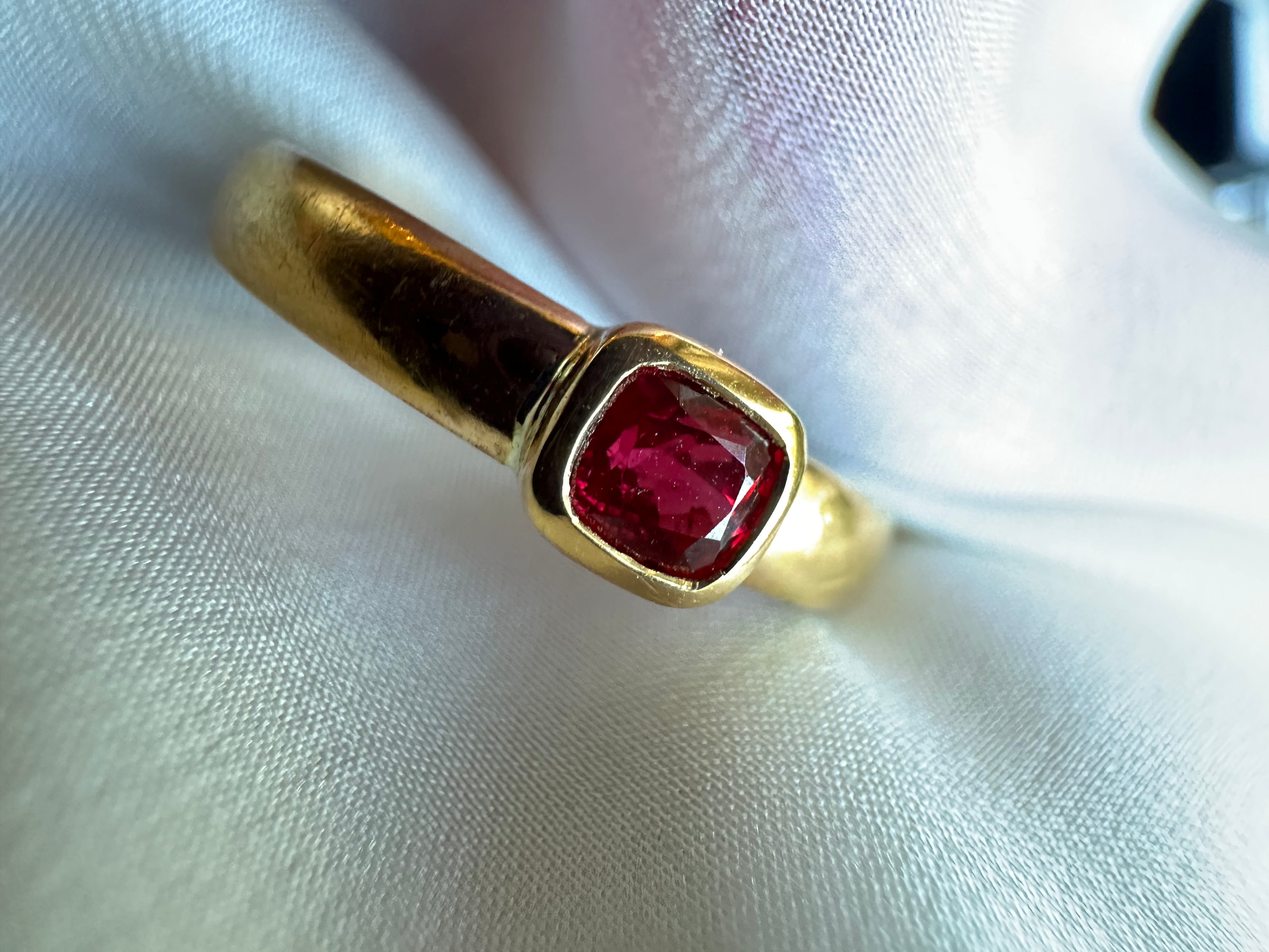 This stone comes straight from Burma and the quality of this .46ct stone is wonderful. It packs quite the punch. I've paired it with this dream of an antique 22ct band from 1922 - a great weight and 3.3mm wide with a rounded, comfort fit, shank.