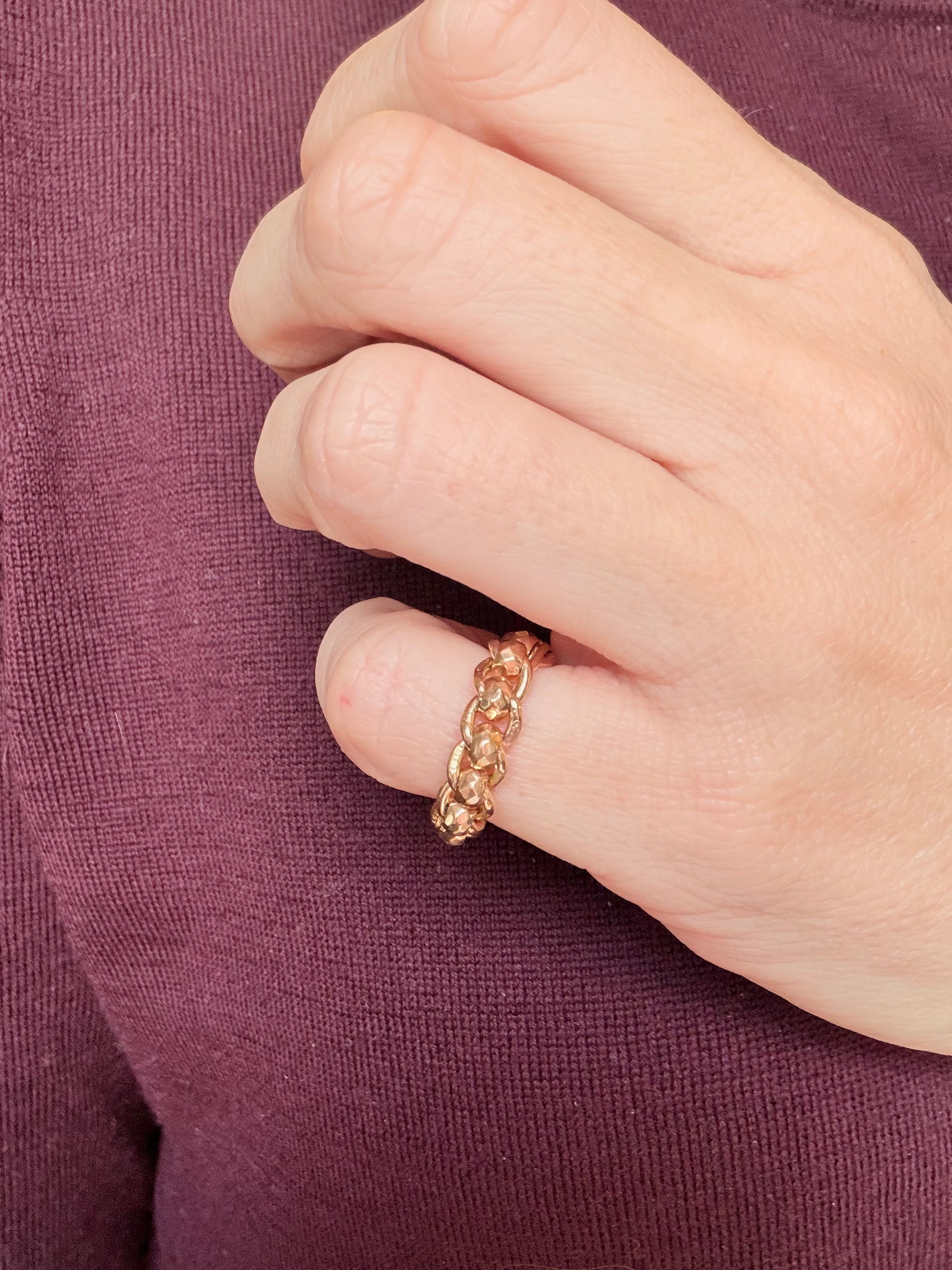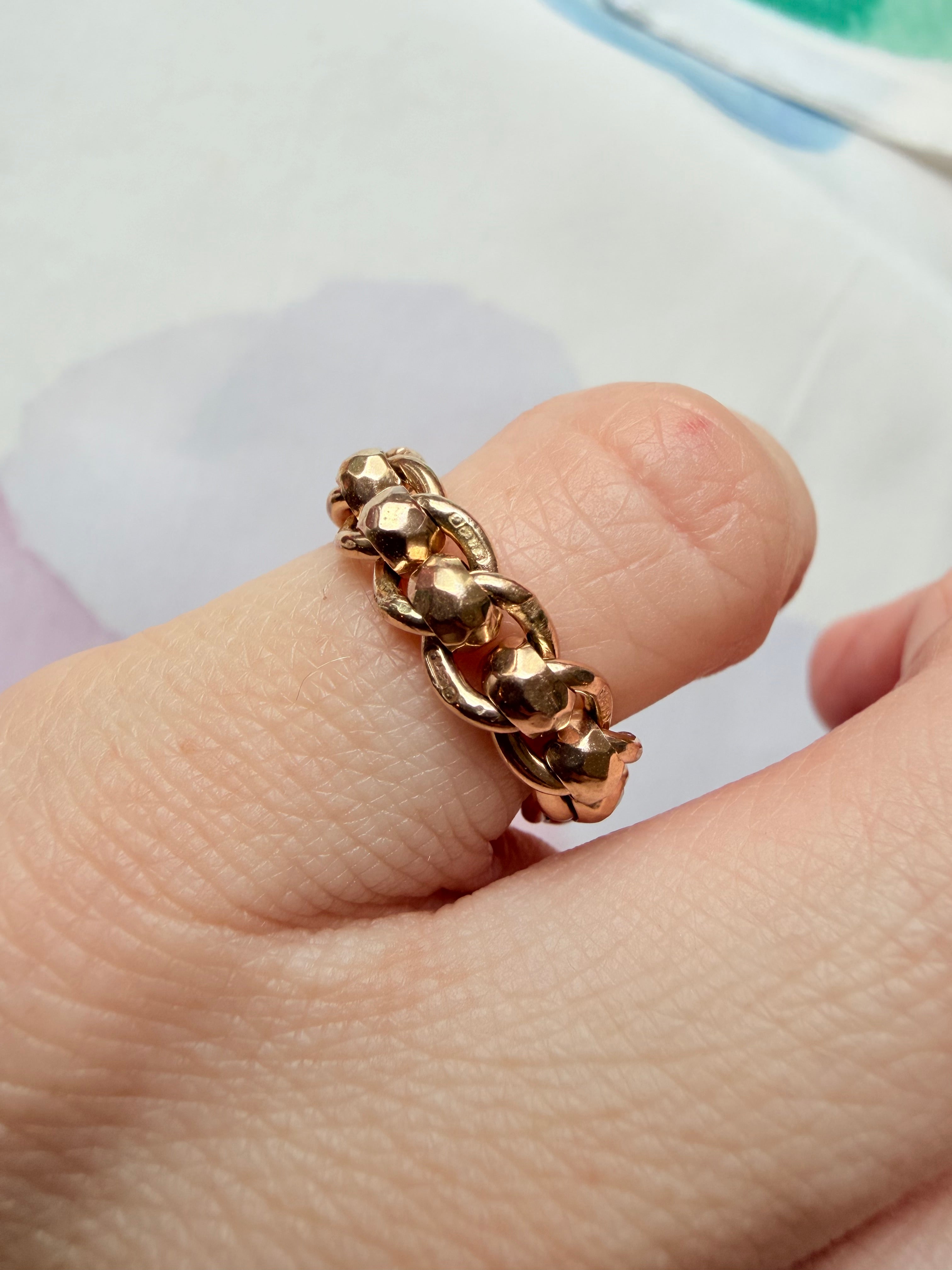 The most satisfying chain rings ever! This chain ring is made from antique faceted rollerball chain and the movement is silky smooth. Your very own fidget chain ring!