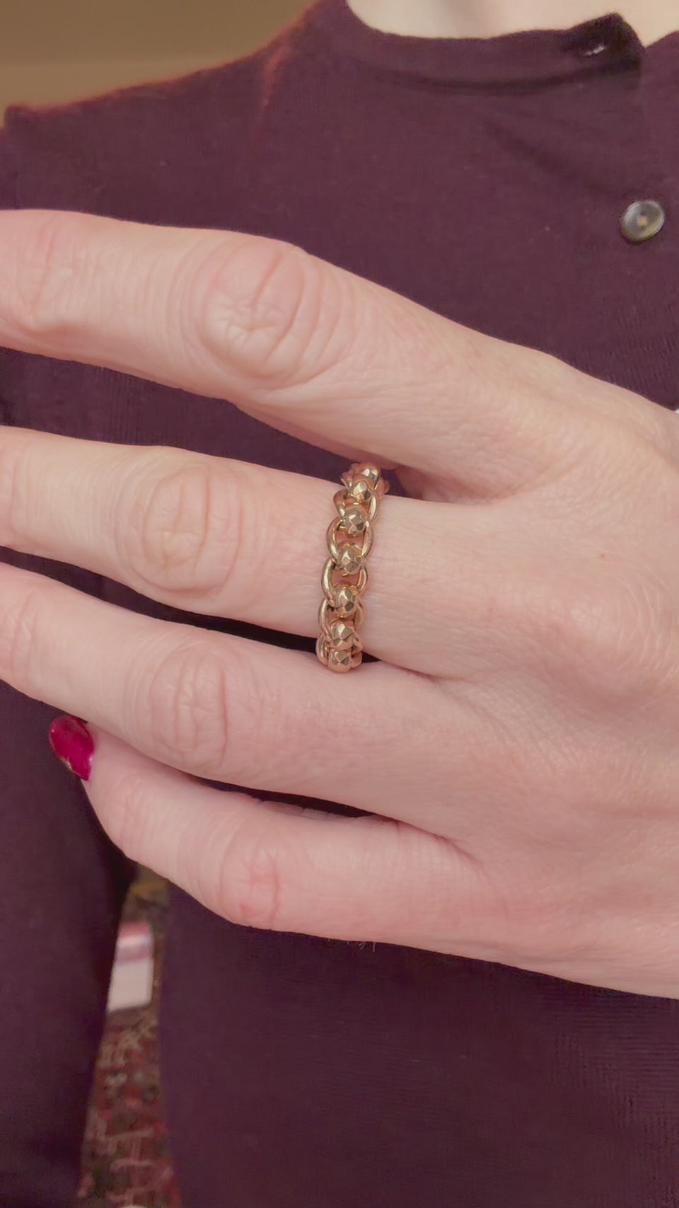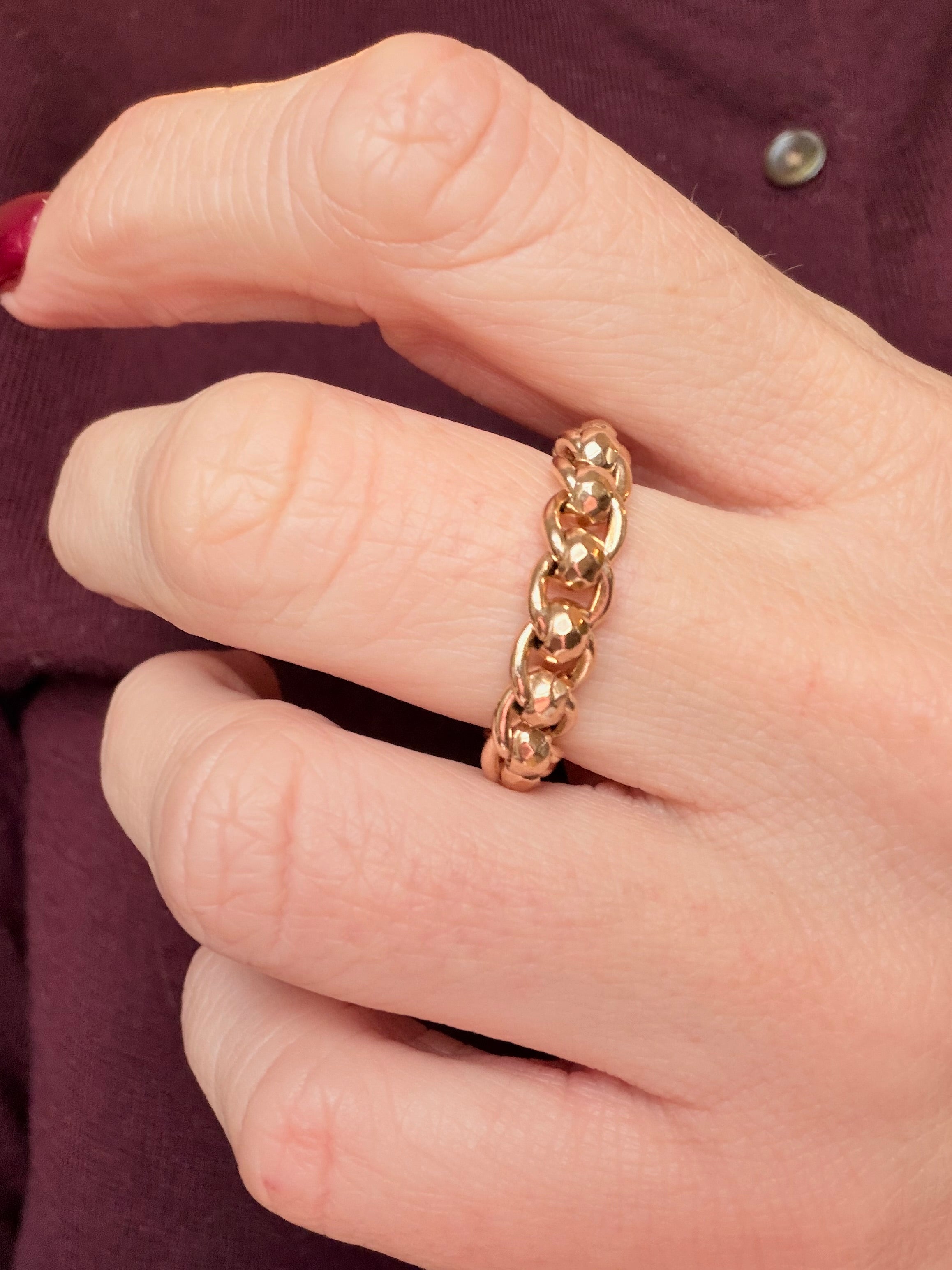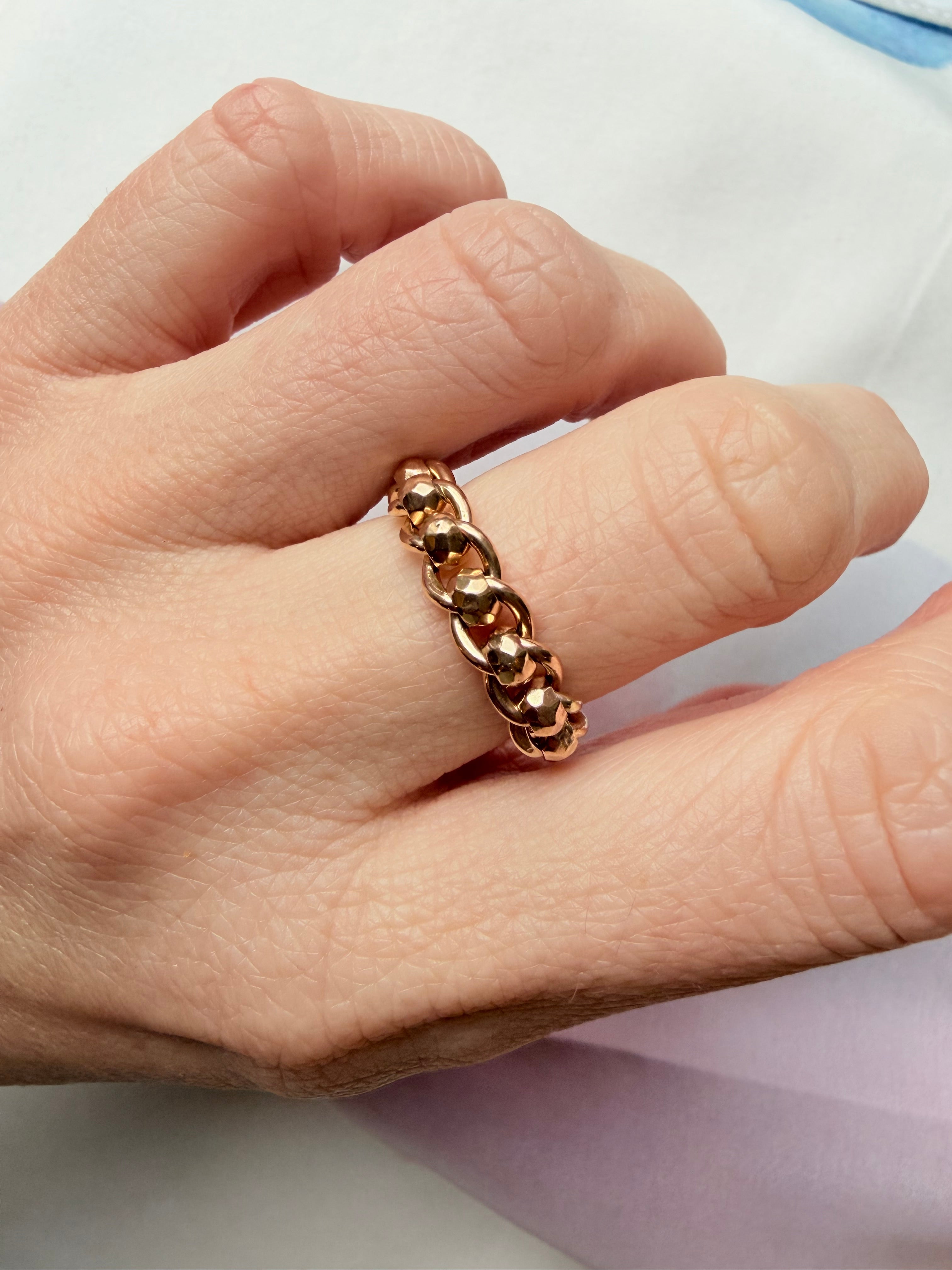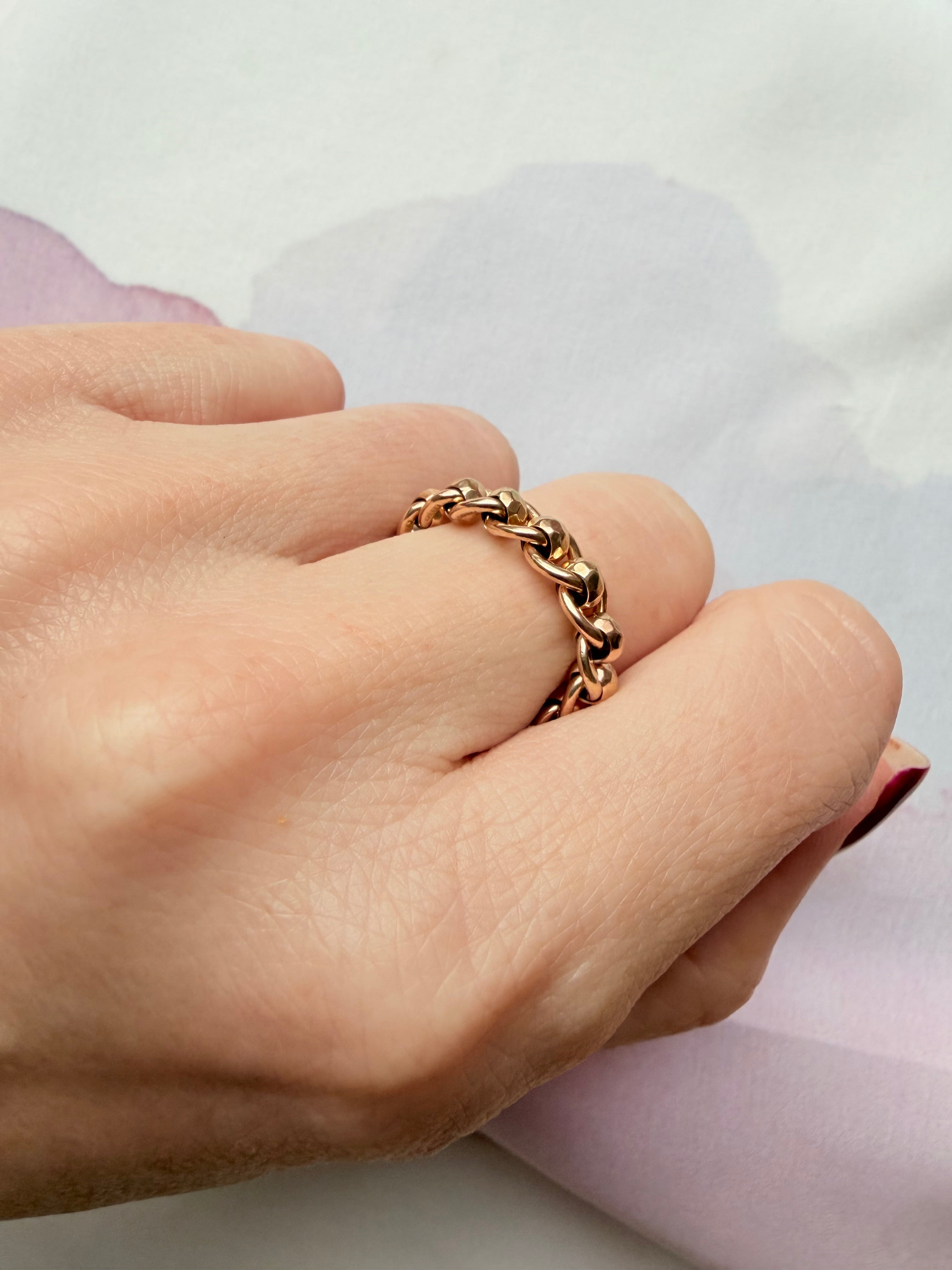 The most satisfying chain rings ever! This chain ring is made from antique faceted rollerball chain and the movement is silky smooth. Your very own fidget chain ring!