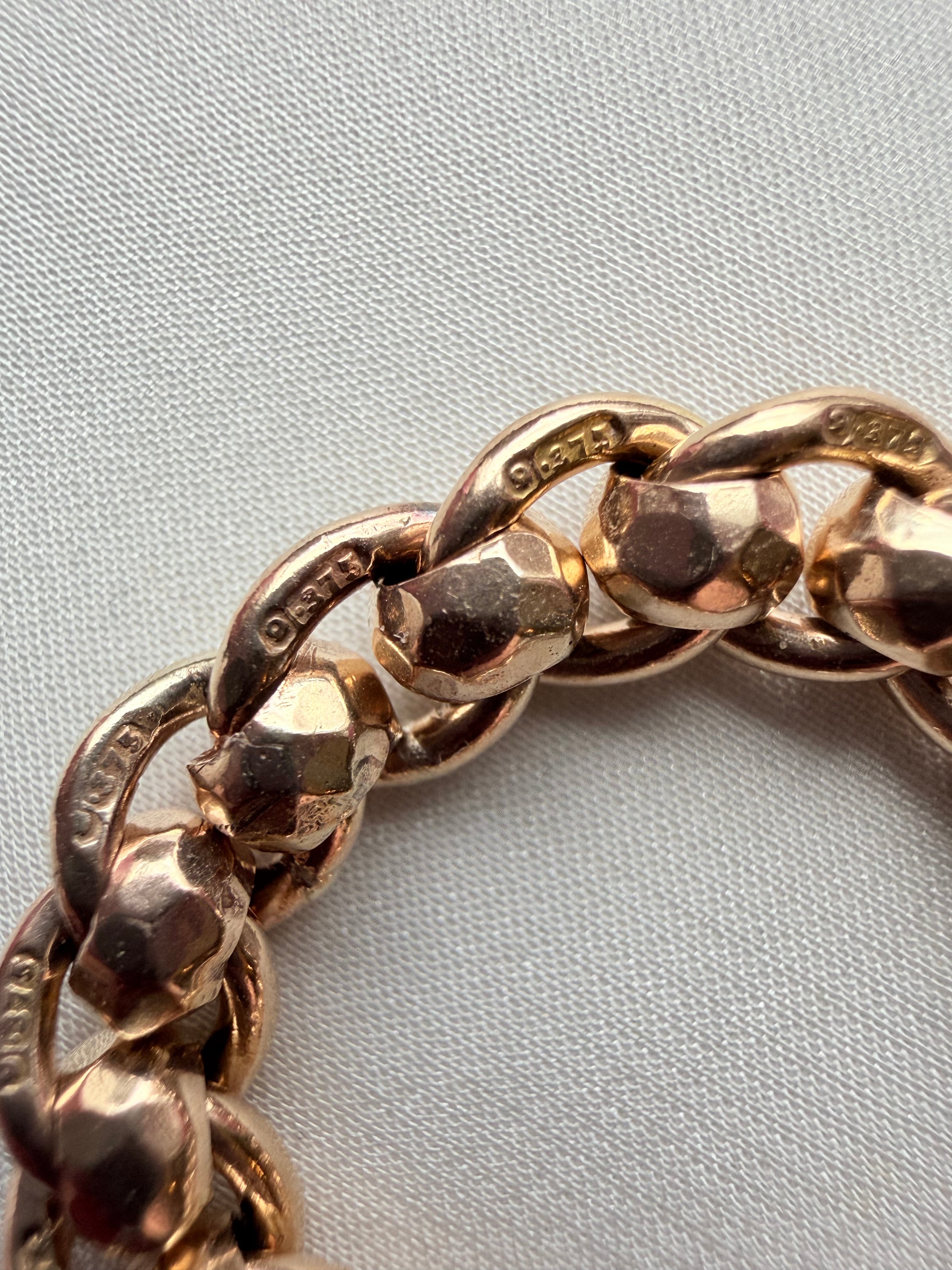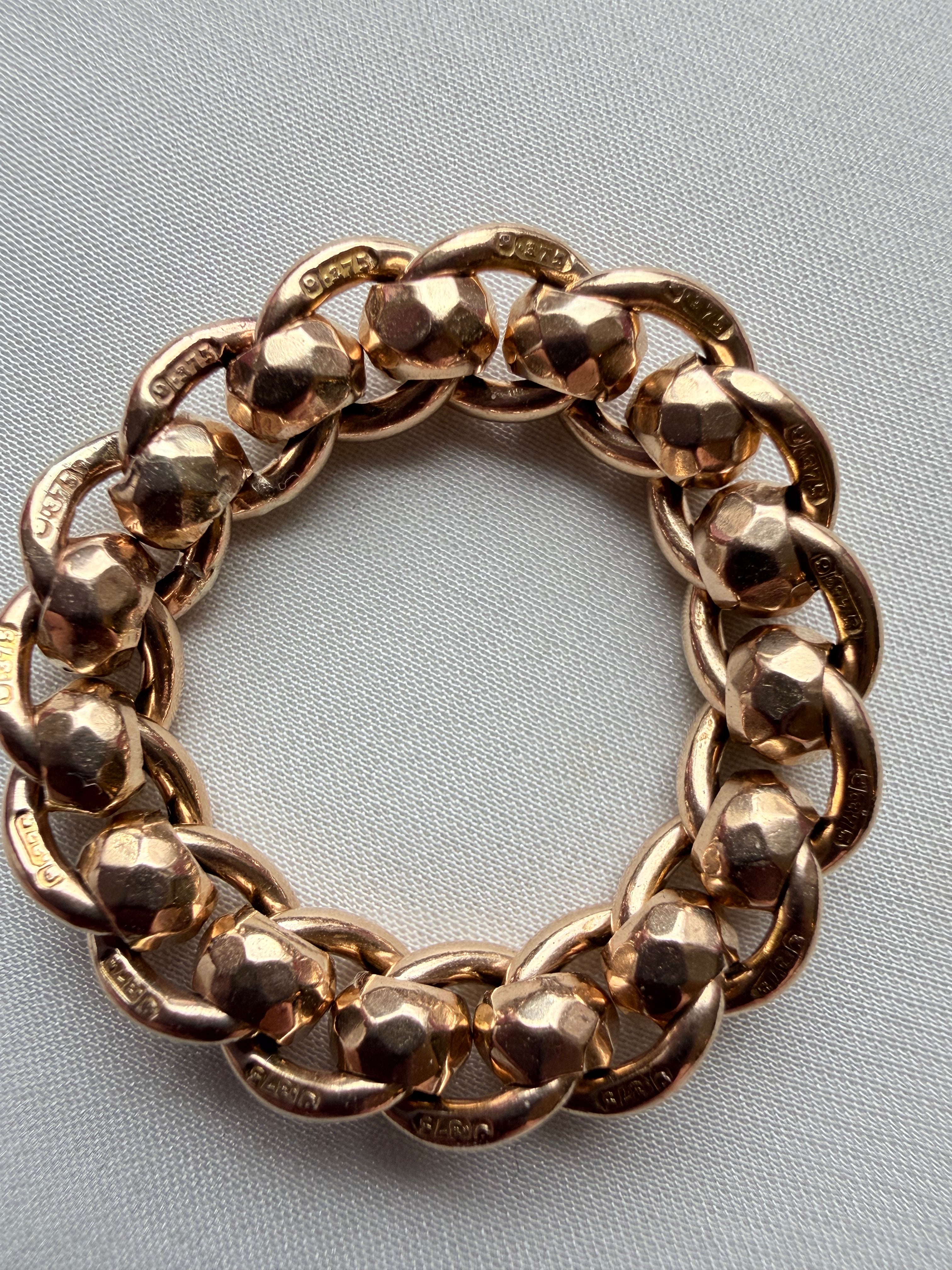 Antique 9ct Faceted Rollerball Chain - Size O.5 / 7.25