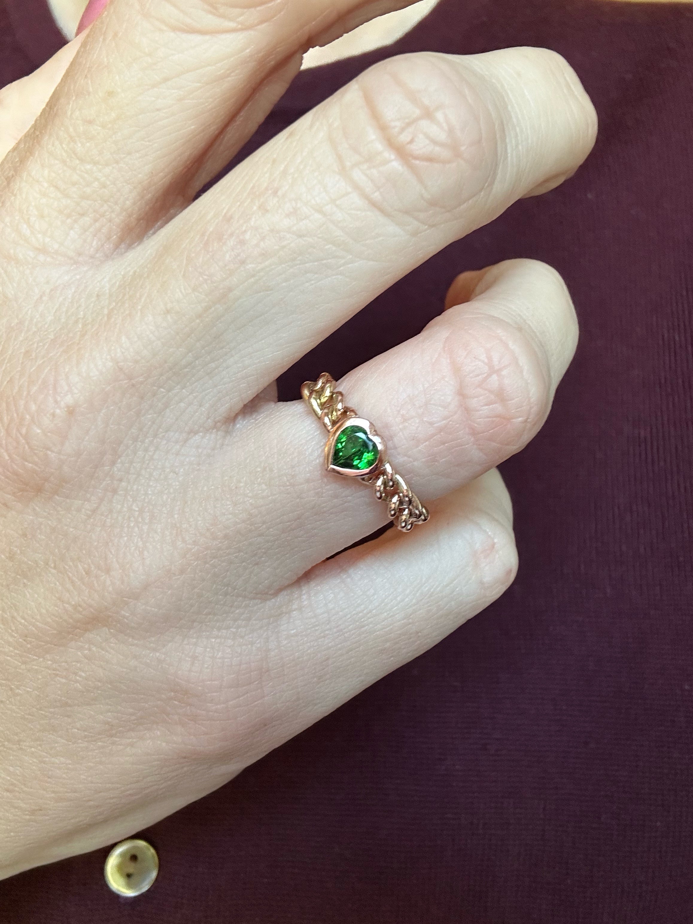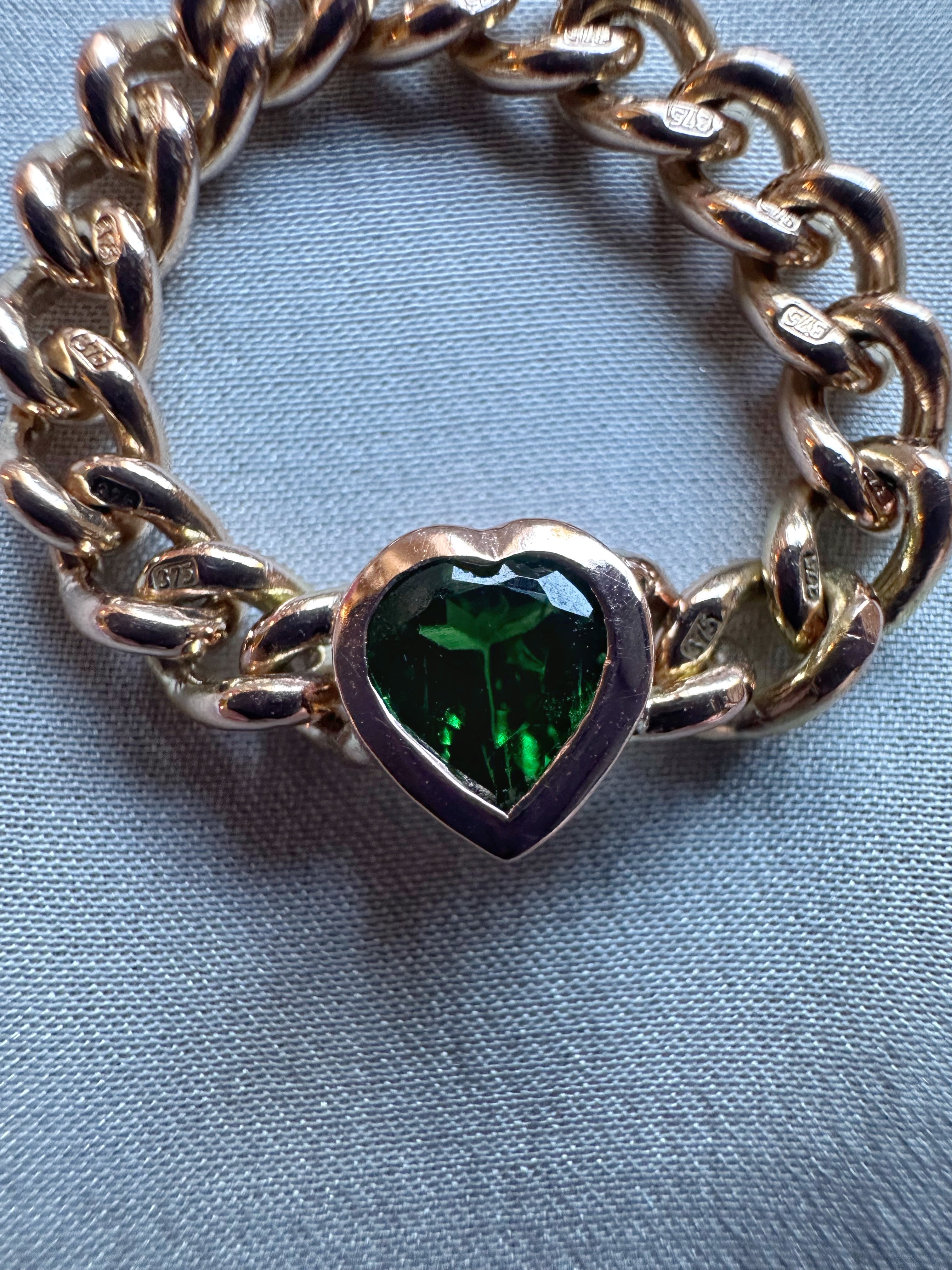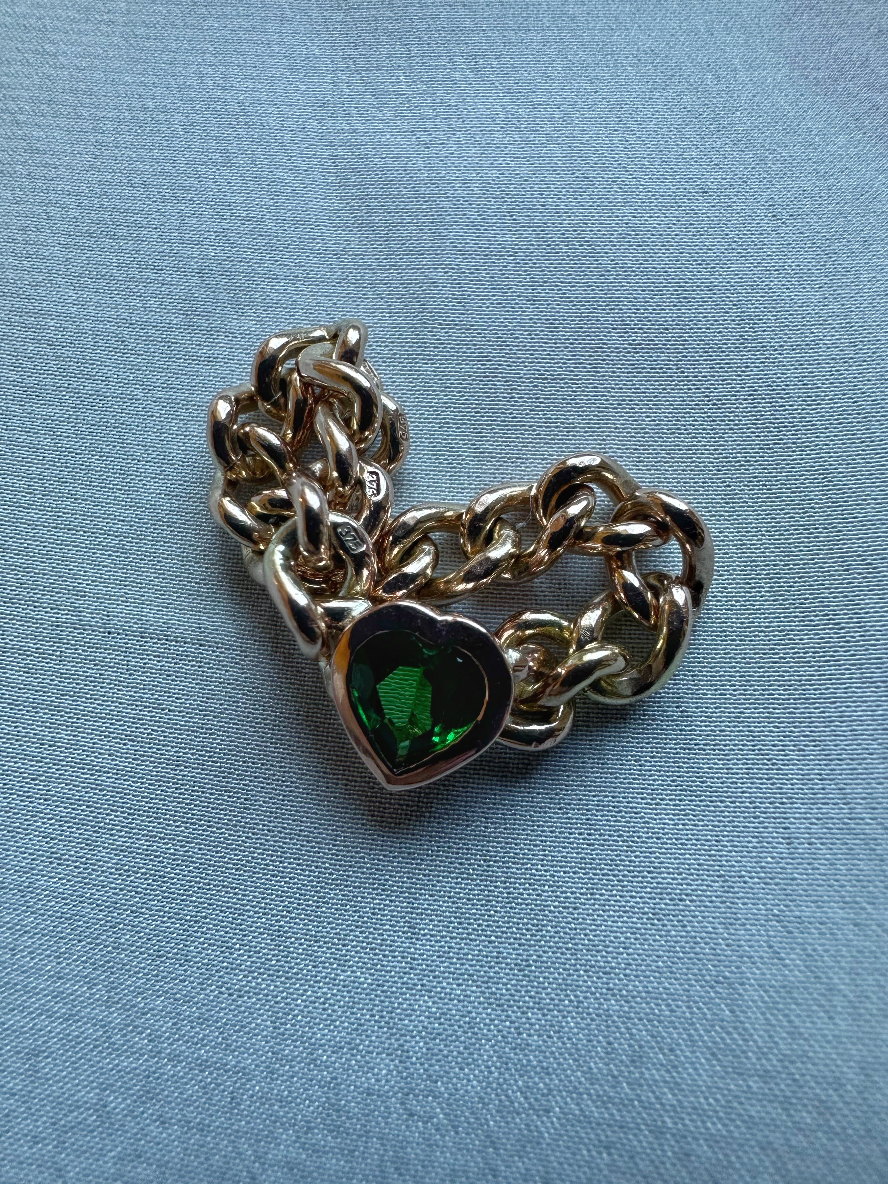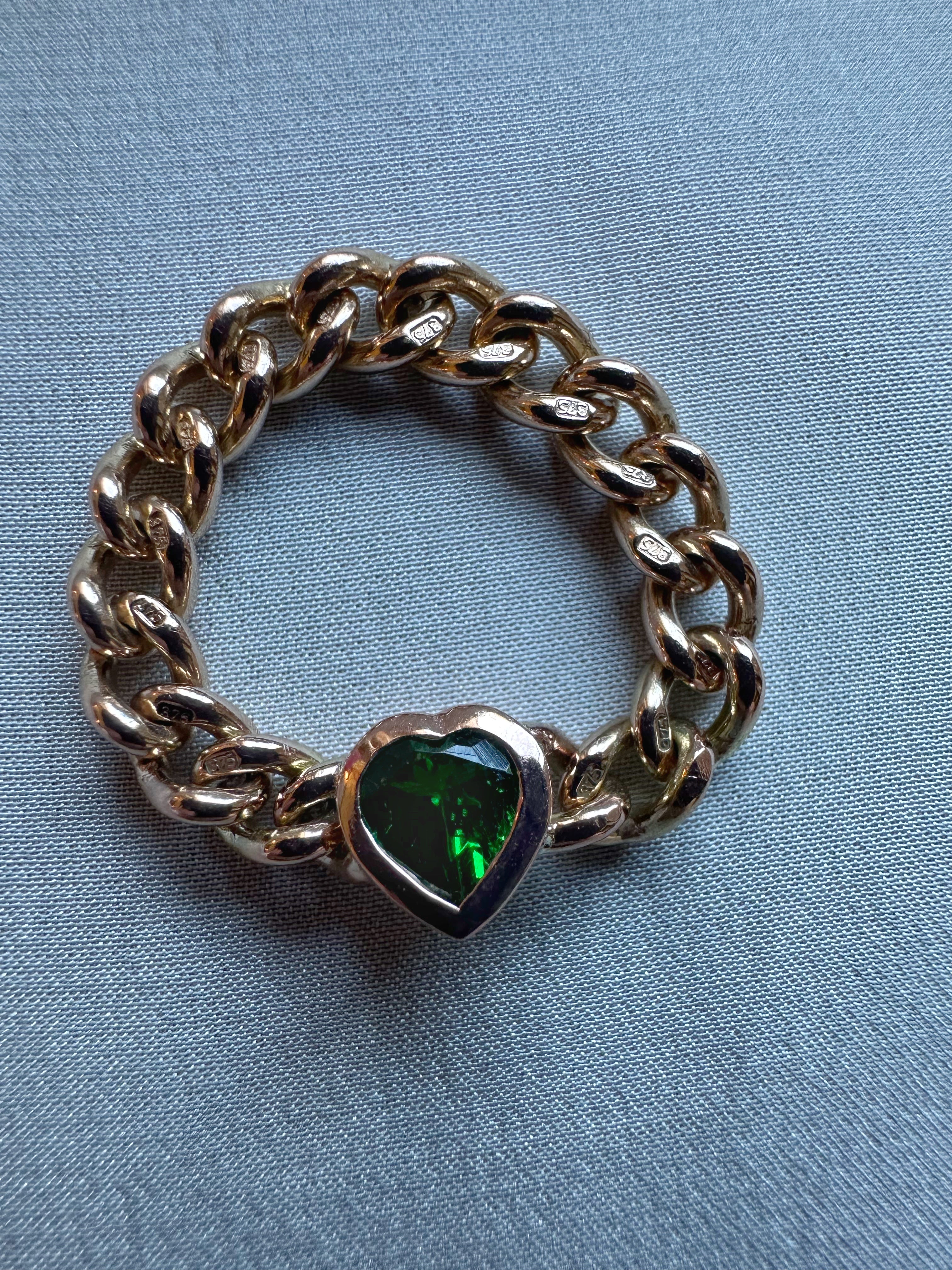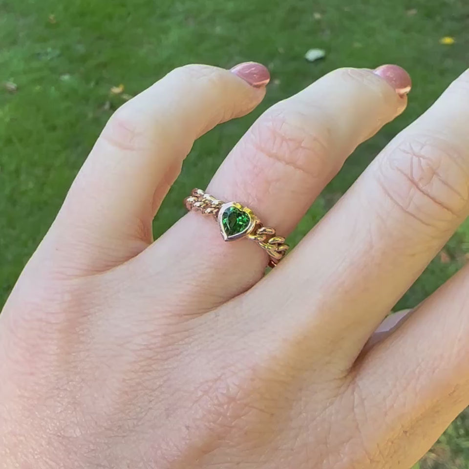 Perfect for you green gem connoisseurs (I see you, I AM you) - this chain ring features antique chain with a perfectly set heart shaped tsavorite garnet.