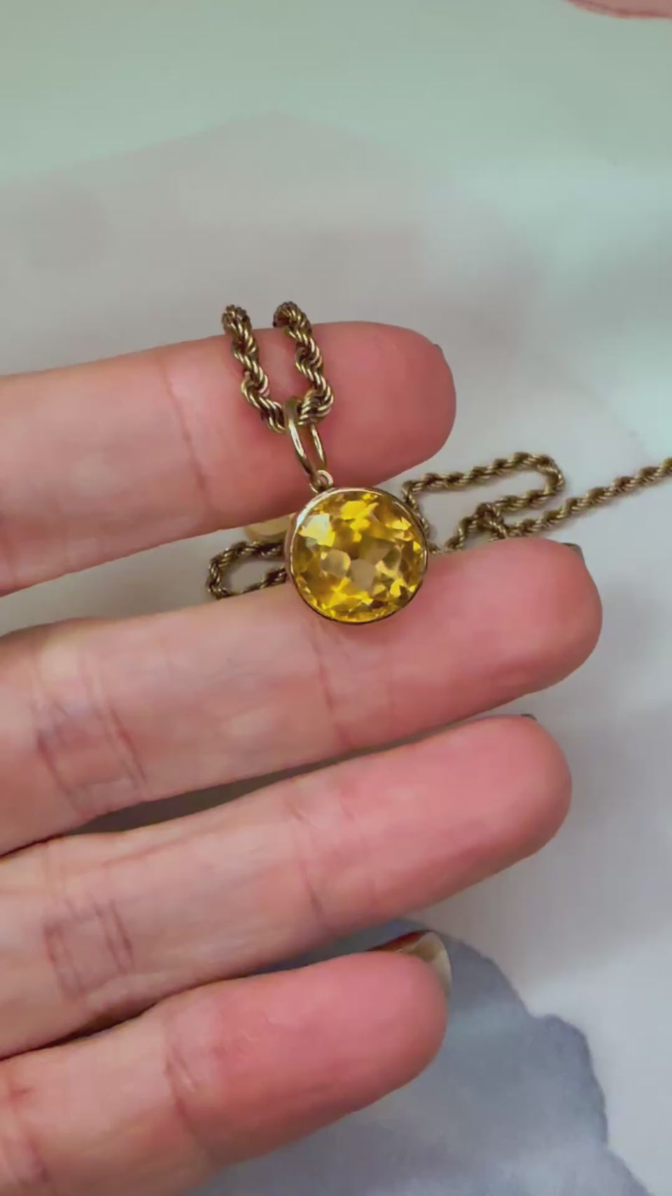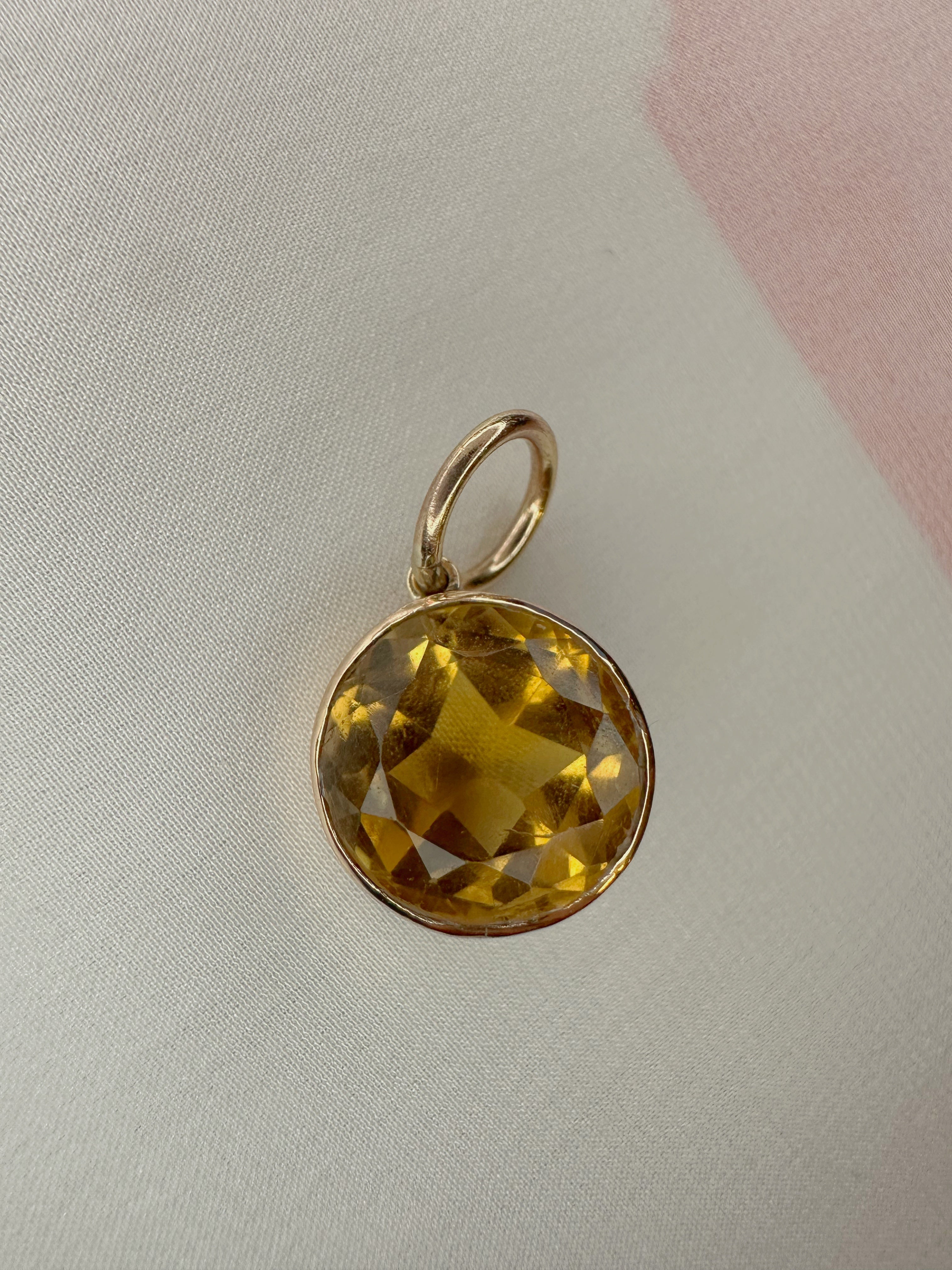 An antique bezel set citrine which we have converted into a pendant.