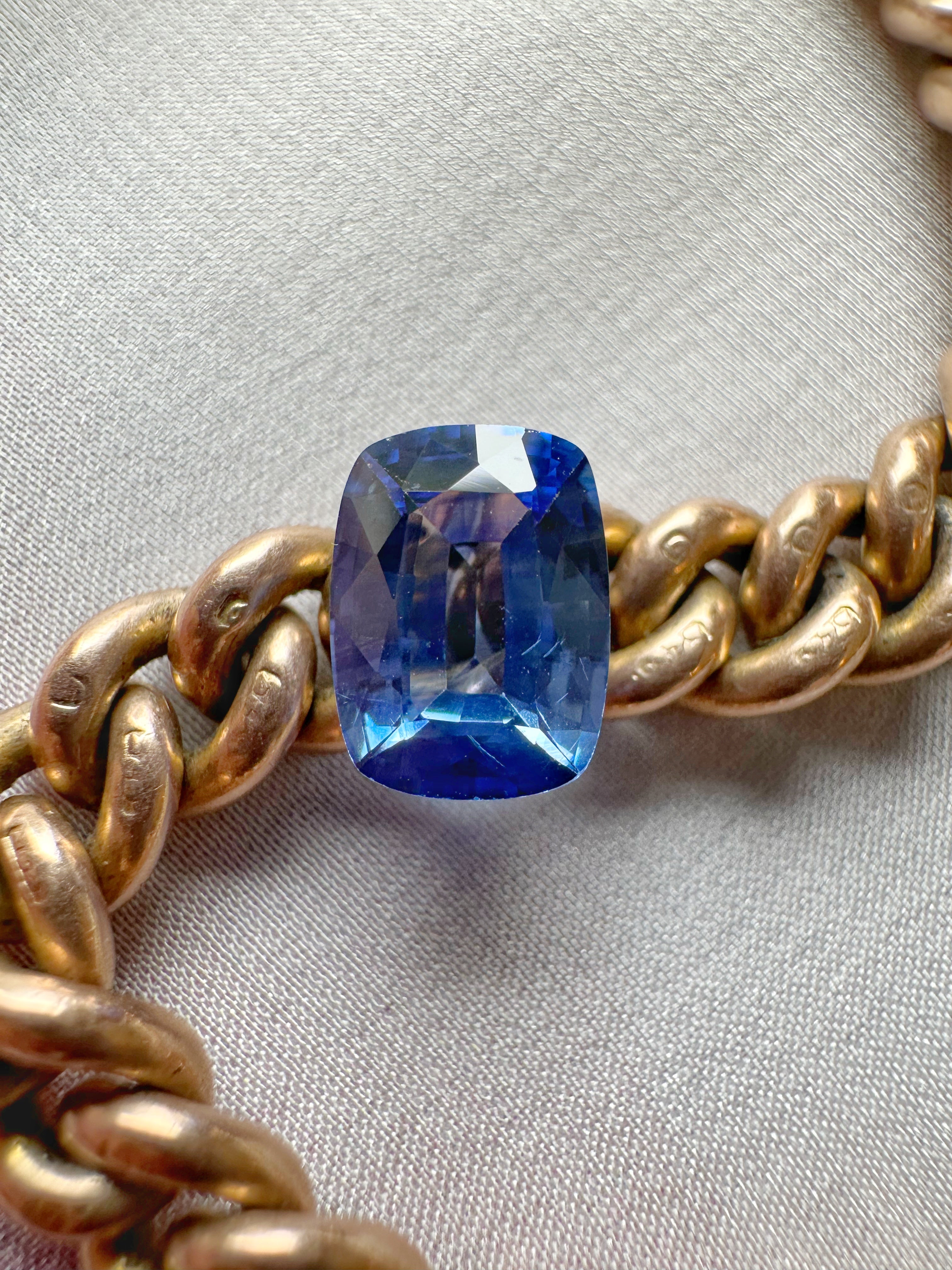 Antique Maxi Chain Ring - Elongated Blue Sapphire 1.52ct [private / temporary listing]