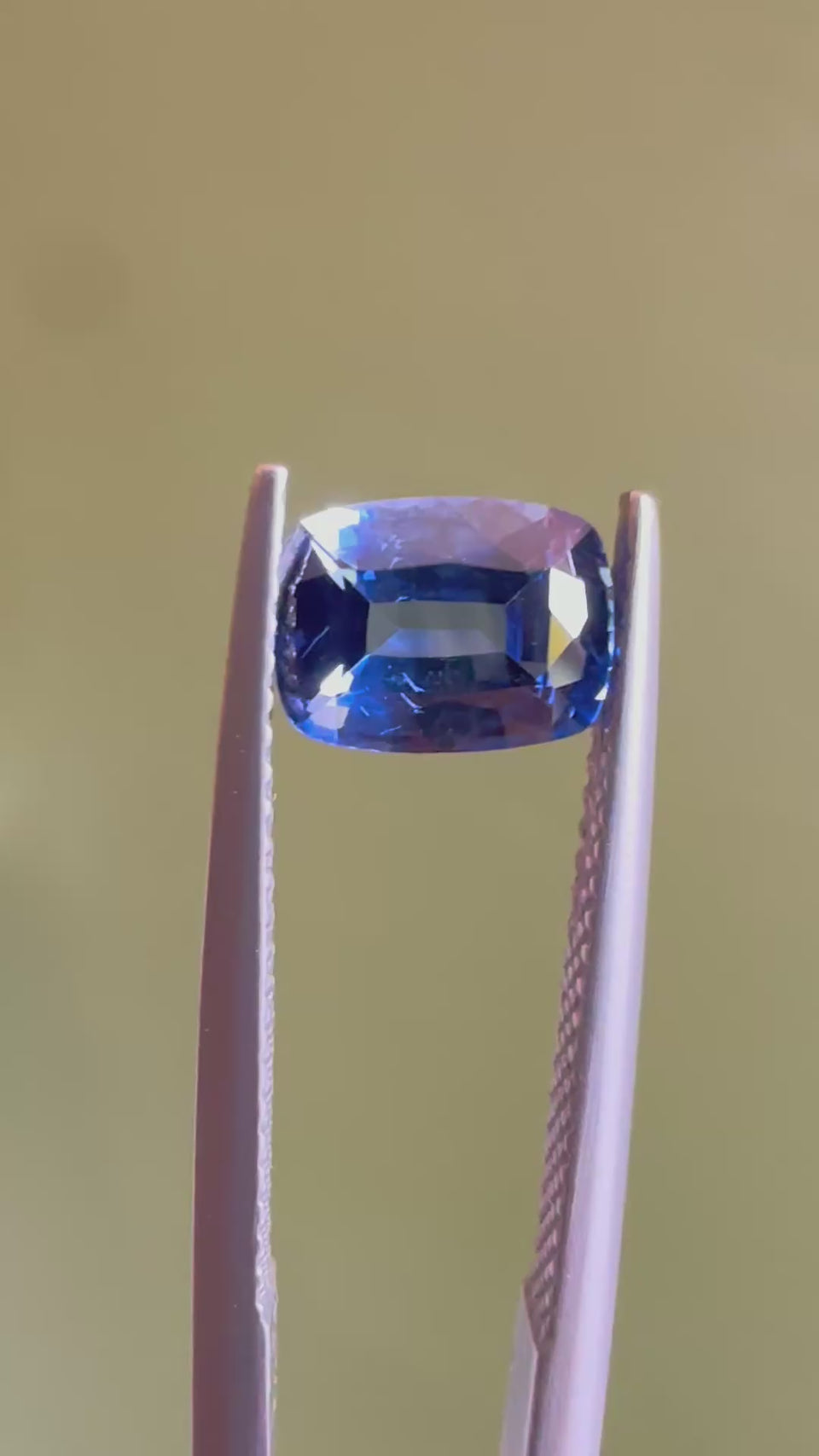 Stone would be set north-south. The stone is a rich blue and has zoning across the stone, unset it measures 8.1 x 6mm.