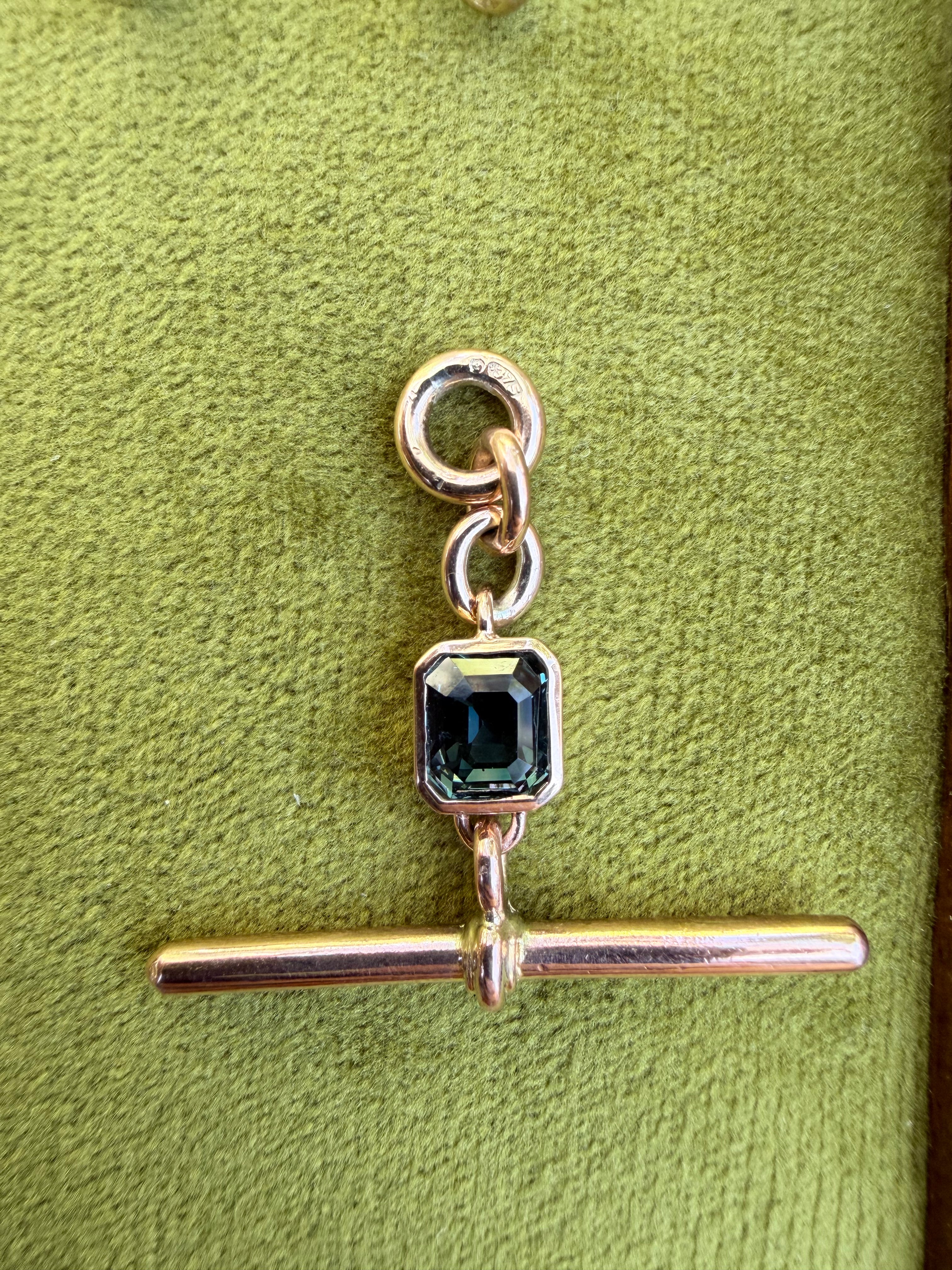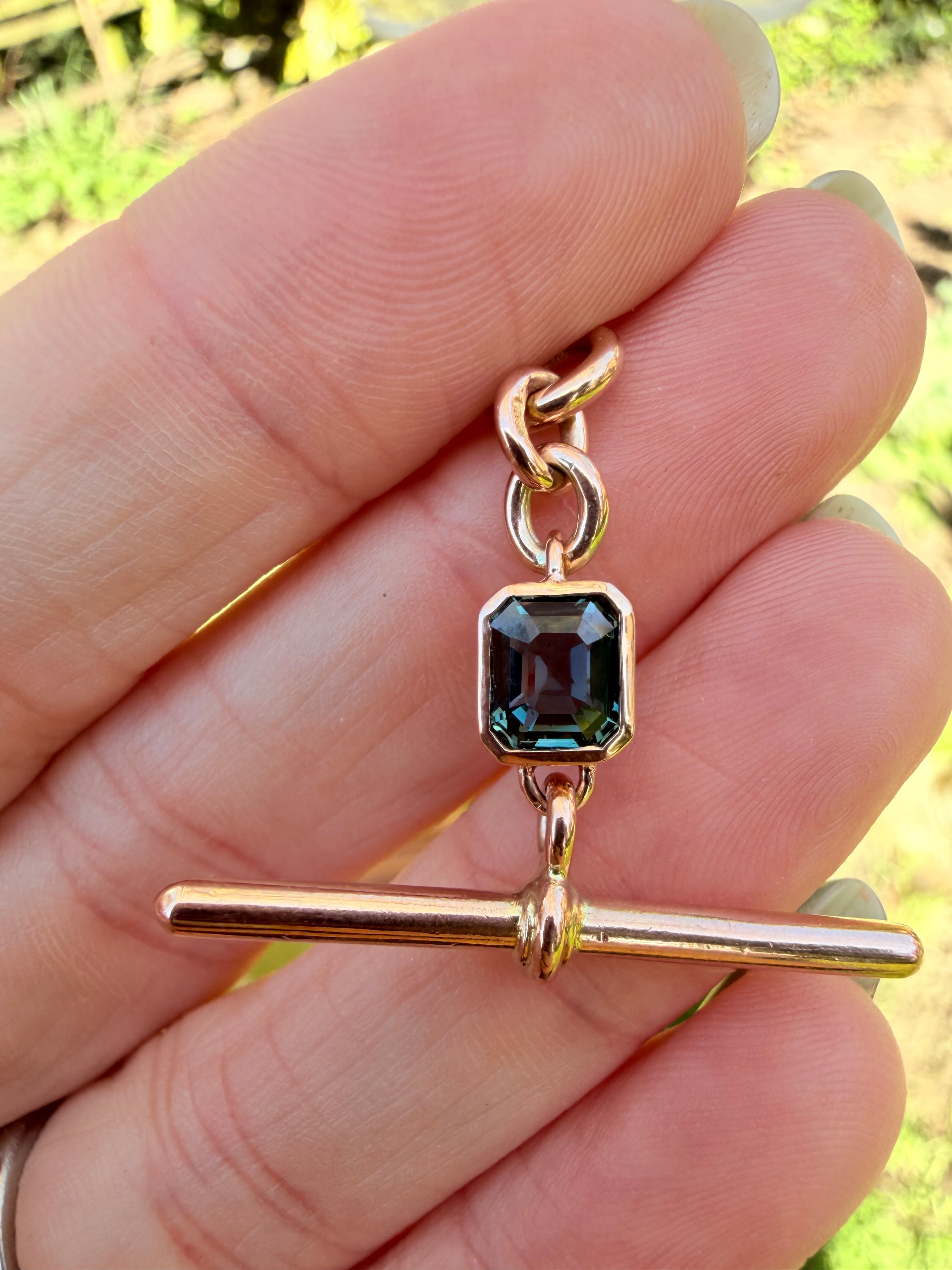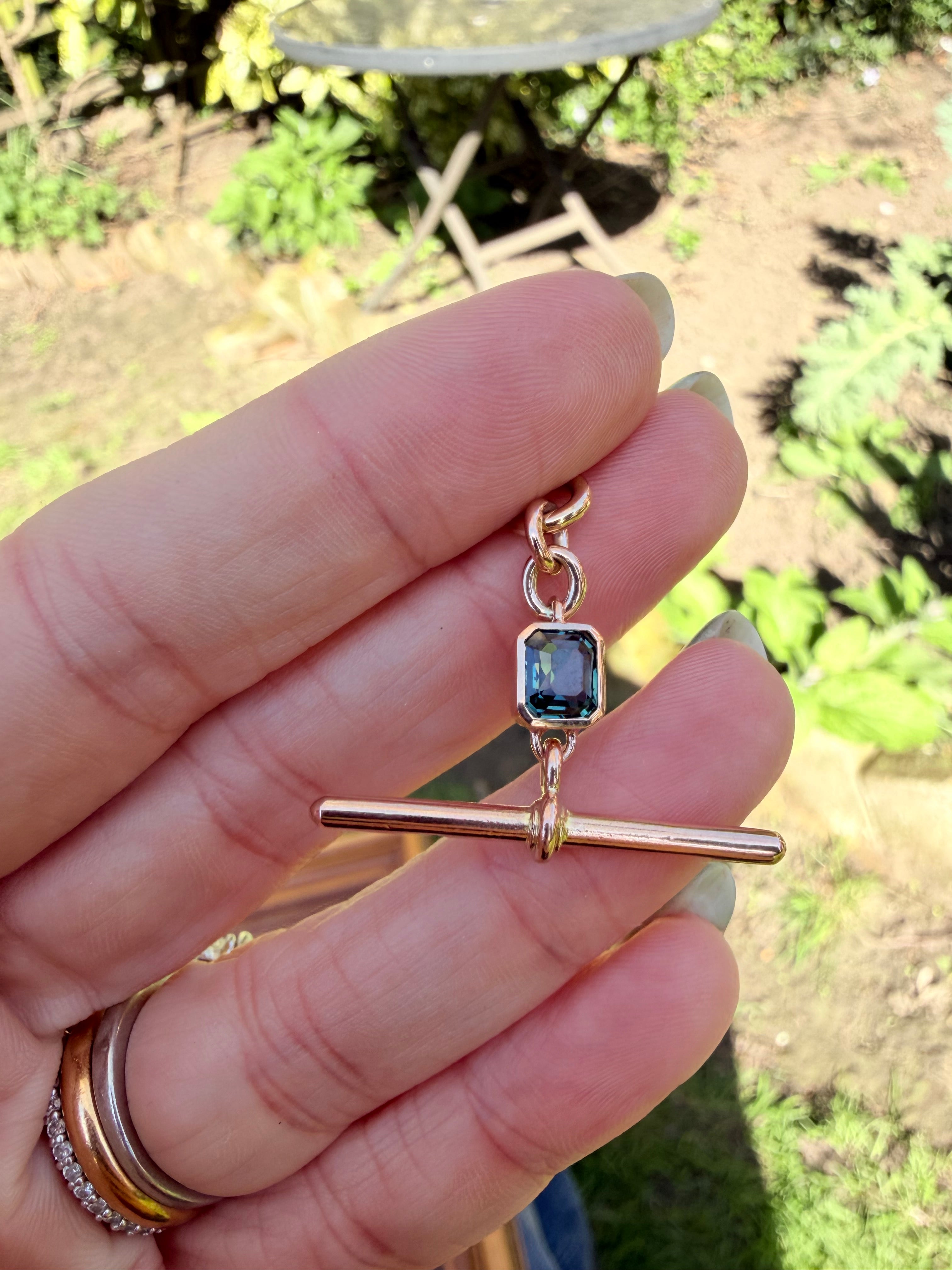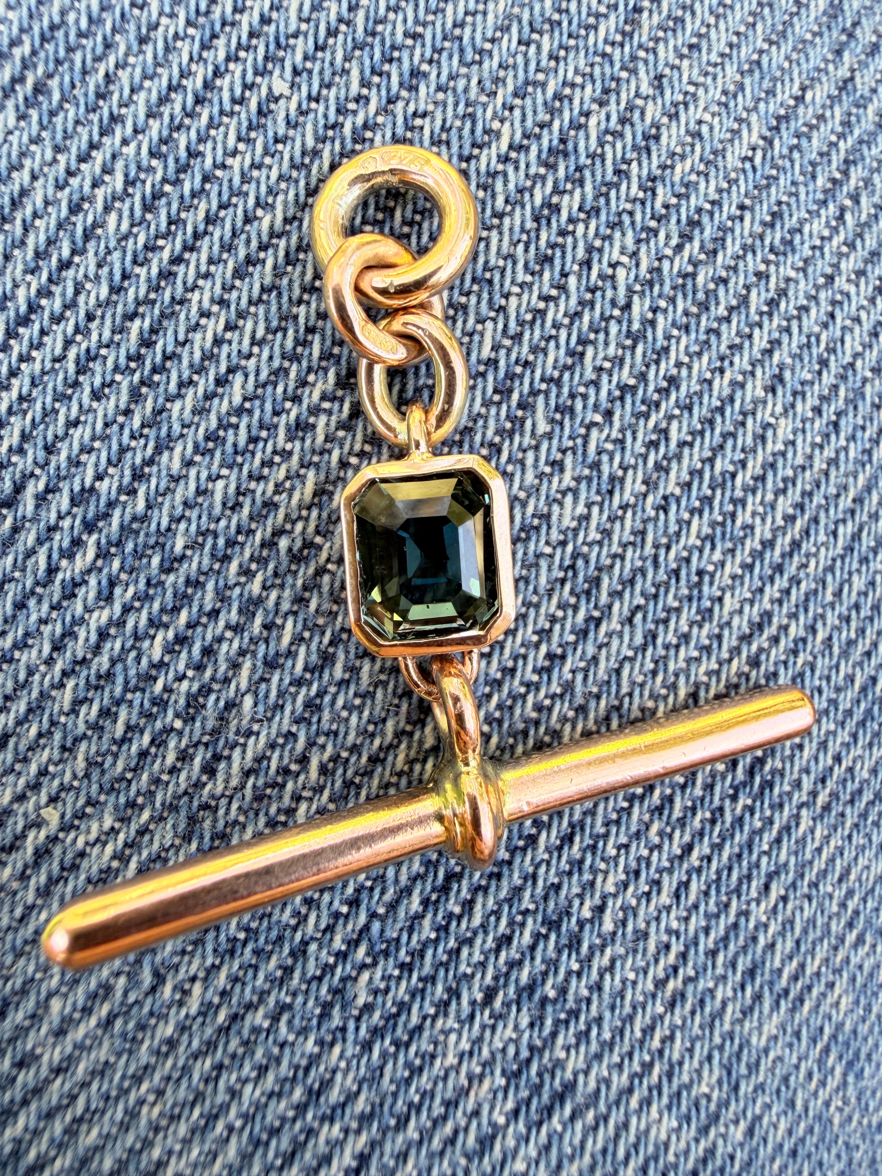 Antique T-Bar | Octagon Blue Sapphire | 9ct Rose
