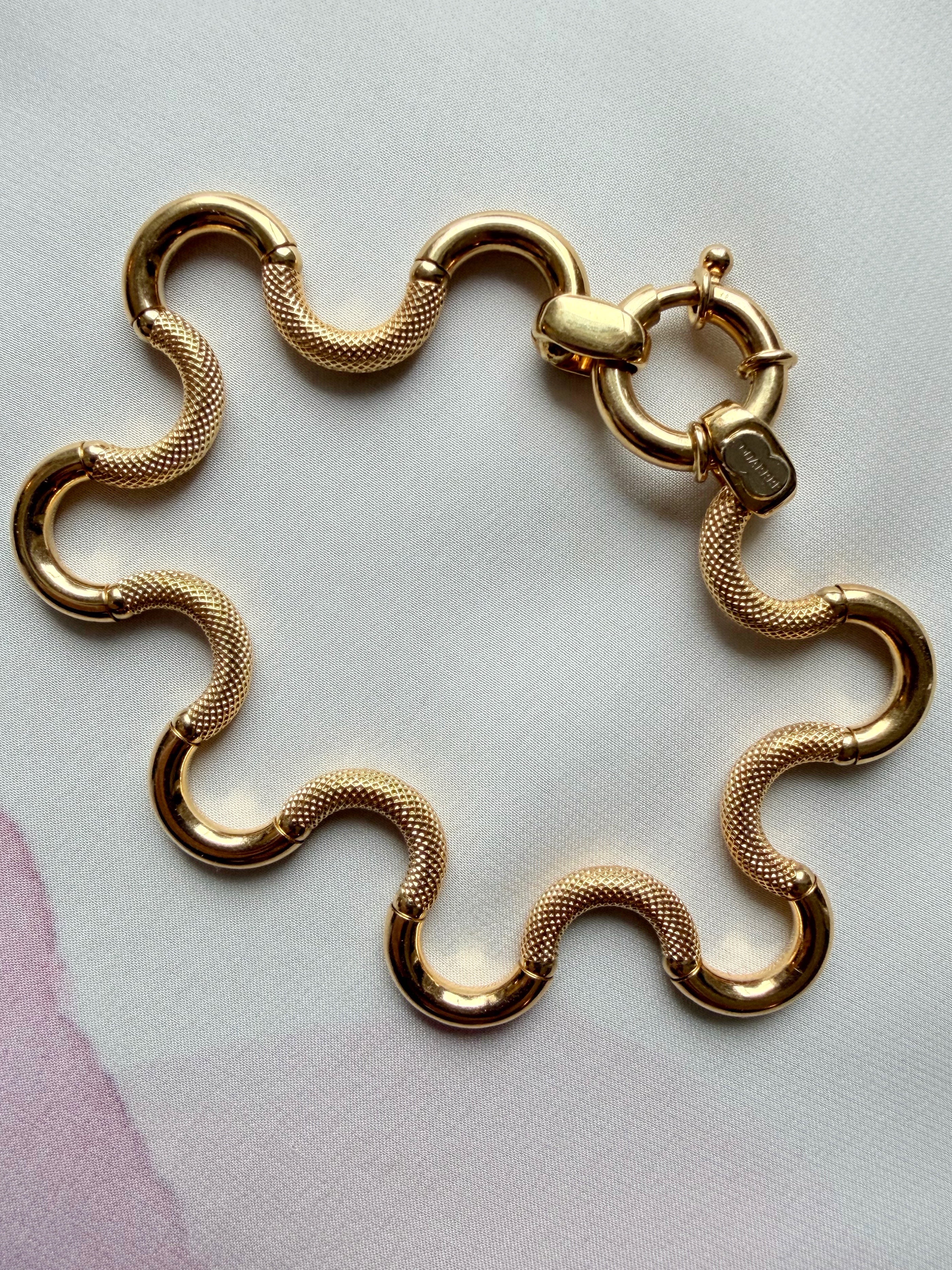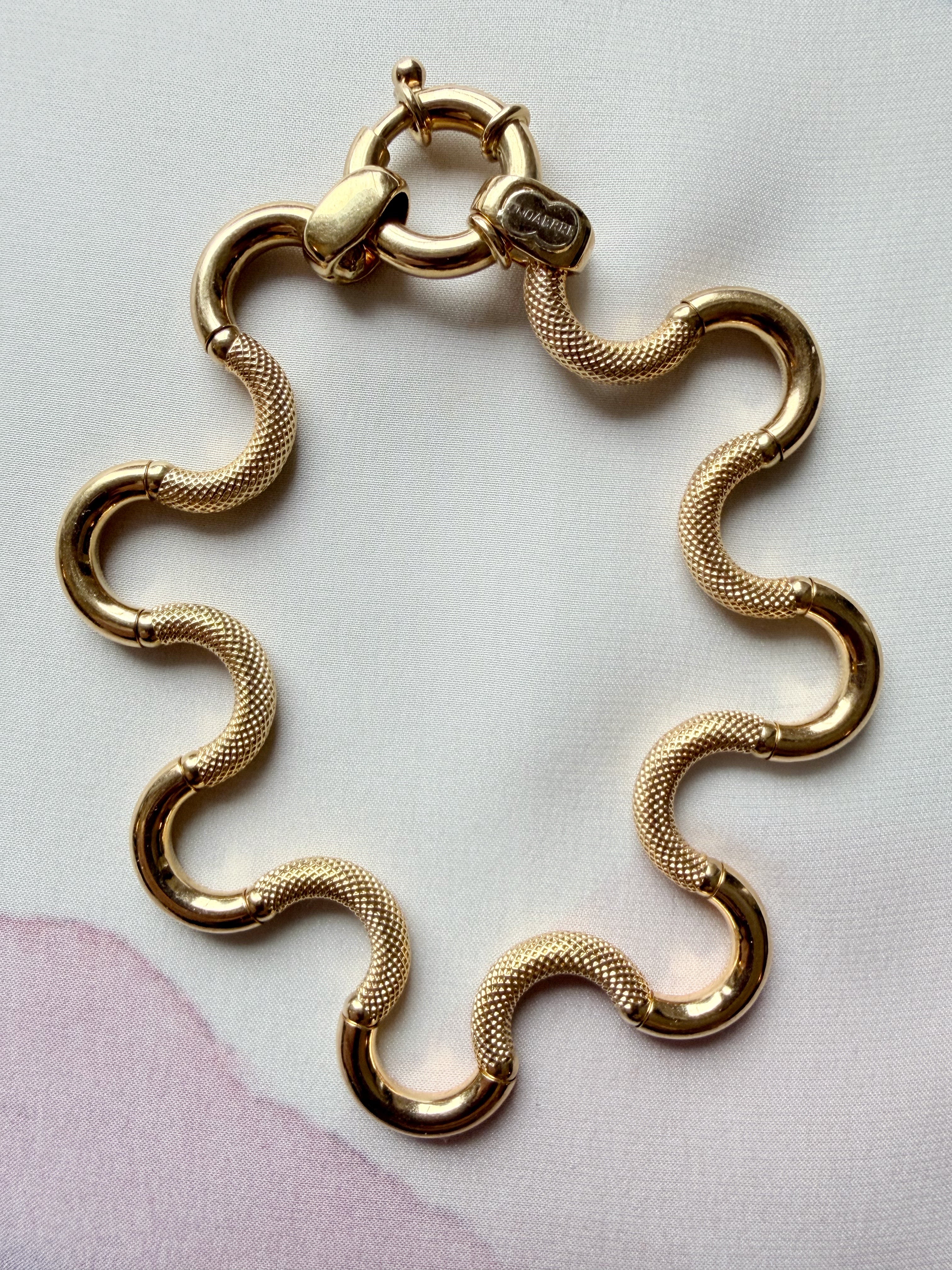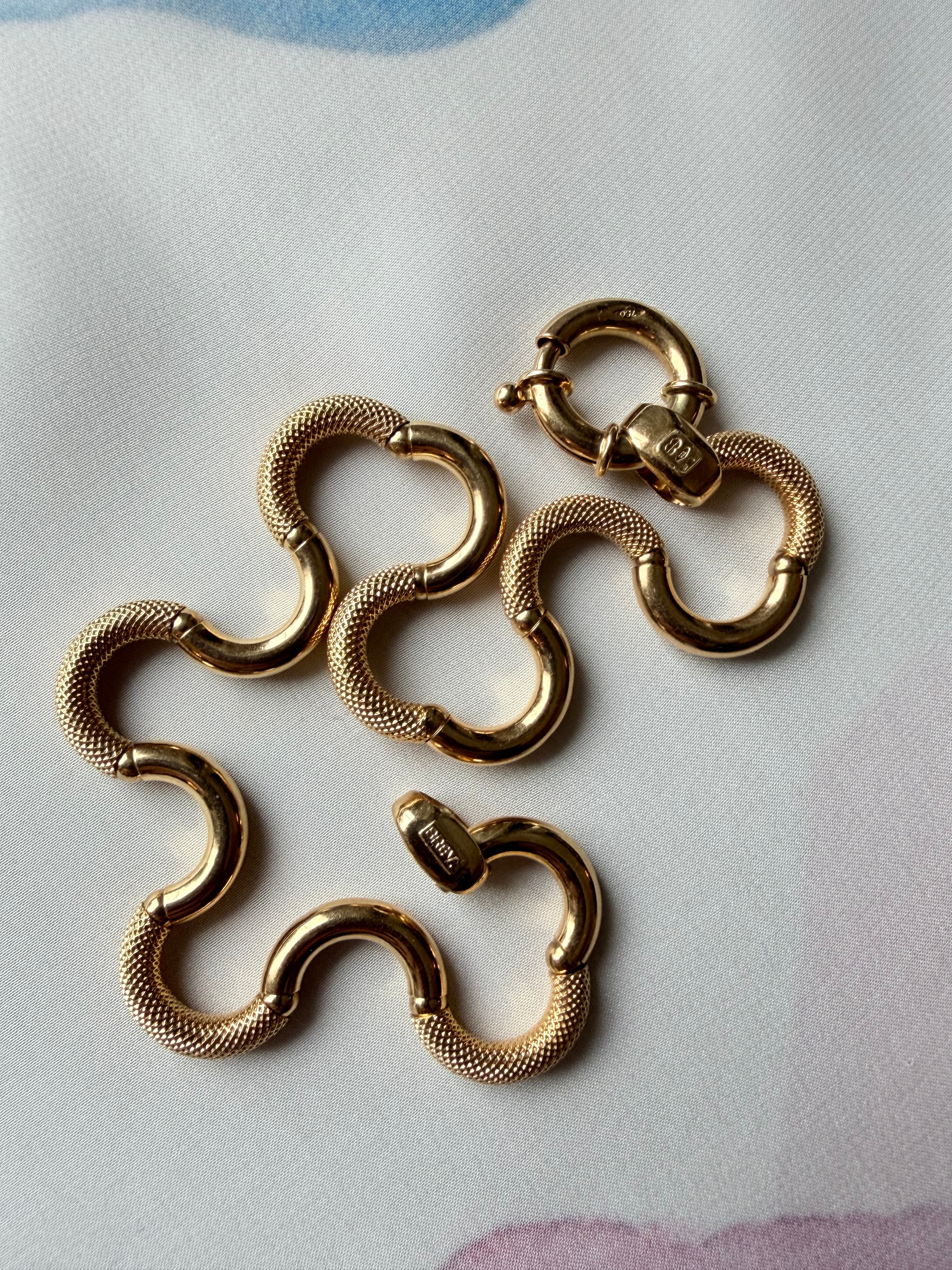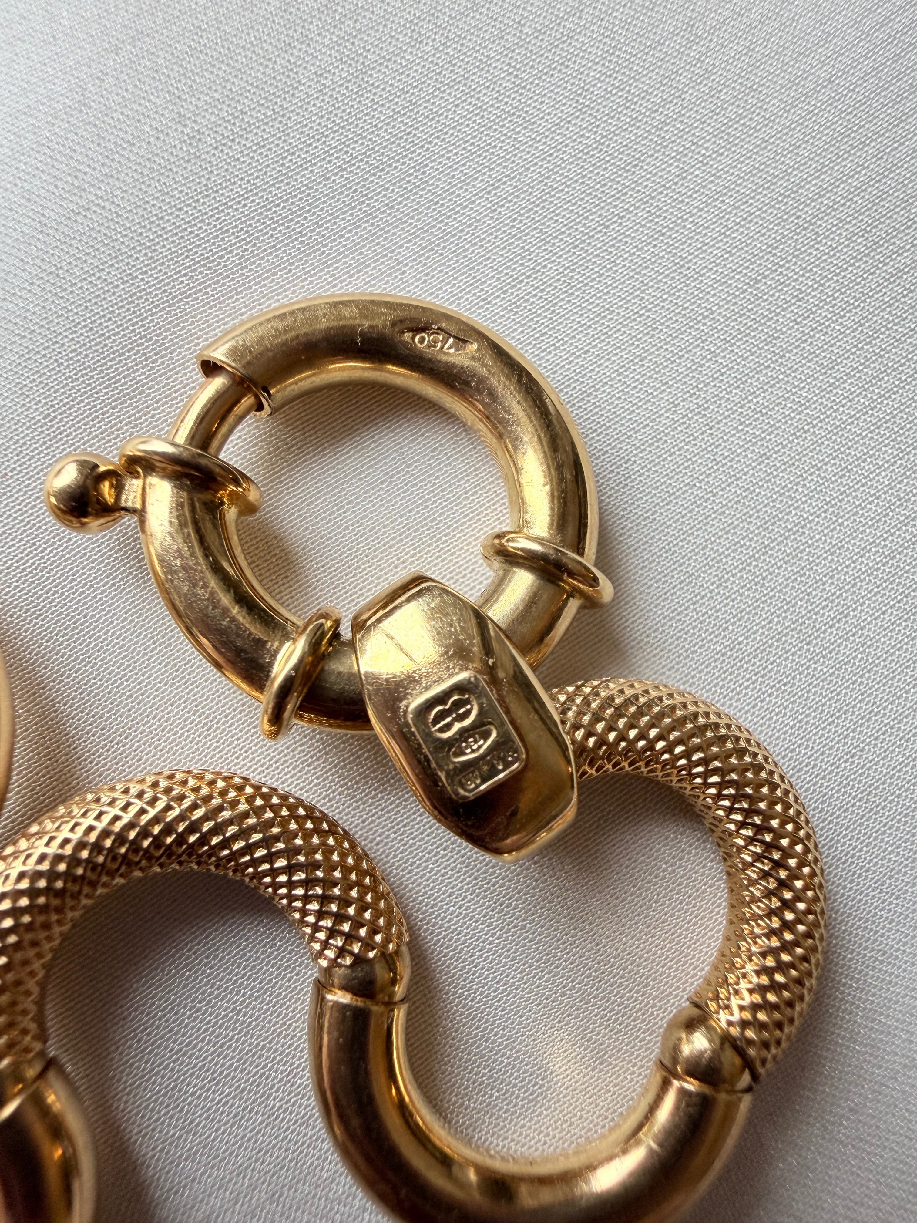 The result is a fluid appearance and hugely tactile piece of jewellery, perfectly finished with a chubby bolt clasp, hallmarked in Italy for 18ct gold and with the UnoAErre makers tag applied in white gold to the end link.