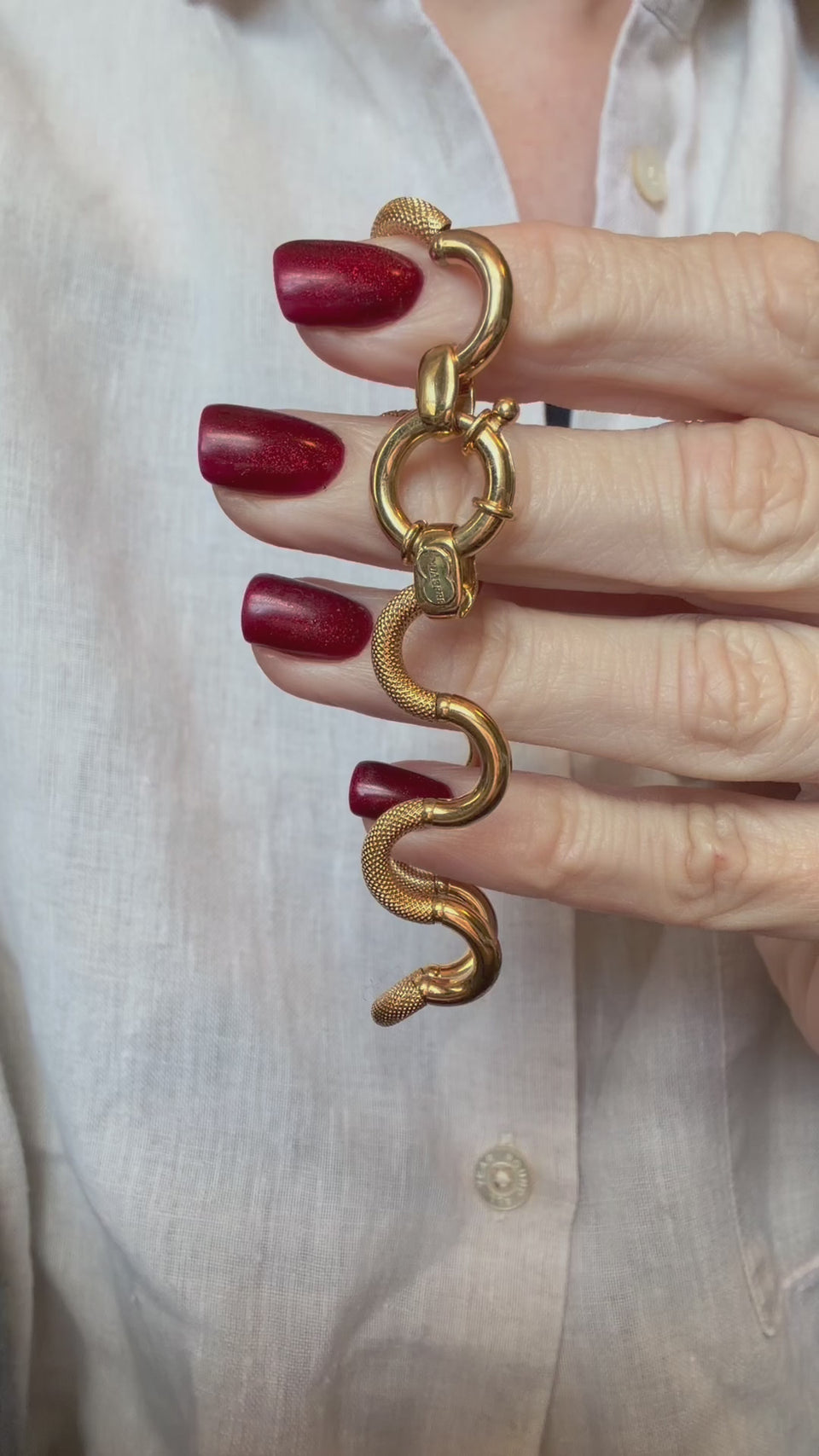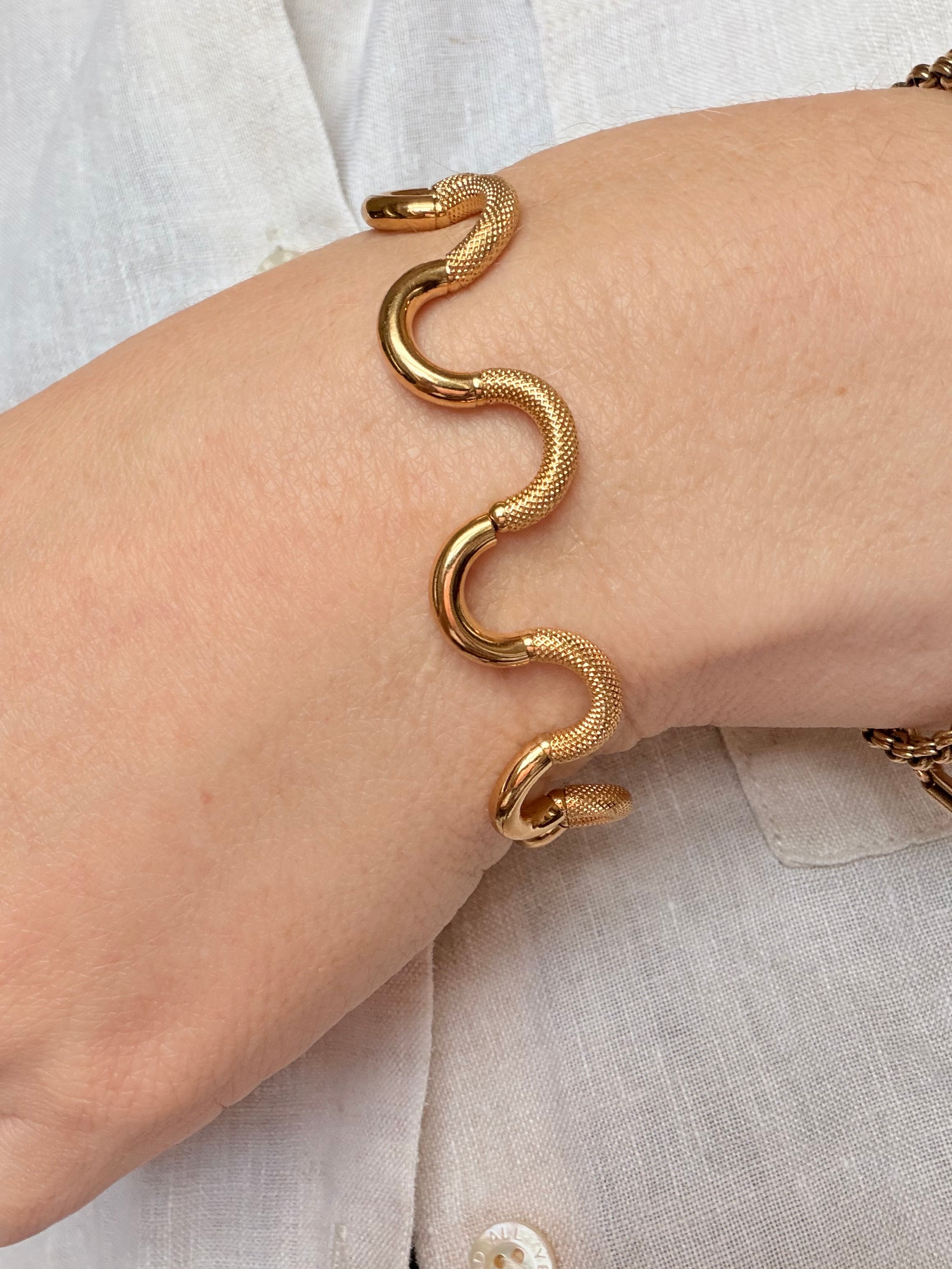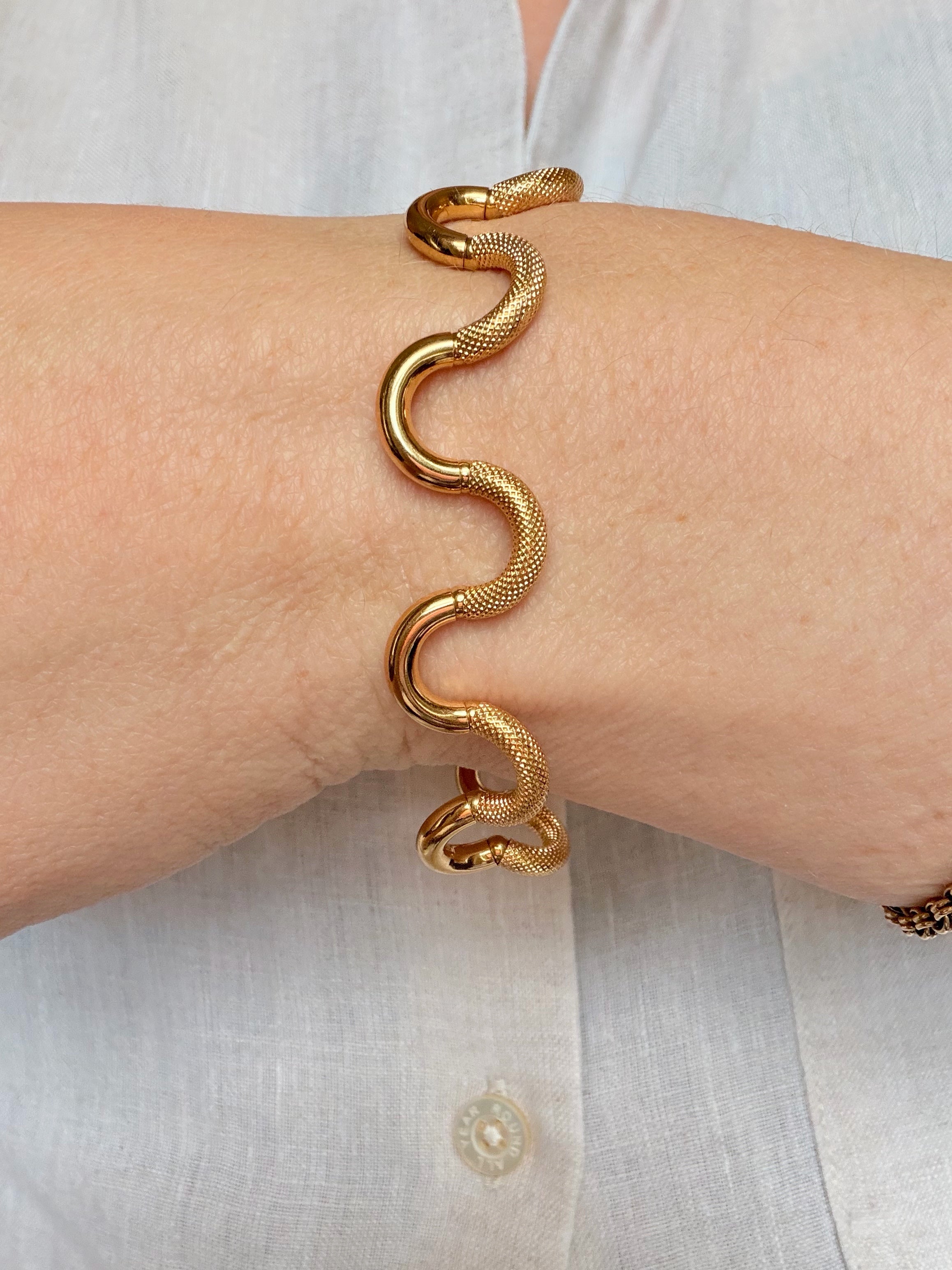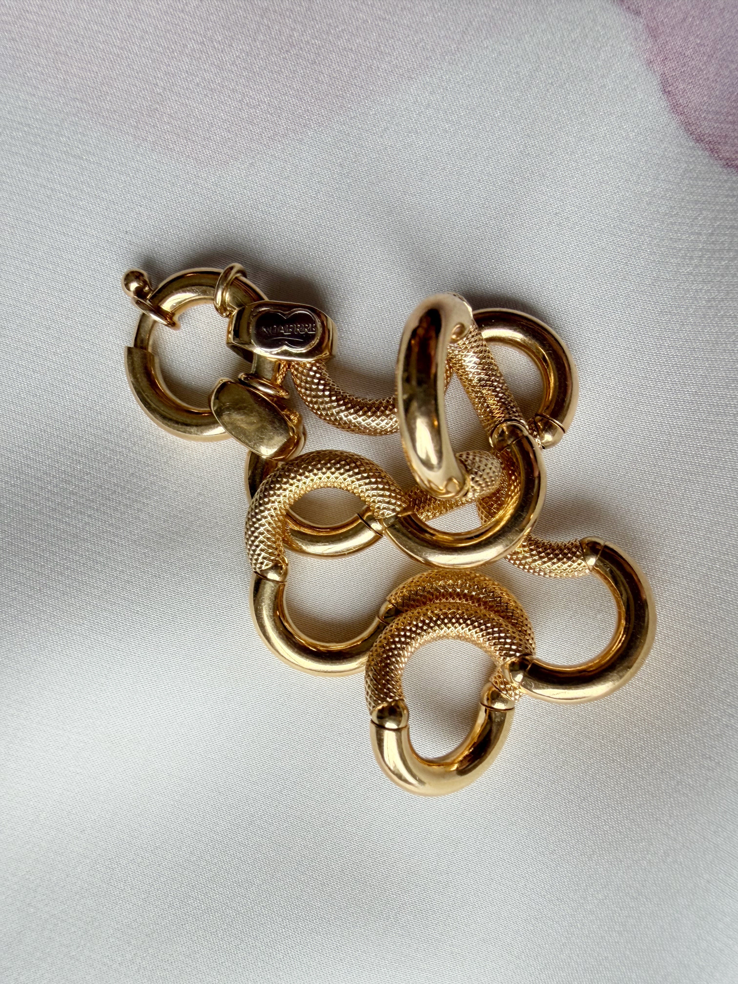 The result is a fluid appearance and hugely tactile piece of jewellery, perfectly finished with a chubby bolt clasp, hallmarked in Italy for 18ct gold and with the UnoAErre makers tag applied in white gold to the end link.