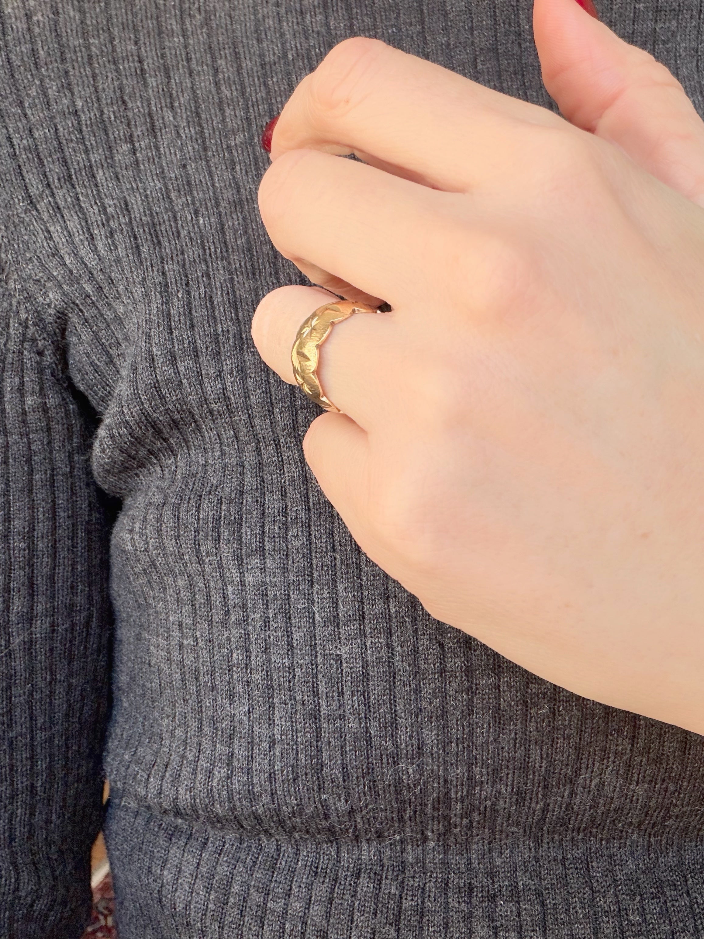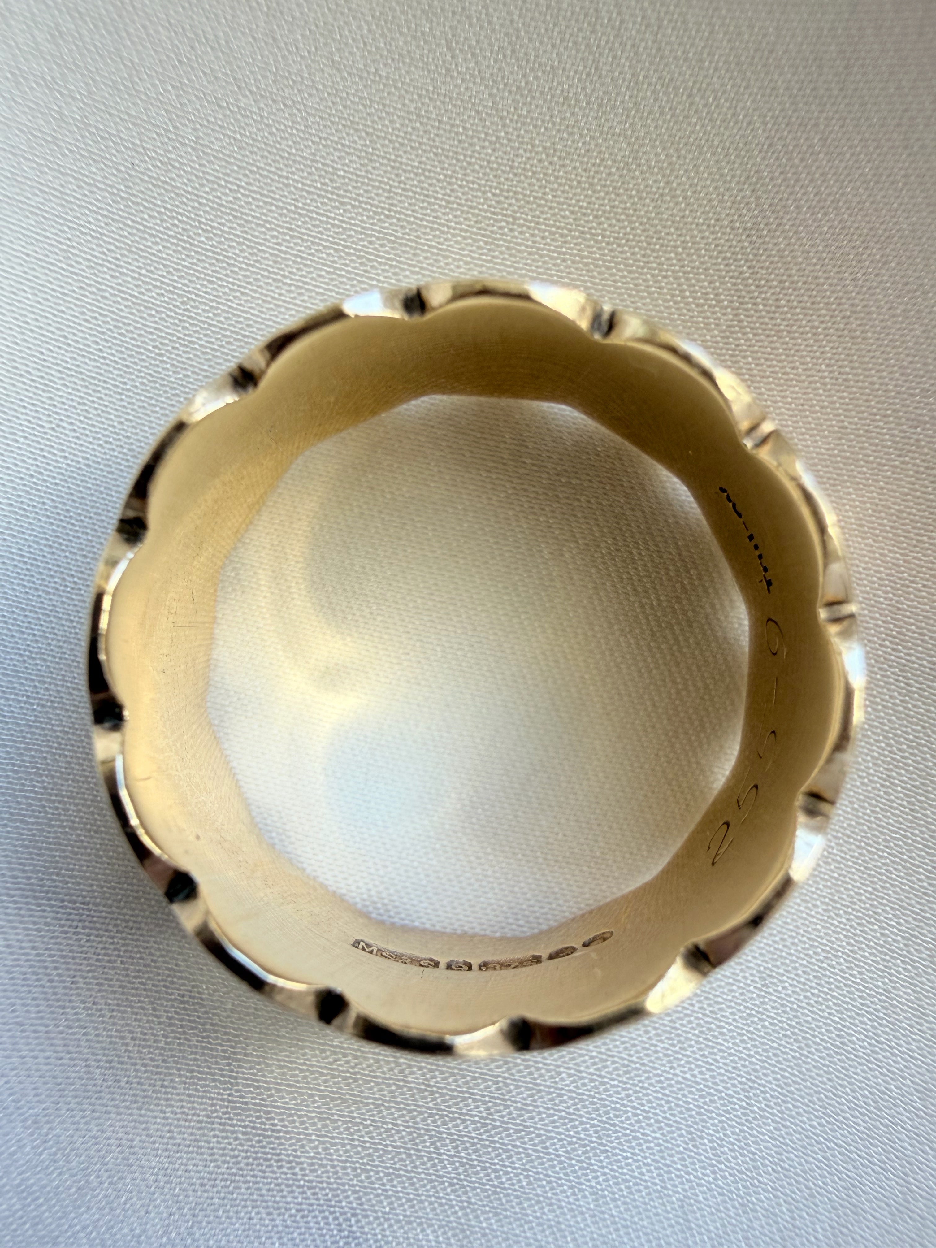 Super comfortable to wear, the gold tone is a soft 9ct yellow, very typical of British made pieces in this time period.