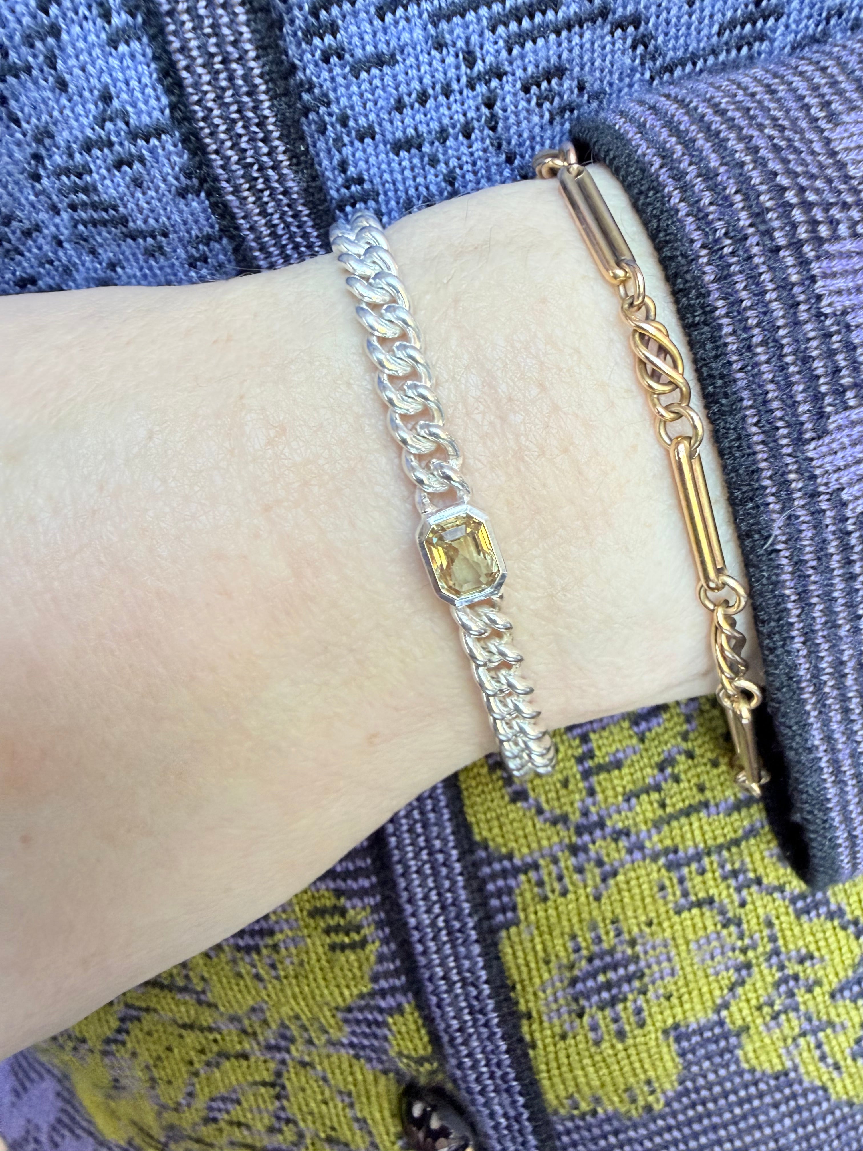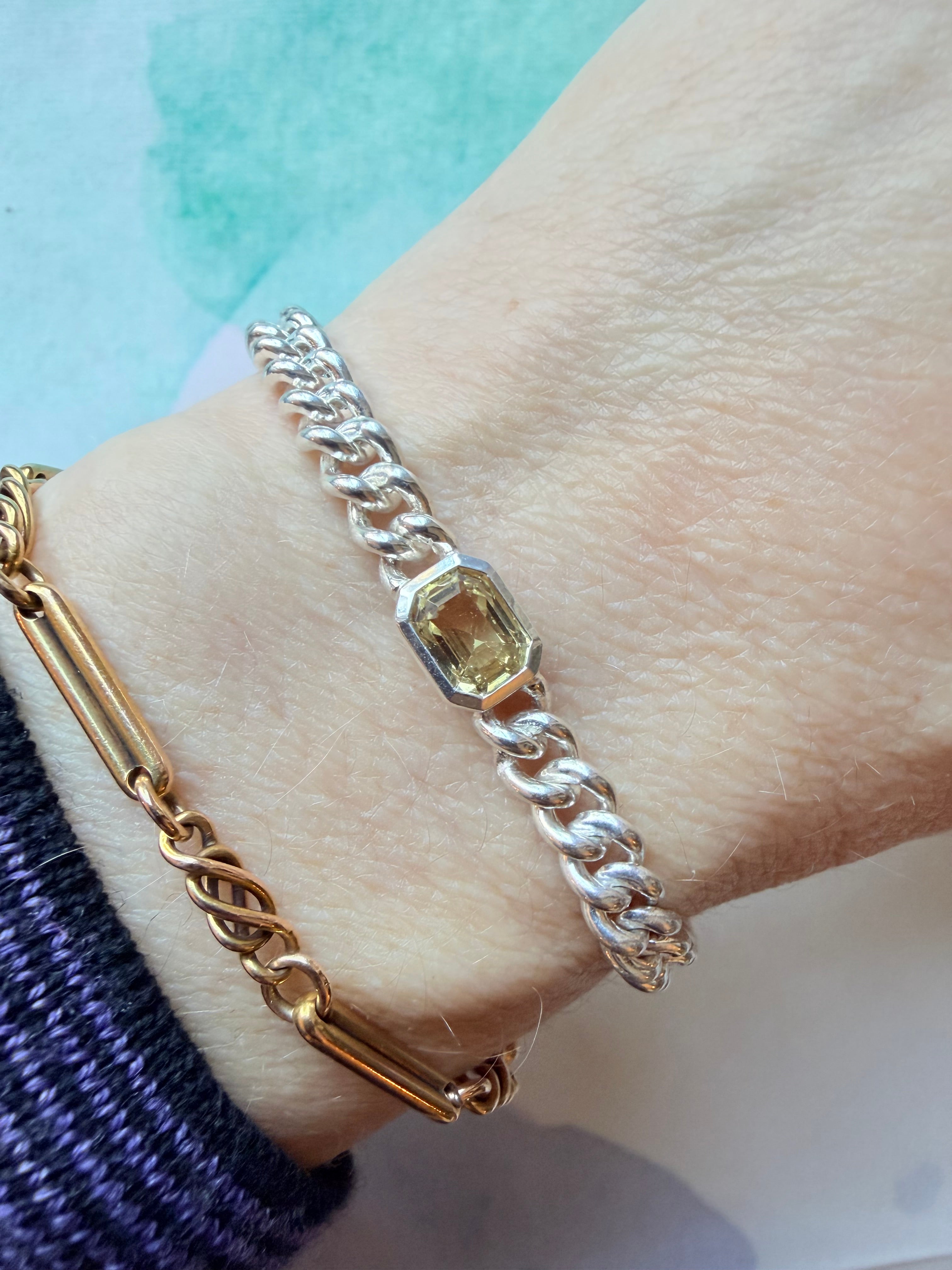 Tawny Yellow Sapphire Silver Curb Bracelet