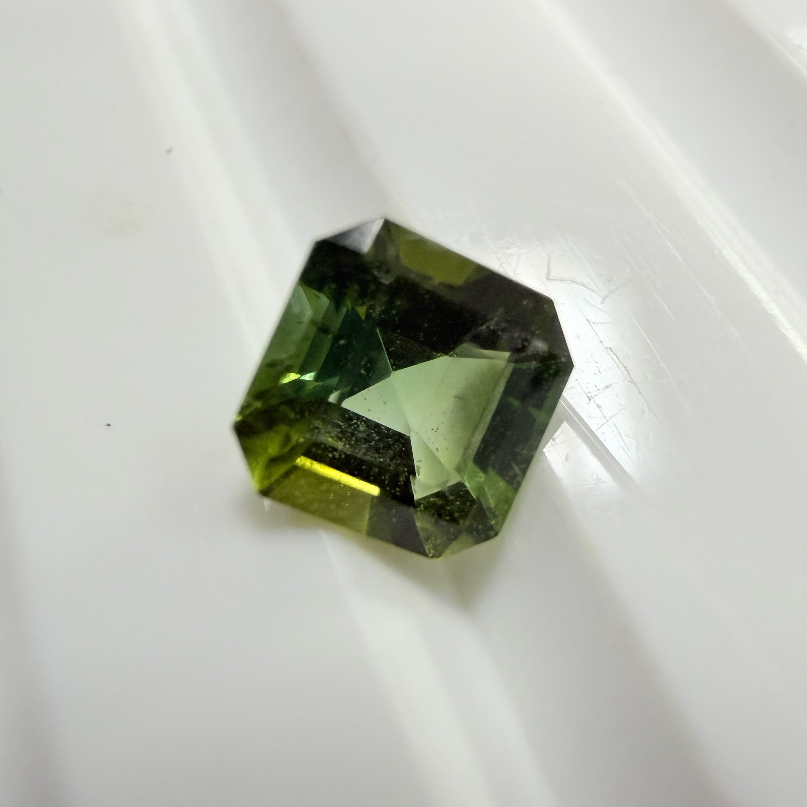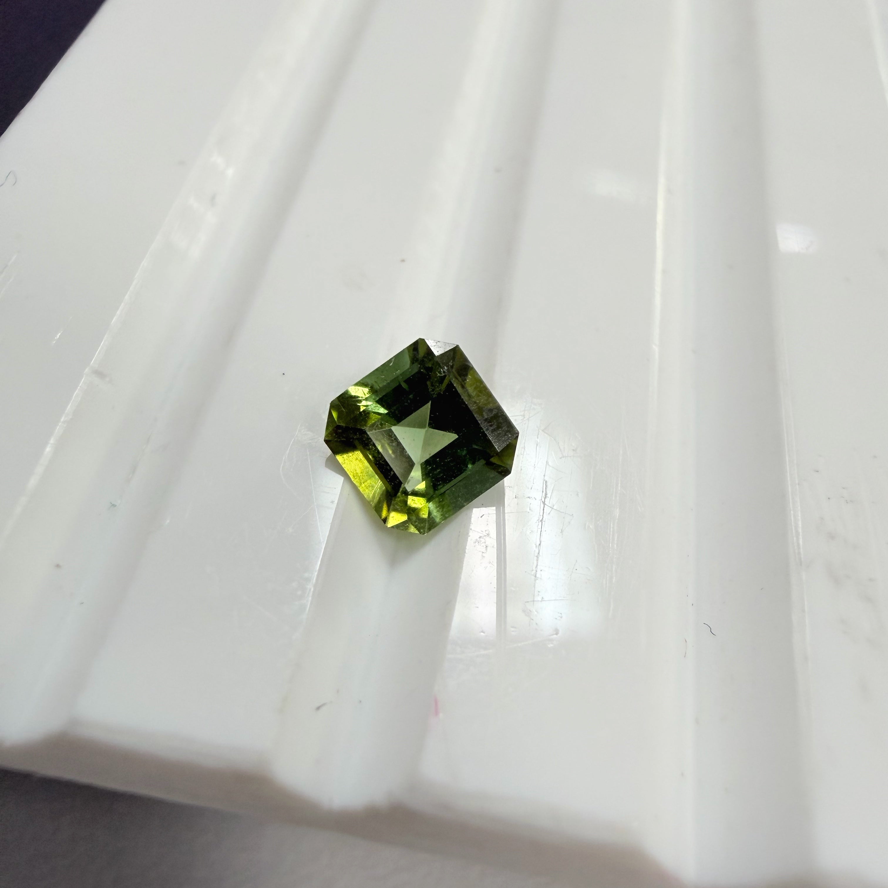 We have selected these asscher cut moss green tourmaline, which are very lively and have golden yellow secondary hues. They will look even more amazing once set!