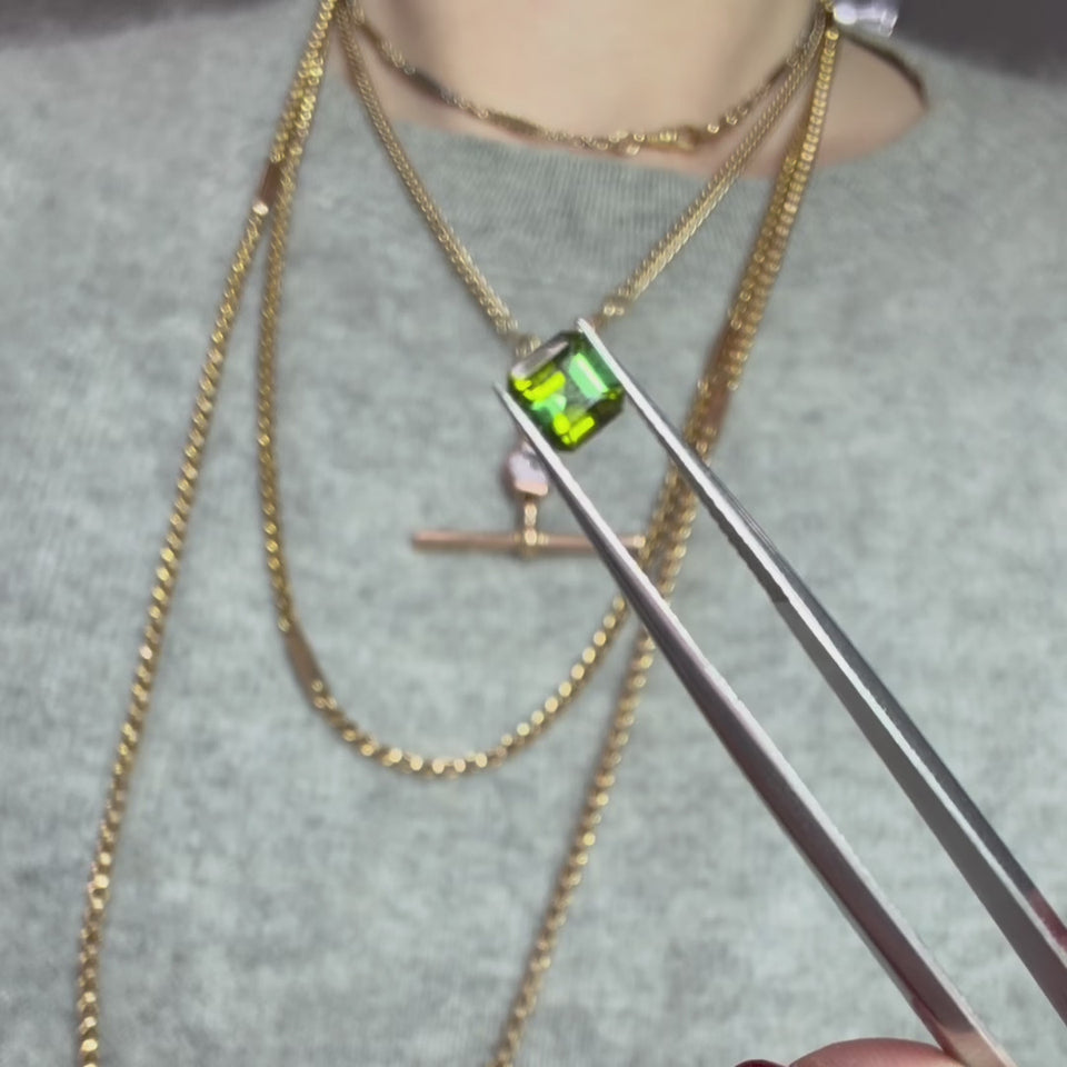 Twisted T-Bar - GEMbellished - Asscher Cut Green Tourmaline